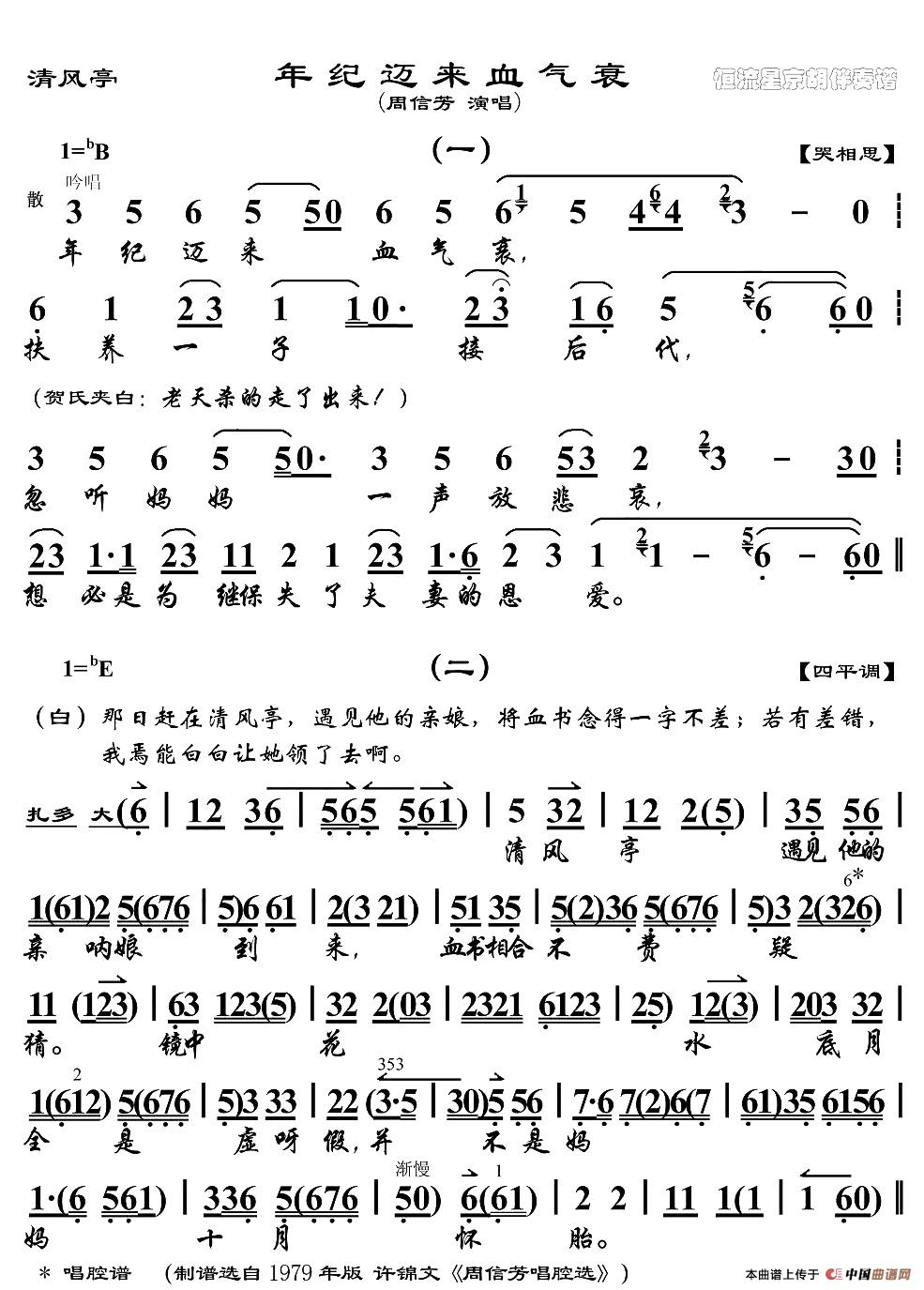 年纪迈来血气衰(《清风亭》选段、琴谱)