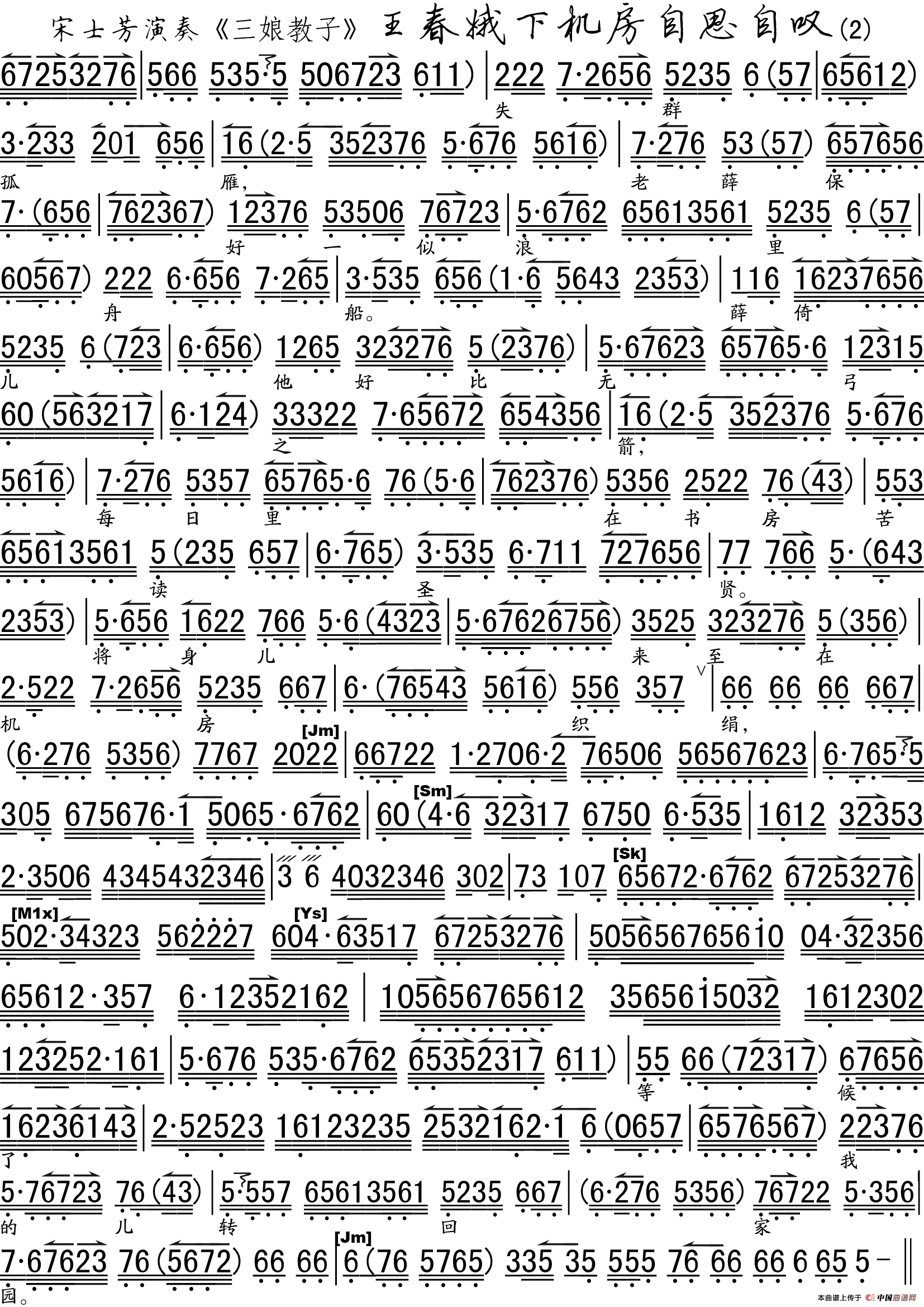 关于《王春娥下机房自思自叹》曲谱的评论