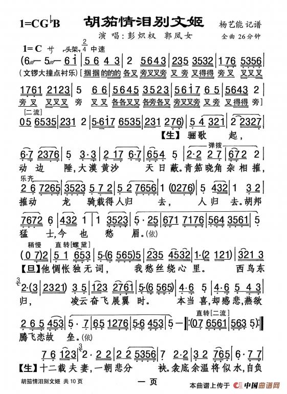 《[粤剧] 胡笳情泪别文姬 》文本歌词