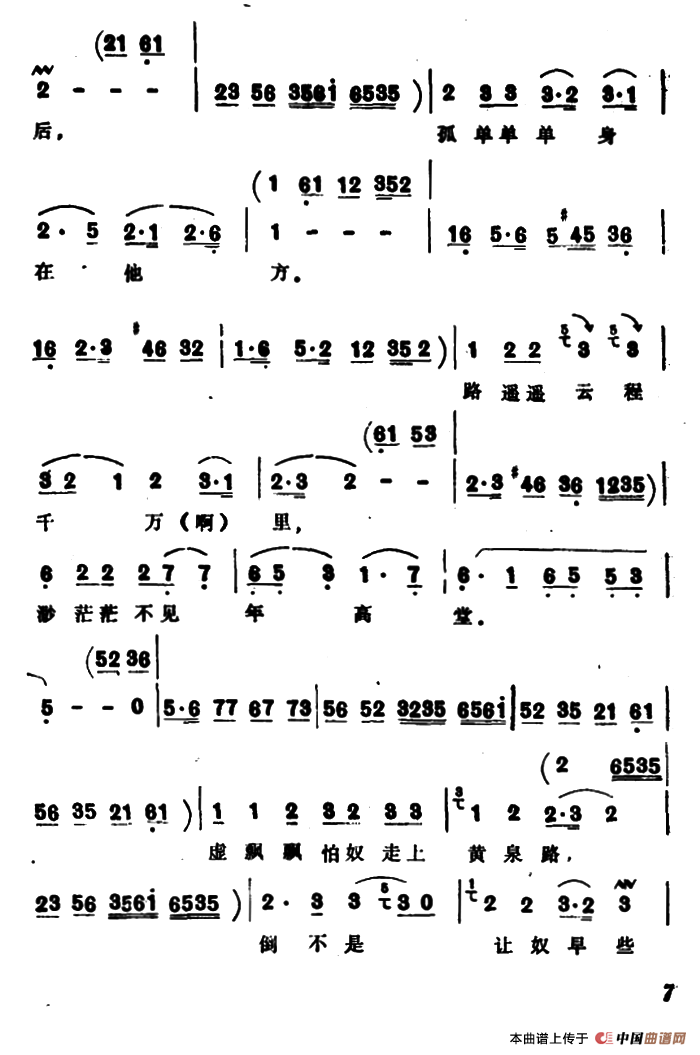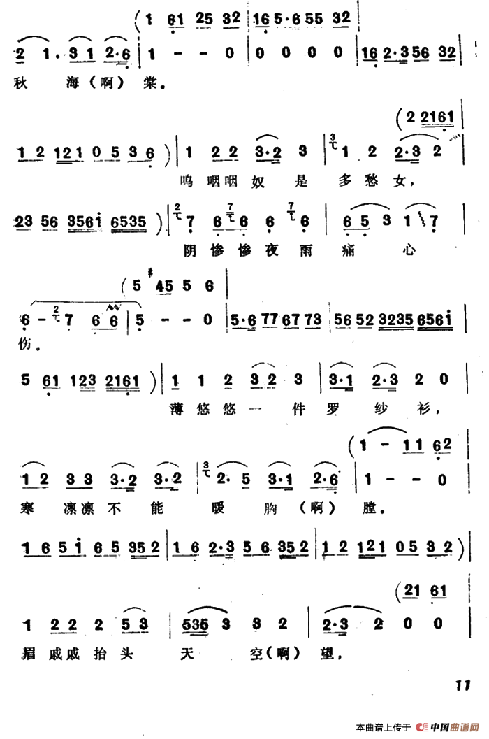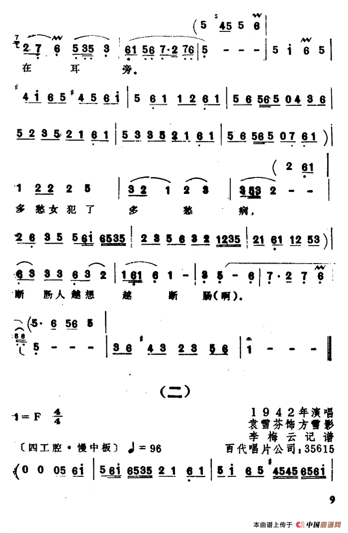 关于《断肠人越想越断肠》曲谱的评论