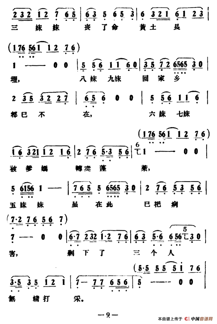 关于《姐妹叹飘零》曲谱的评论