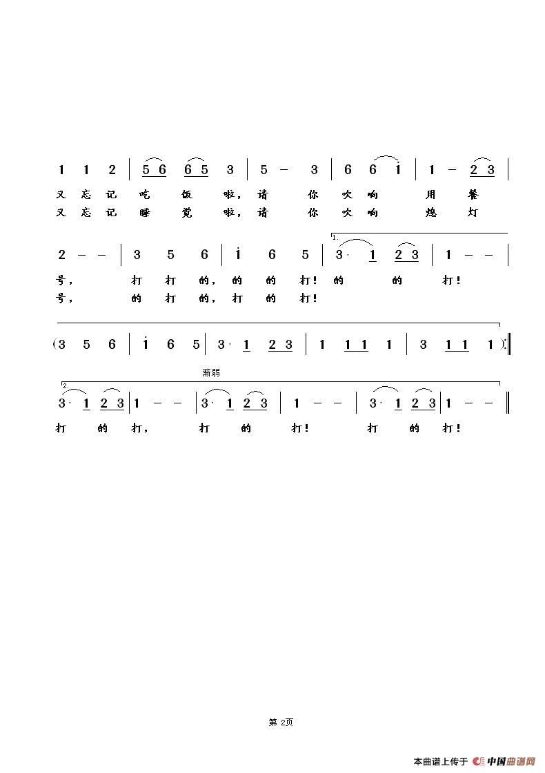 提示:在曲谱图片上单击右键,选择"图片另存为..."即可将曲谱保存到您的电脑中,打印时候可将图片插入到WORD中,调整合适大小打印即可。