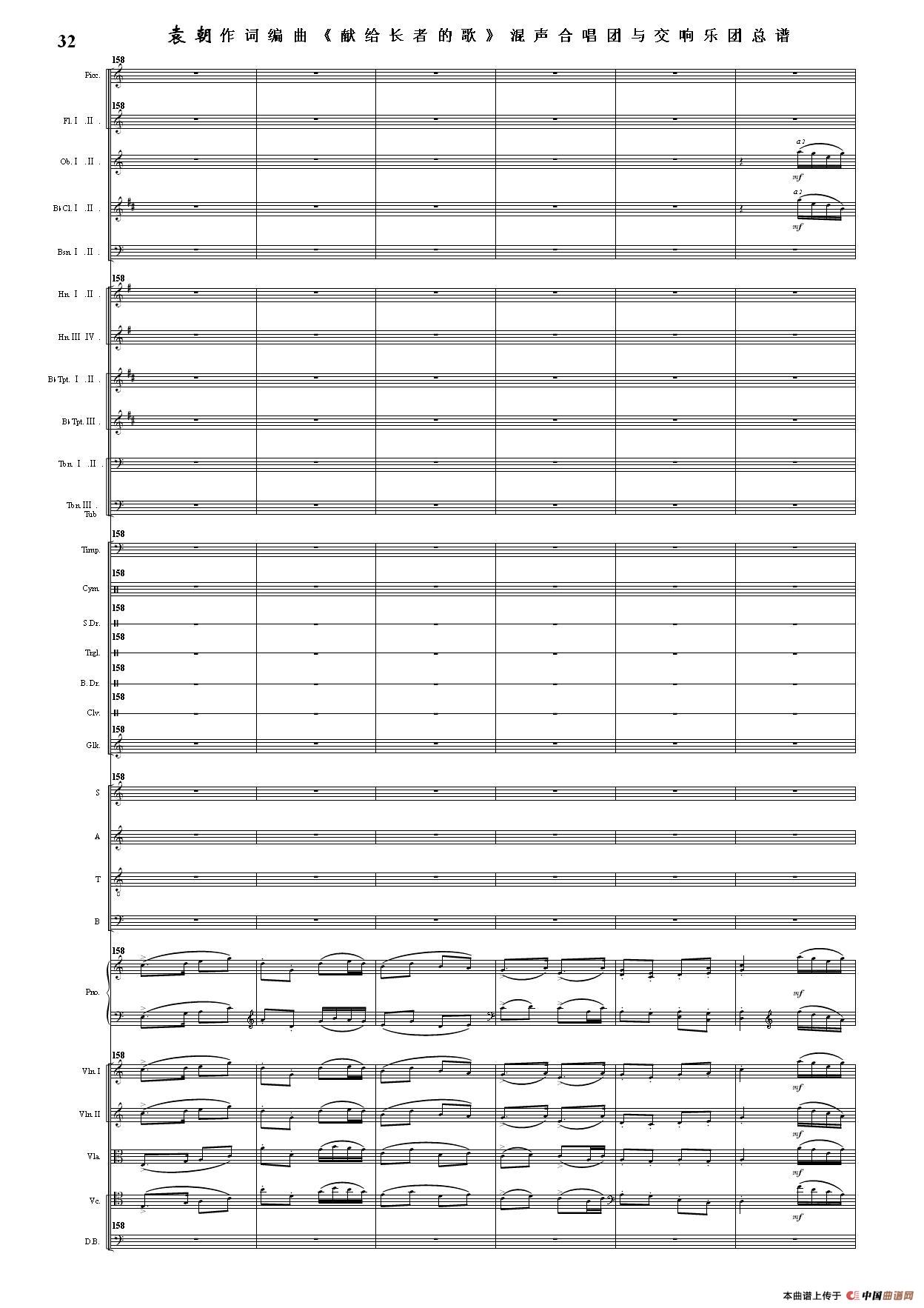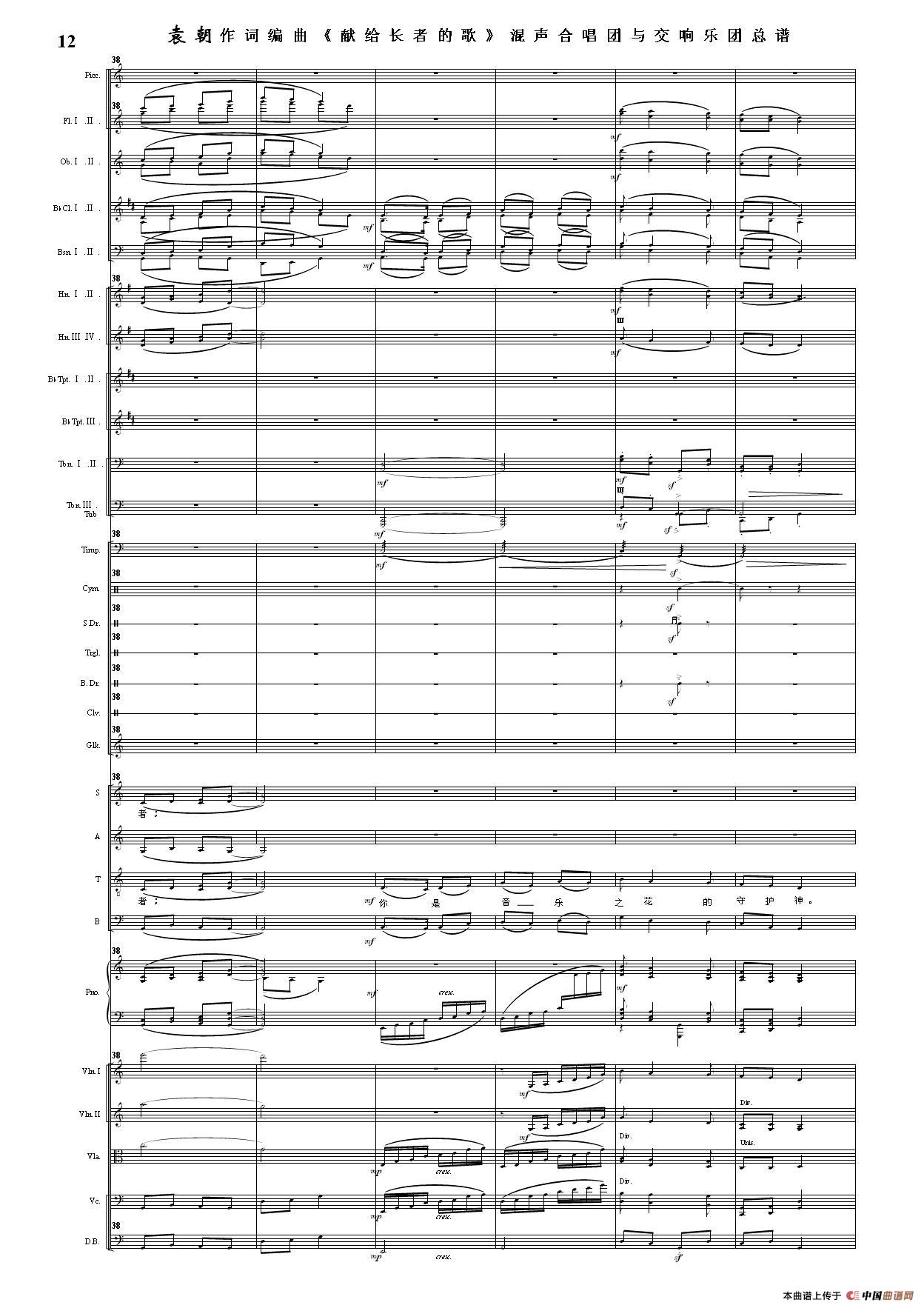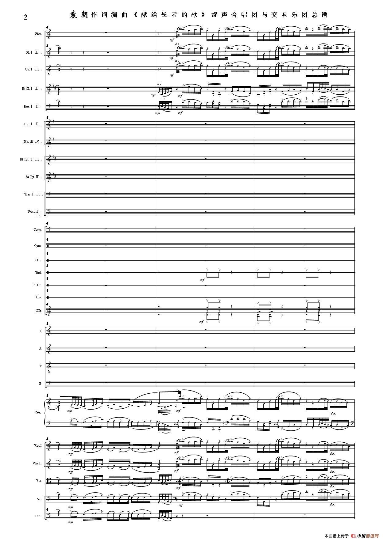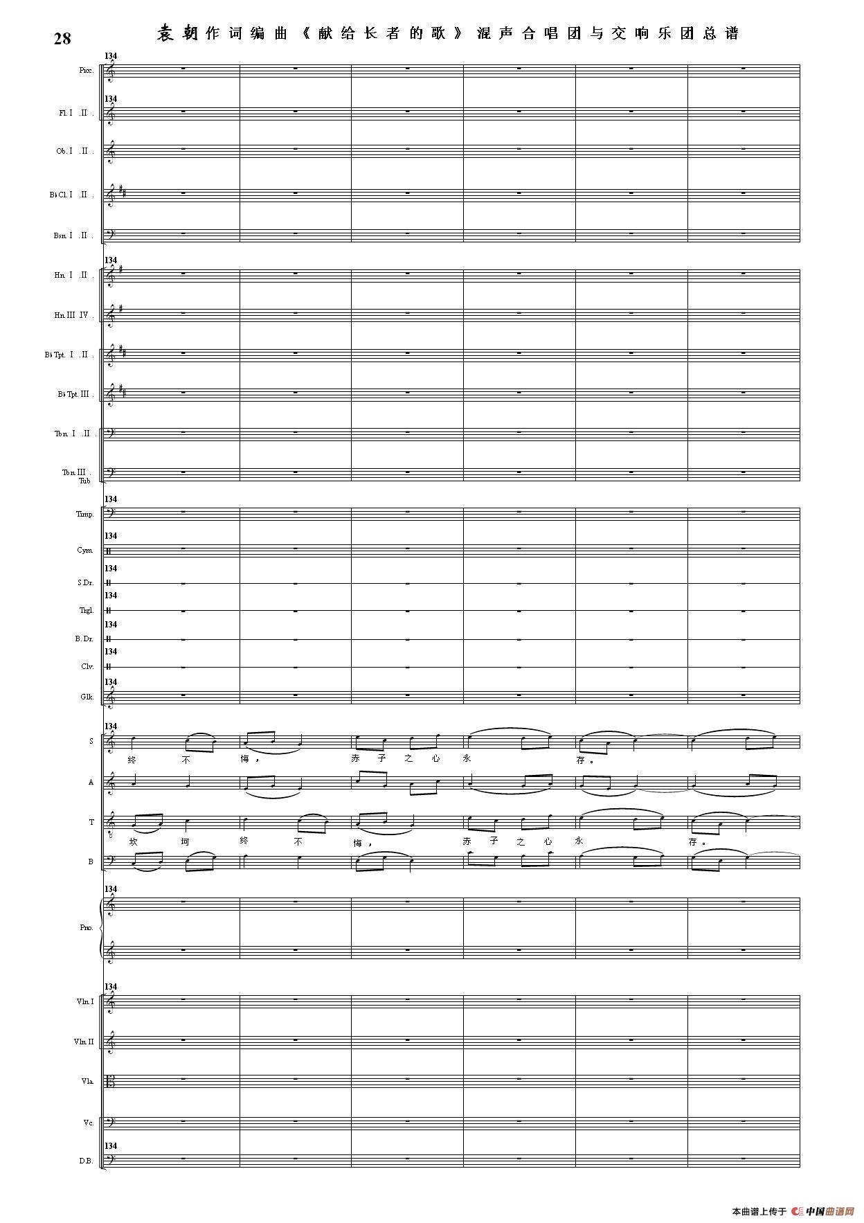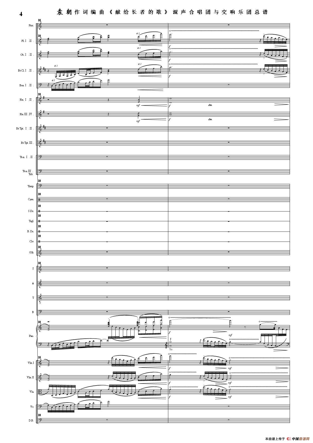 (三)这里发表的是《献歌》的混声合唱与交响乐团总谱,连接的音频也是从制谱软件提取的混声合唱与交响乐团的音频,不是音乐会实况录音。因而只能听合唱音色而不能听见歌词。抱歉!