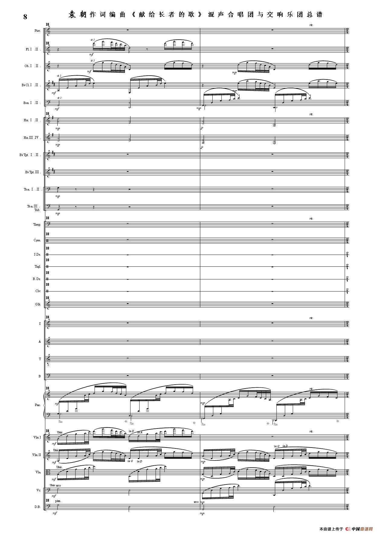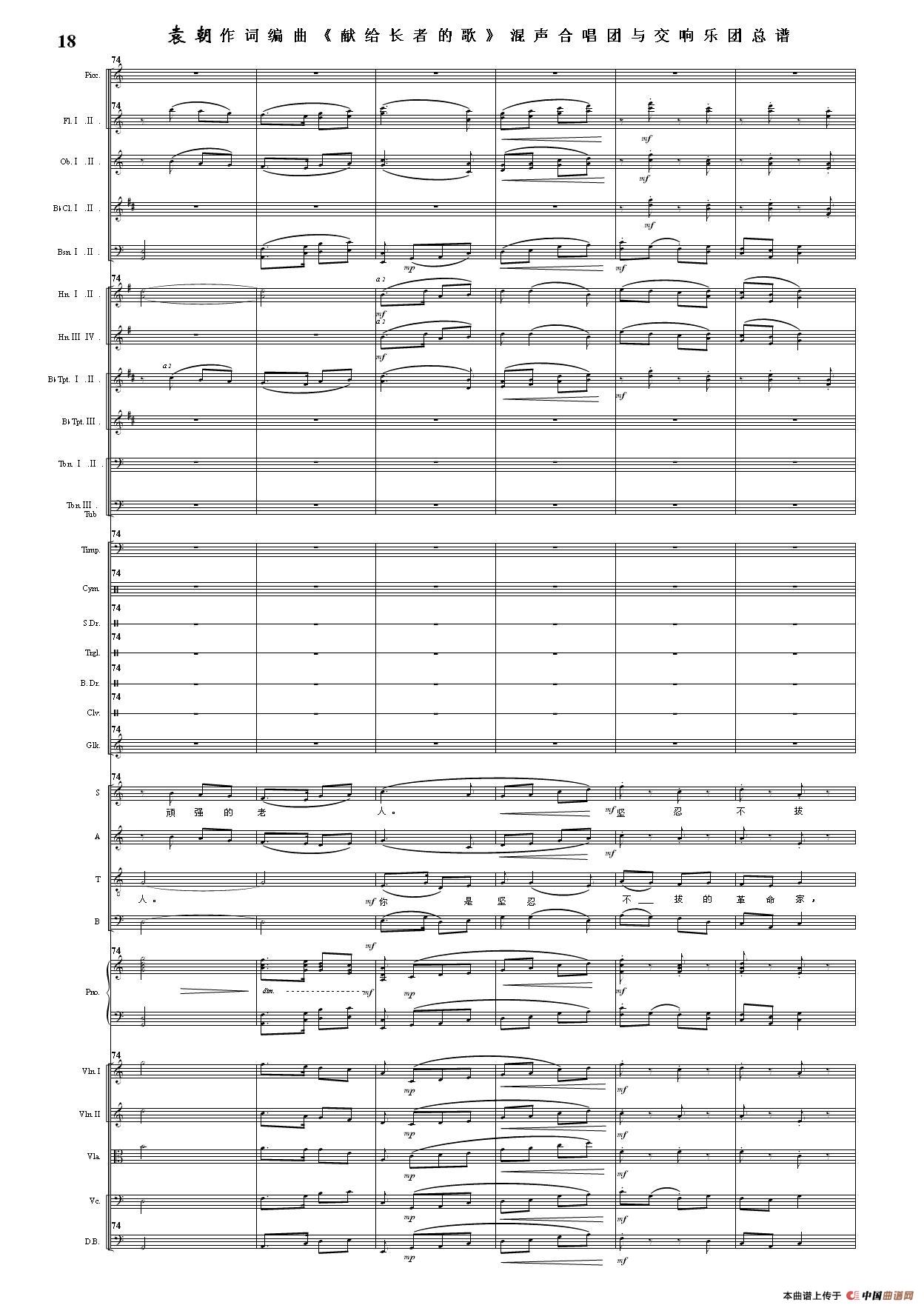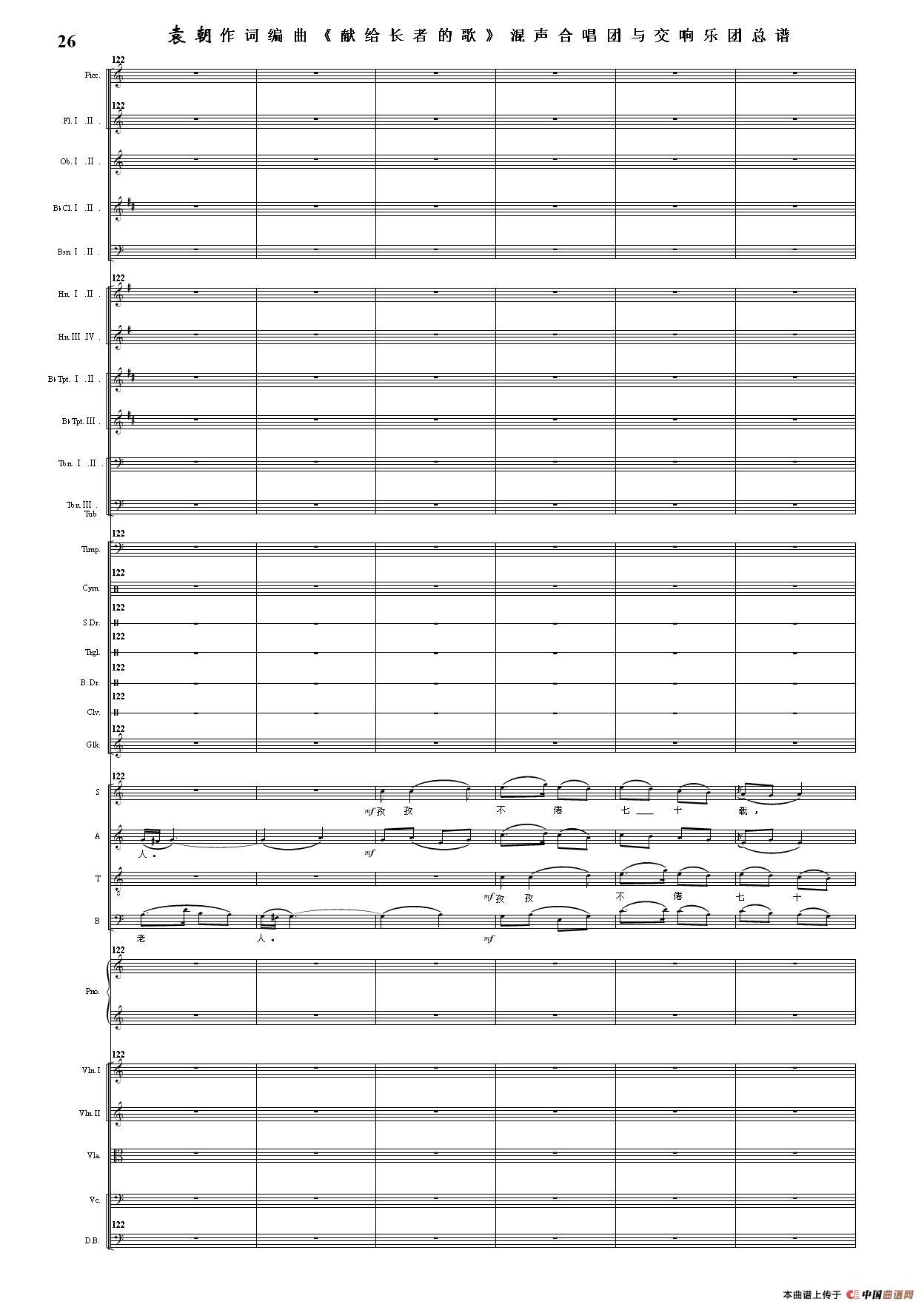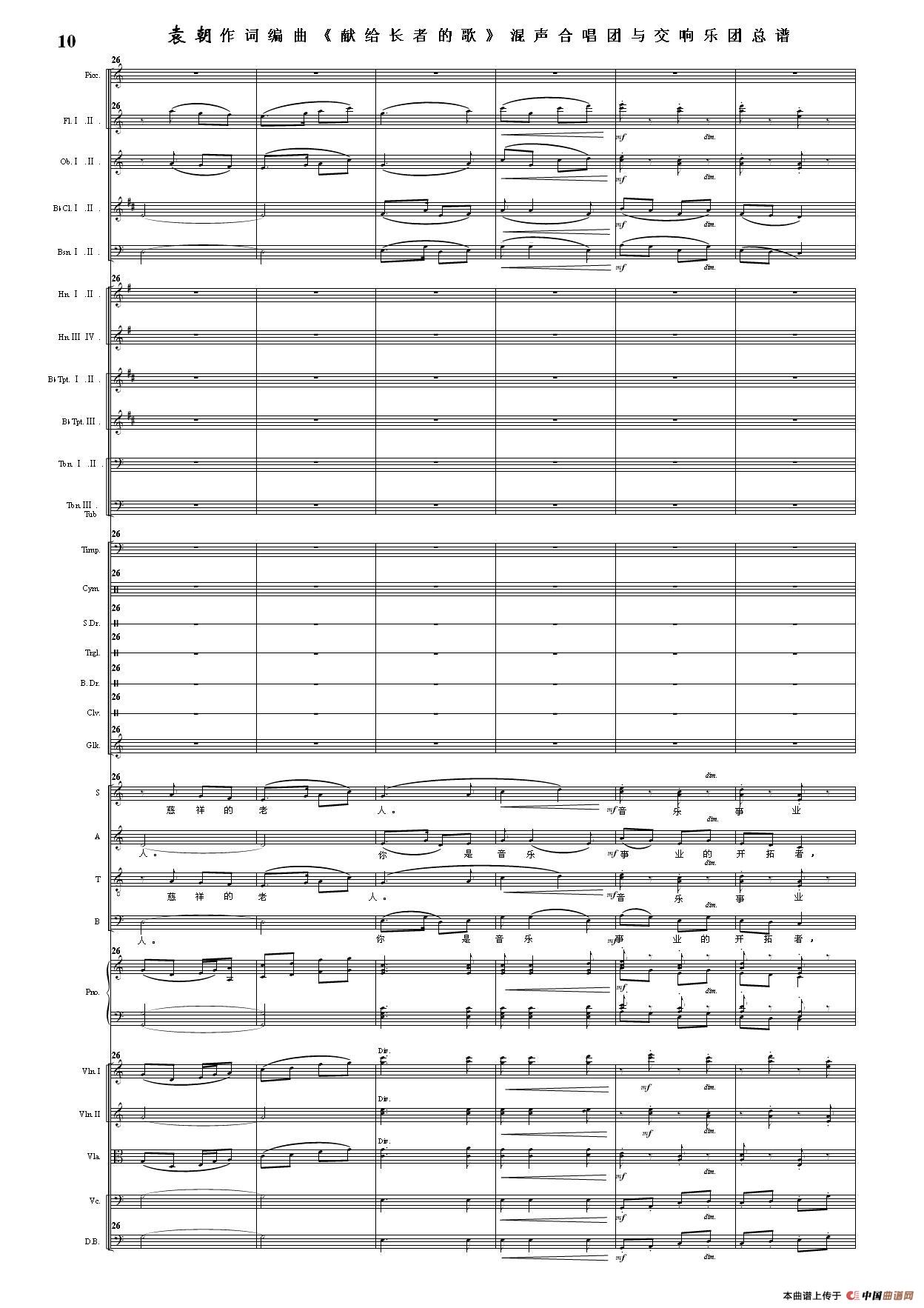 (三)这里发表的是《献歌》的混声合唱与交响乐团总谱,连接的音频也是从制谱软件提取的混声合唱与交响乐团的音频,不是音乐会实况录音。因而只能听合唱音色而不能听见歌词。抱歉!