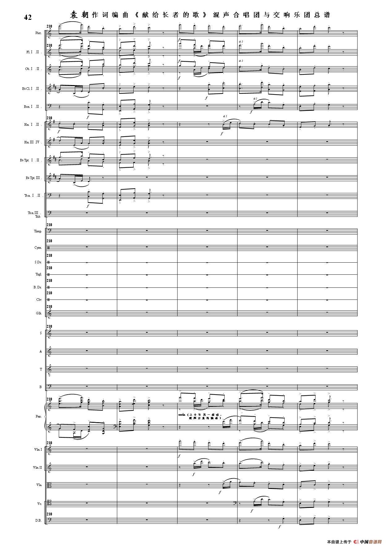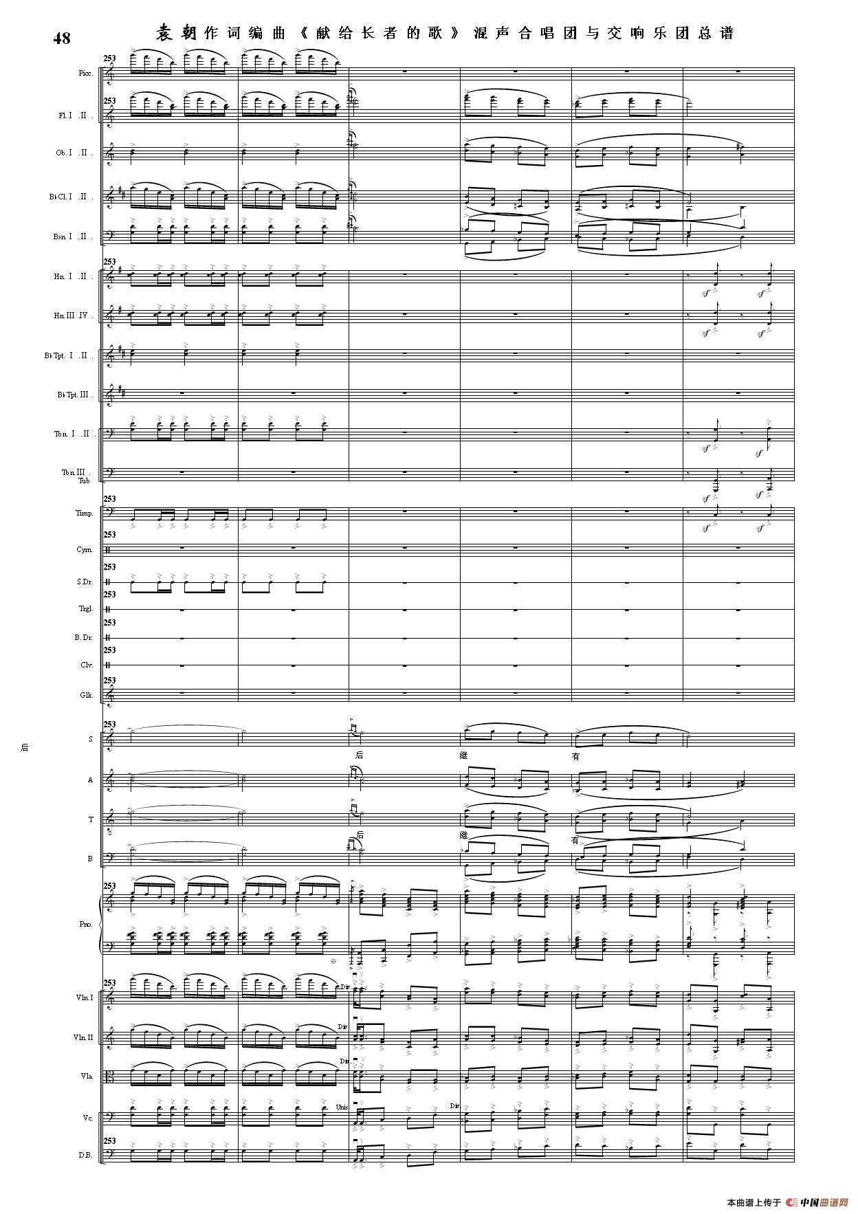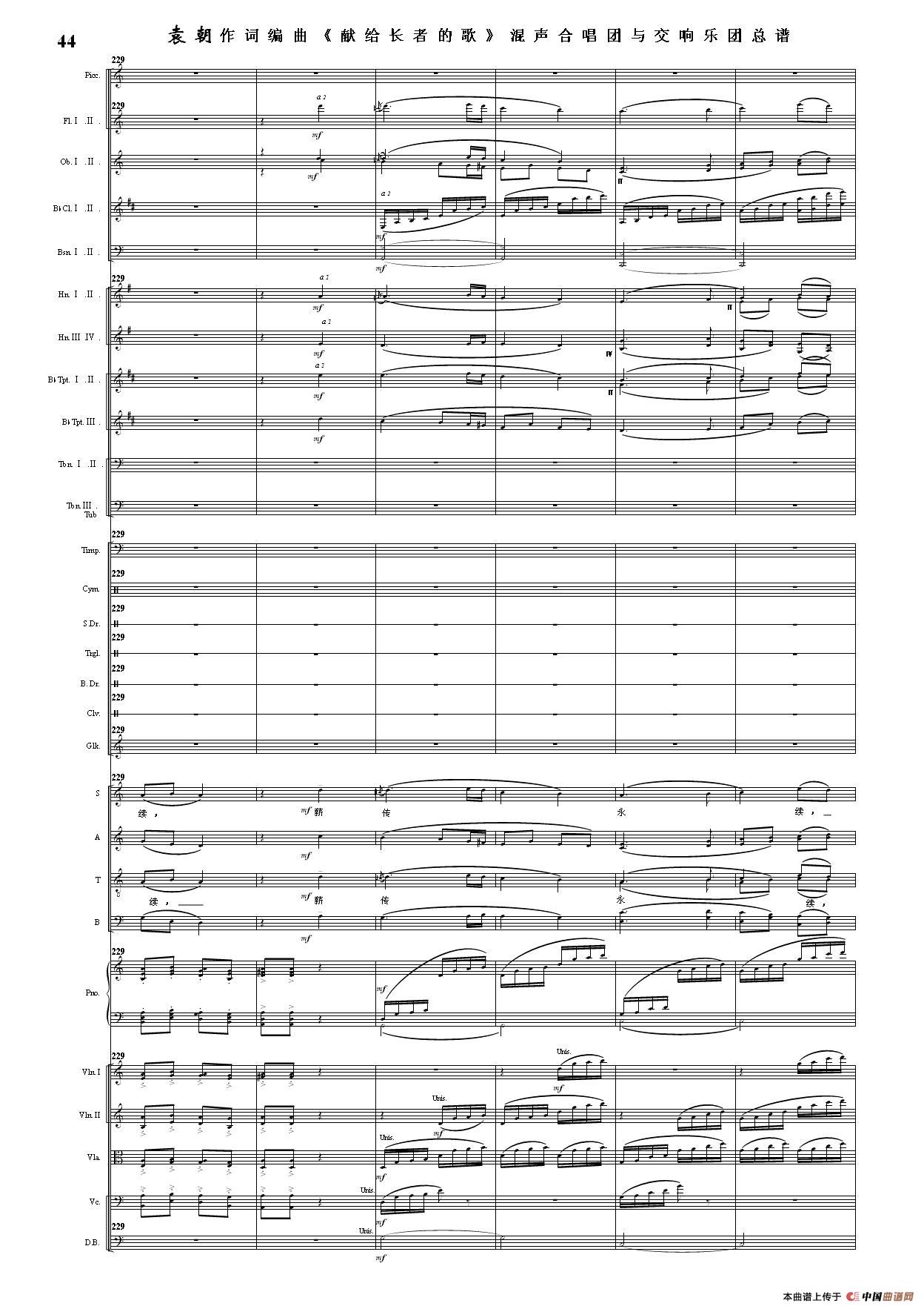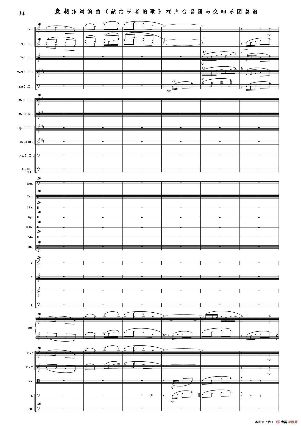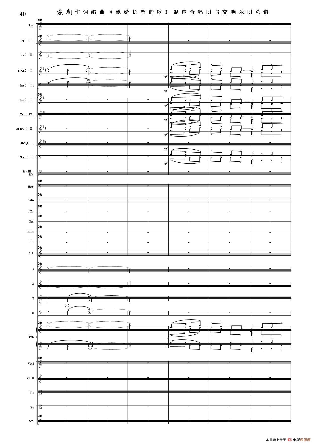 (三)这里发表的是《献歌》的混声合唱与交响乐团总谱,连接的音频也是从制谱软件提取的混声合唱与交响乐团的音频,不是音乐会实况录音。因而只能听合唱音色而不能听见歌词。抱歉!