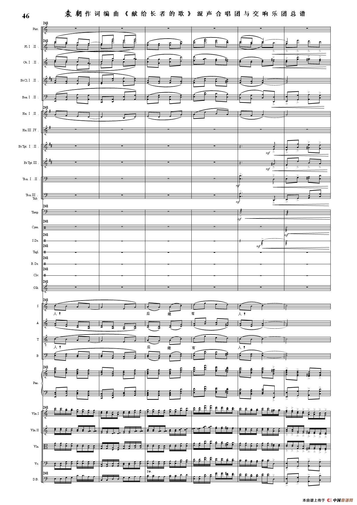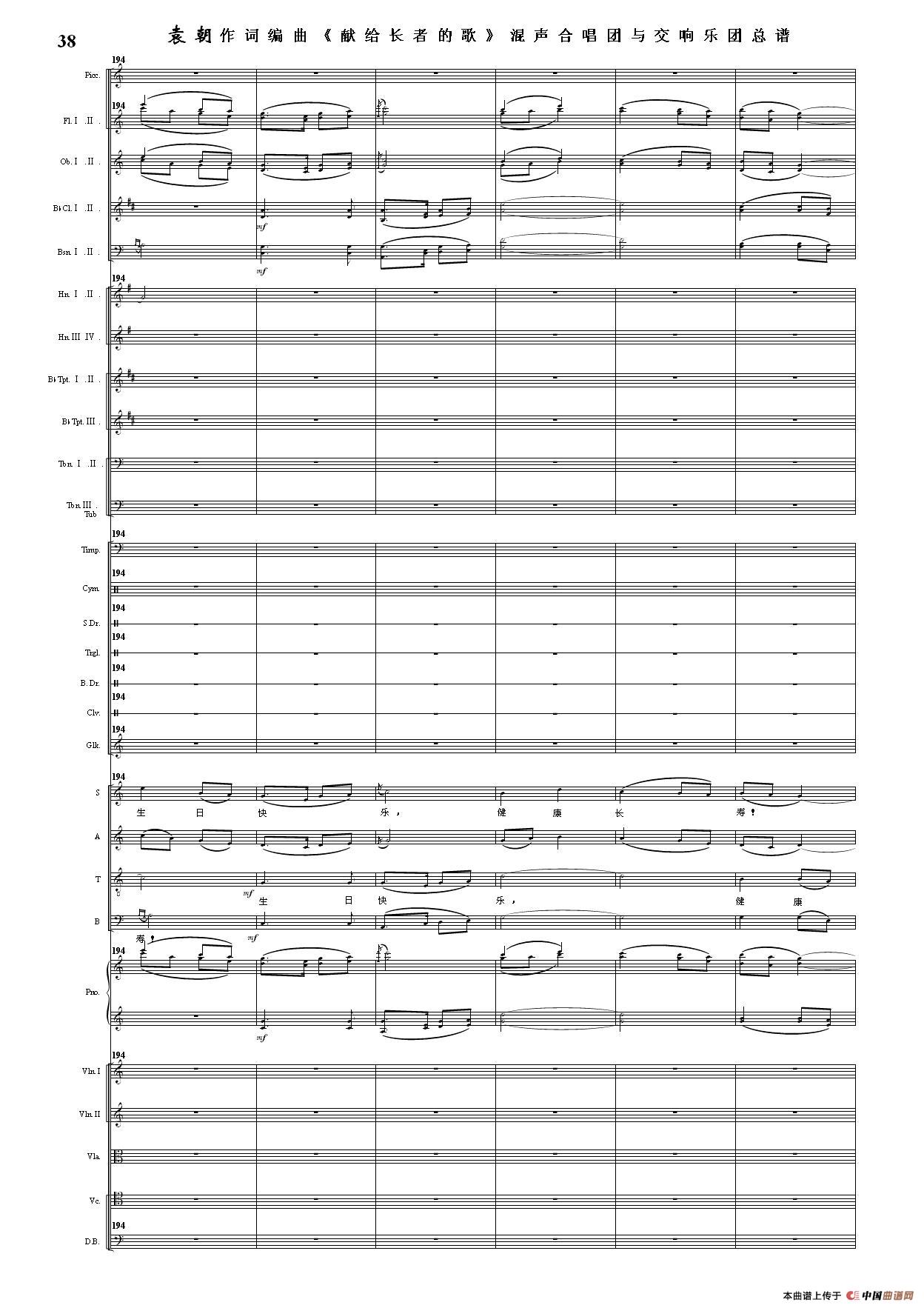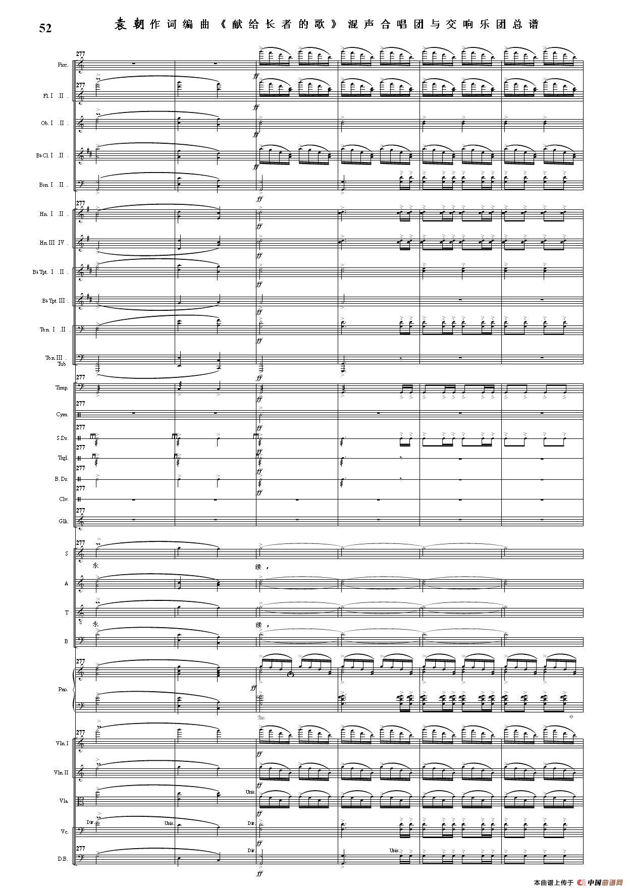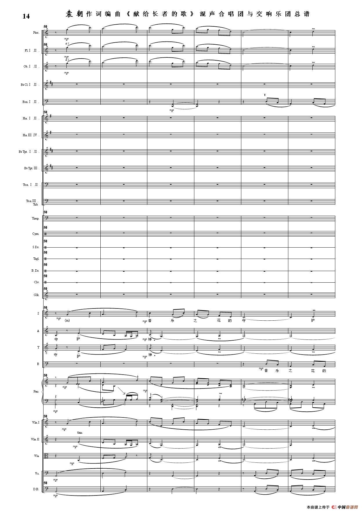 (三)这里发表的是《献歌》的混声合唱与交响乐团总谱,连接的音频也是从制谱软件提取的混声合唱与交响乐团的音频,不是音乐会实况录音。因而只能听合唱音色而不能听见歌词。抱歉!