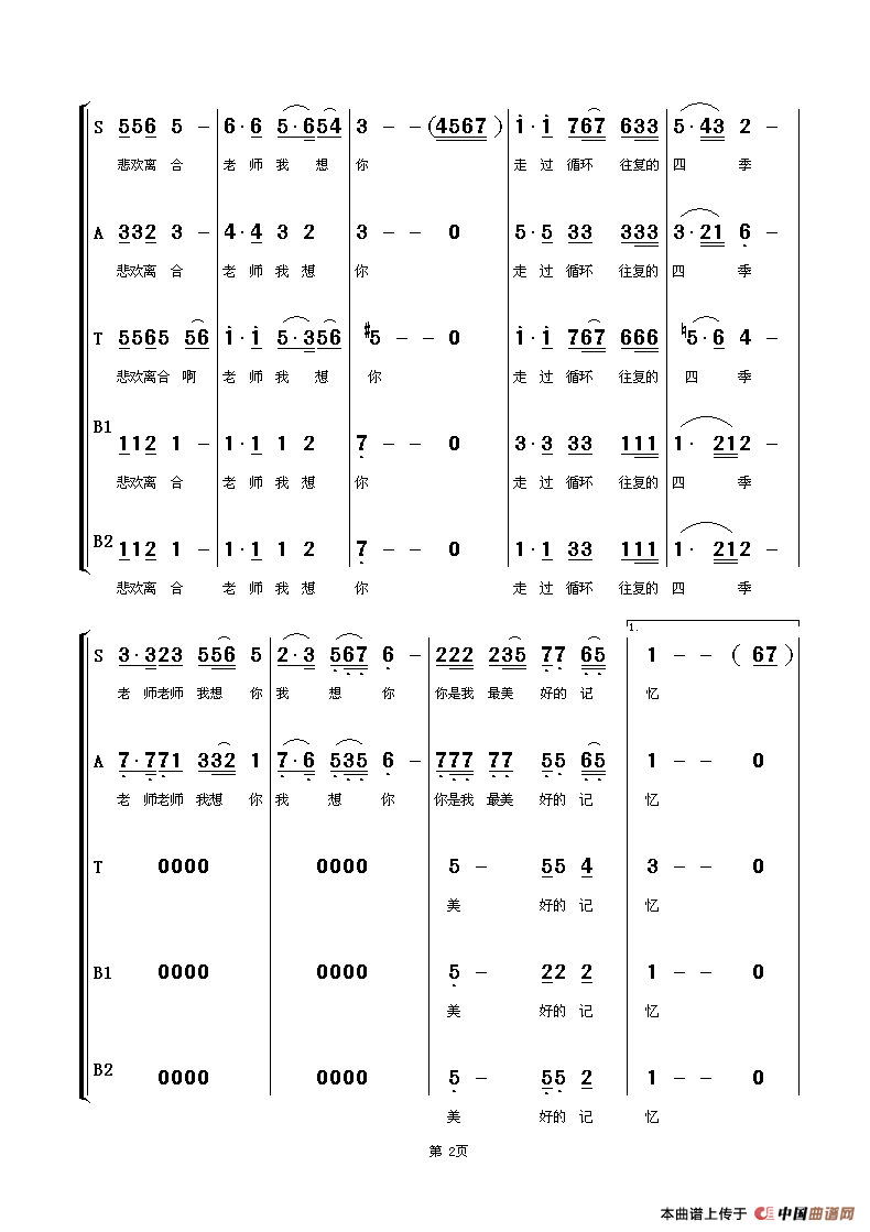 老师我想你(清风词 孟庆云曲、朱顺宝编合唱)