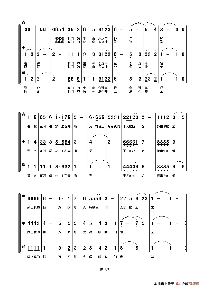 人民警察(男声三声部合唱)