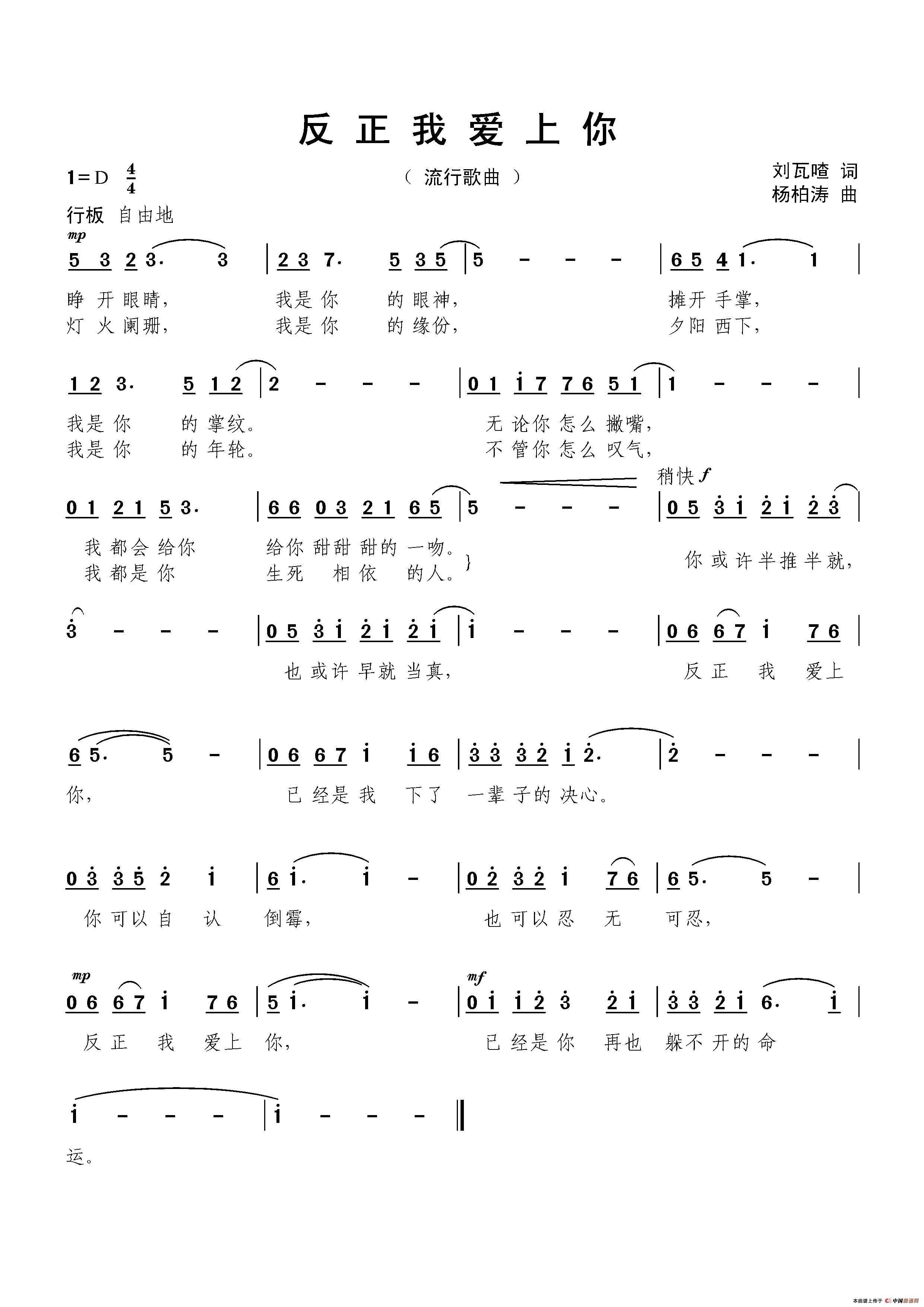关于《反正我爱上你》曲谱的评论