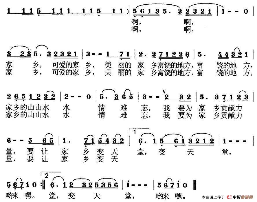 关于《爱我家乡》曲谱的评论