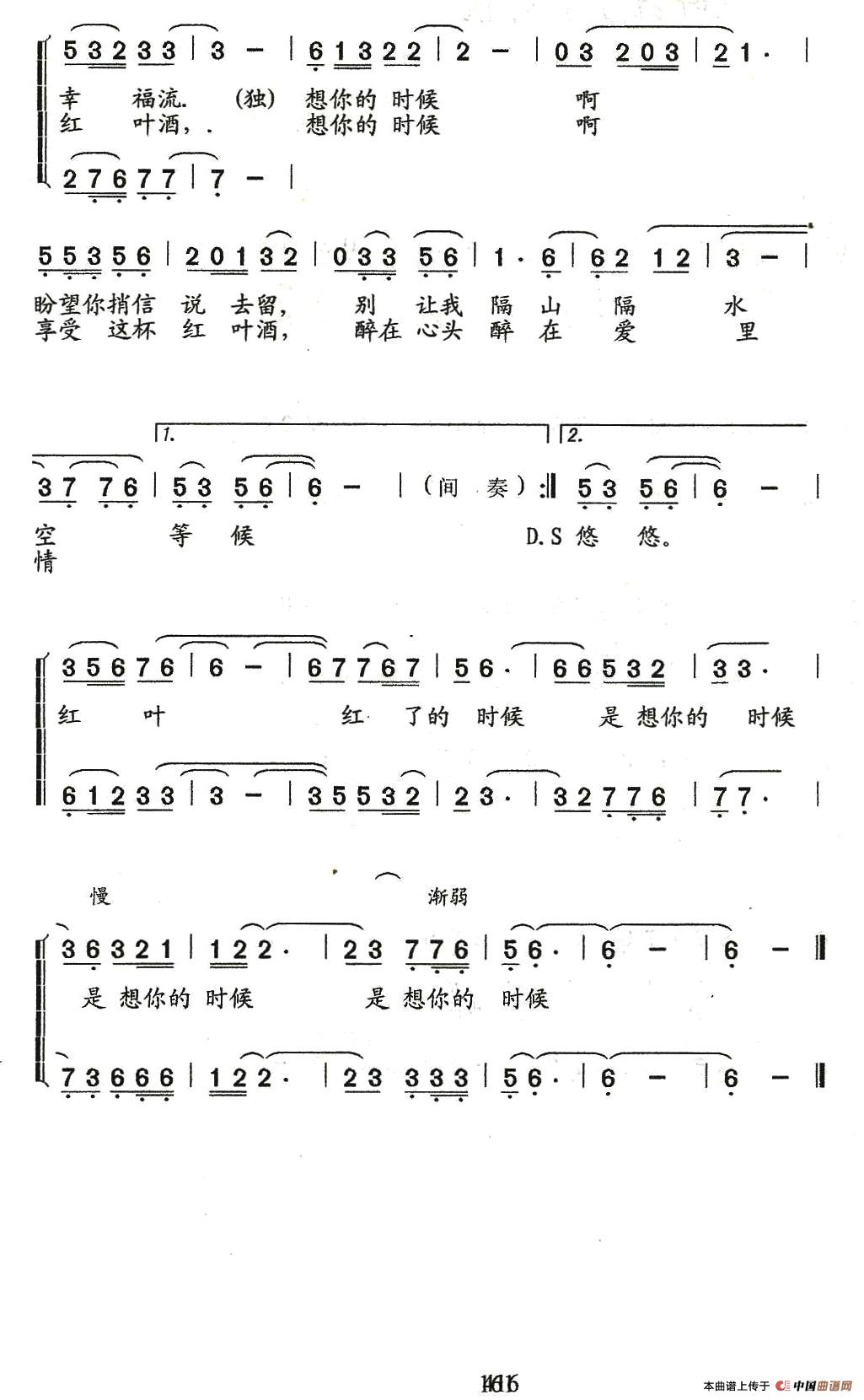 《红叶红了的时候(重唱版)》文本歌词