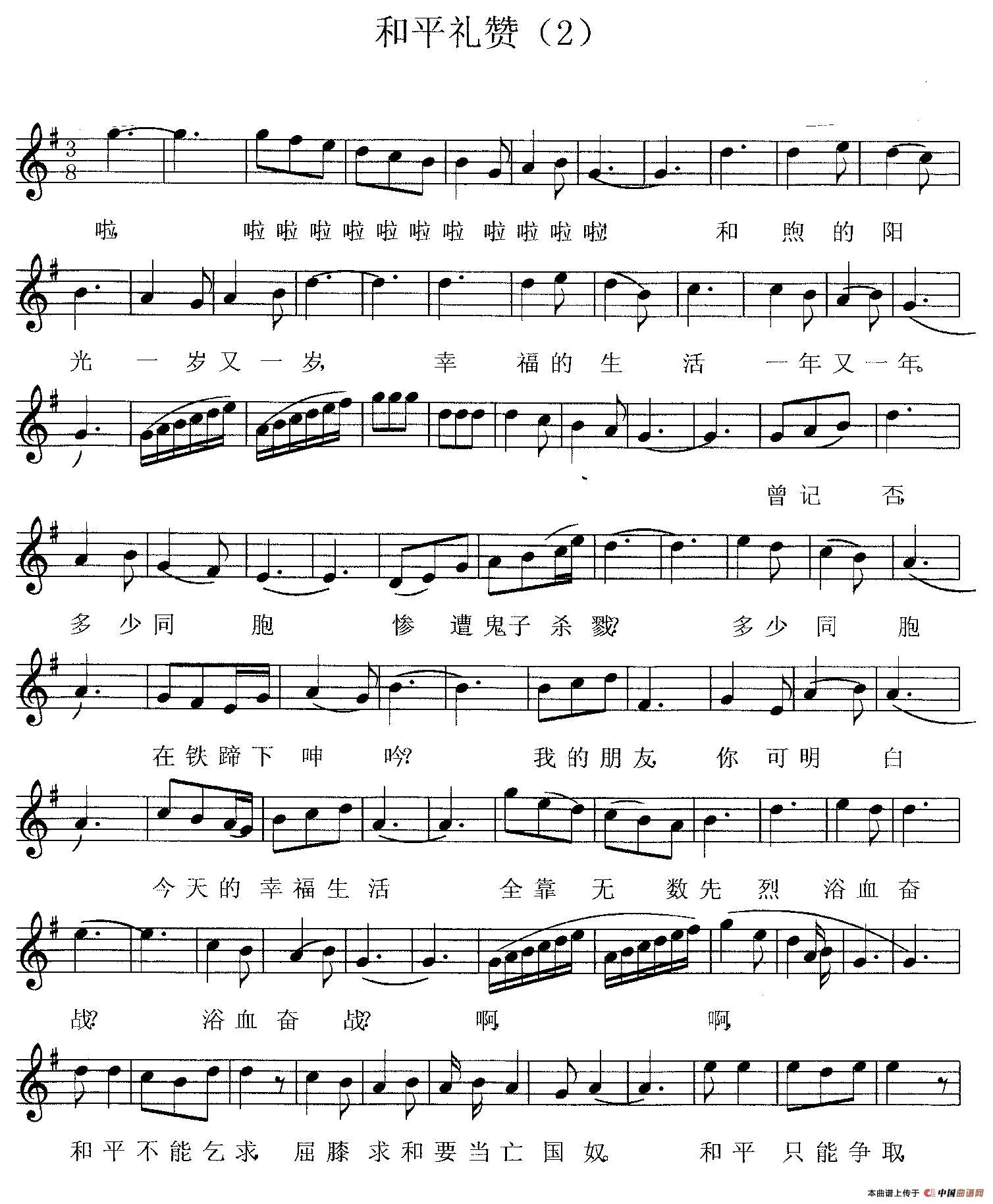 歌词: 和 平 礼 赞