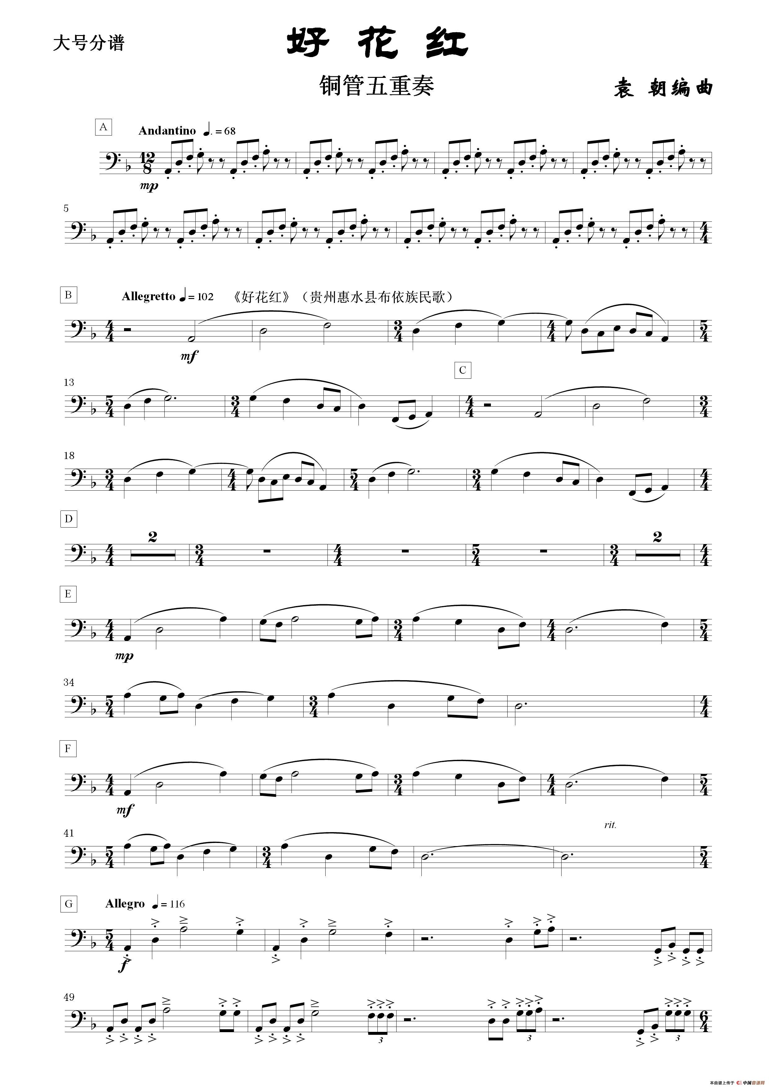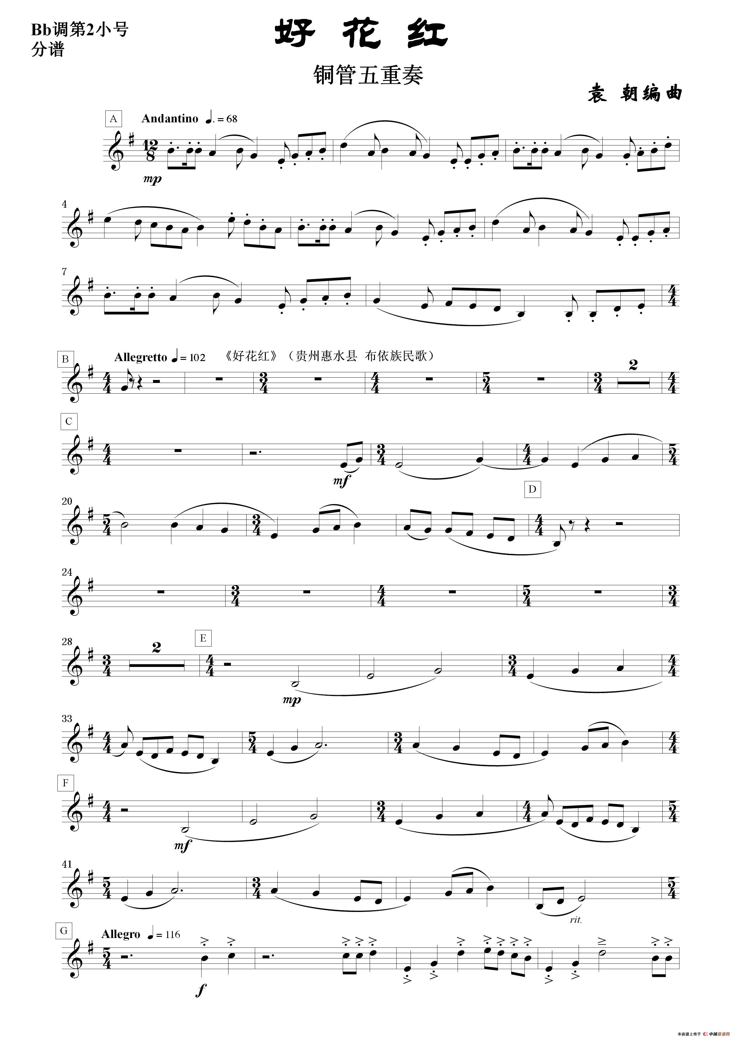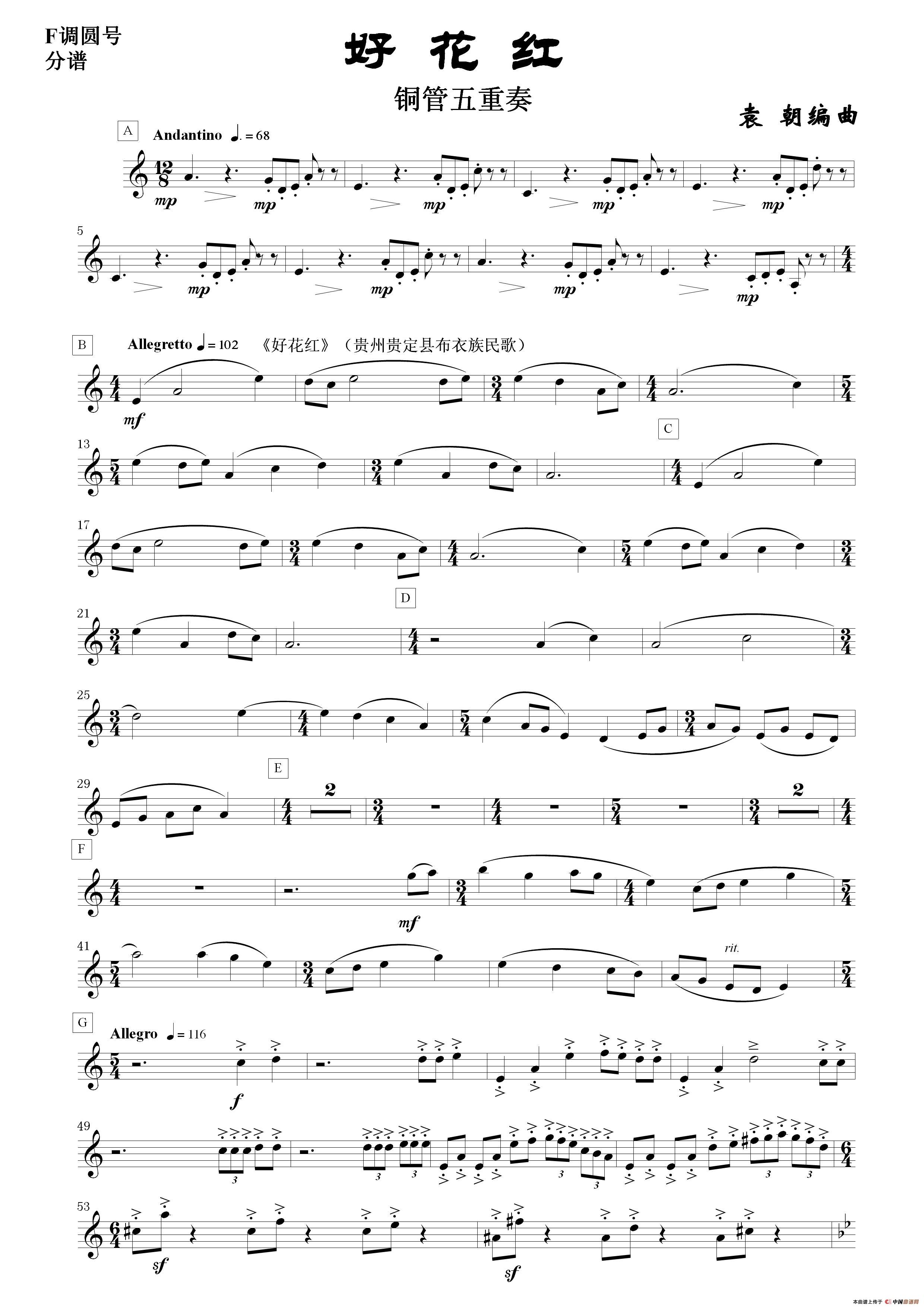 好花红(铜管五重奏 分谱)