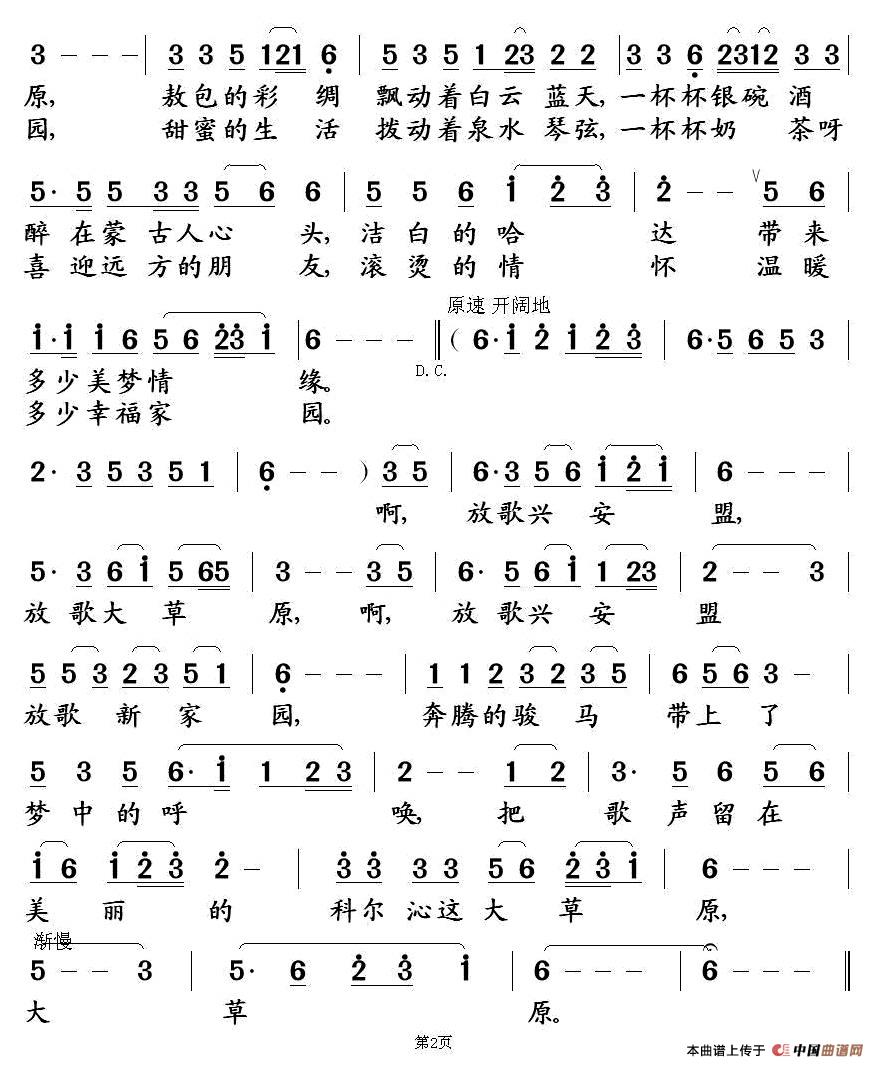 关于《放歌兴安盟》曲谱的评论