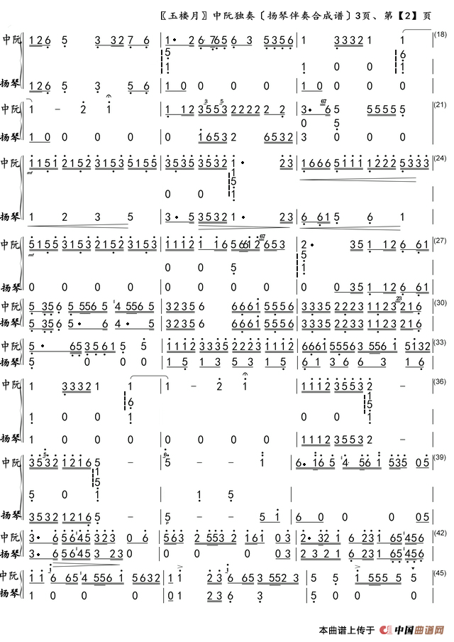 玉楼月(扬琴伴奏合成谱)