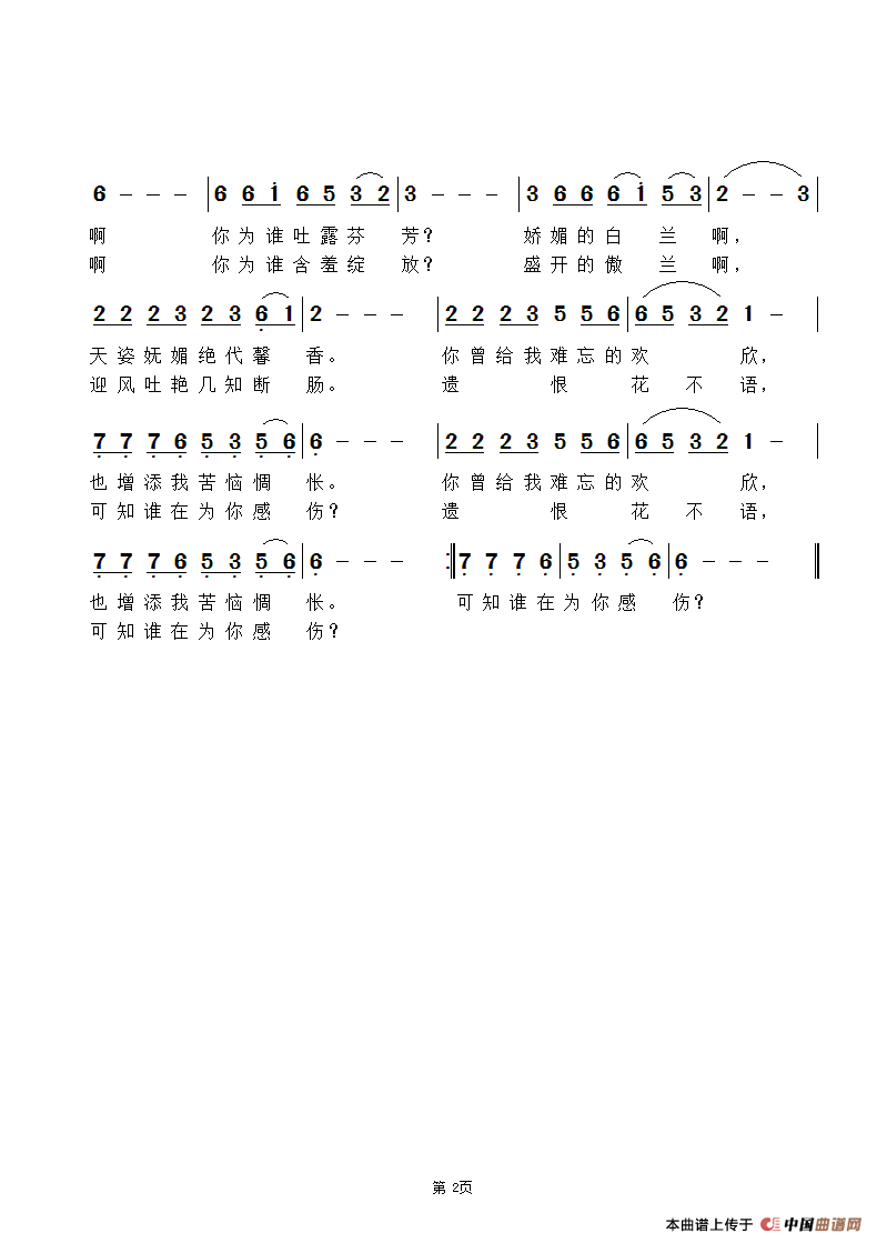 《白兰花》文本歌词