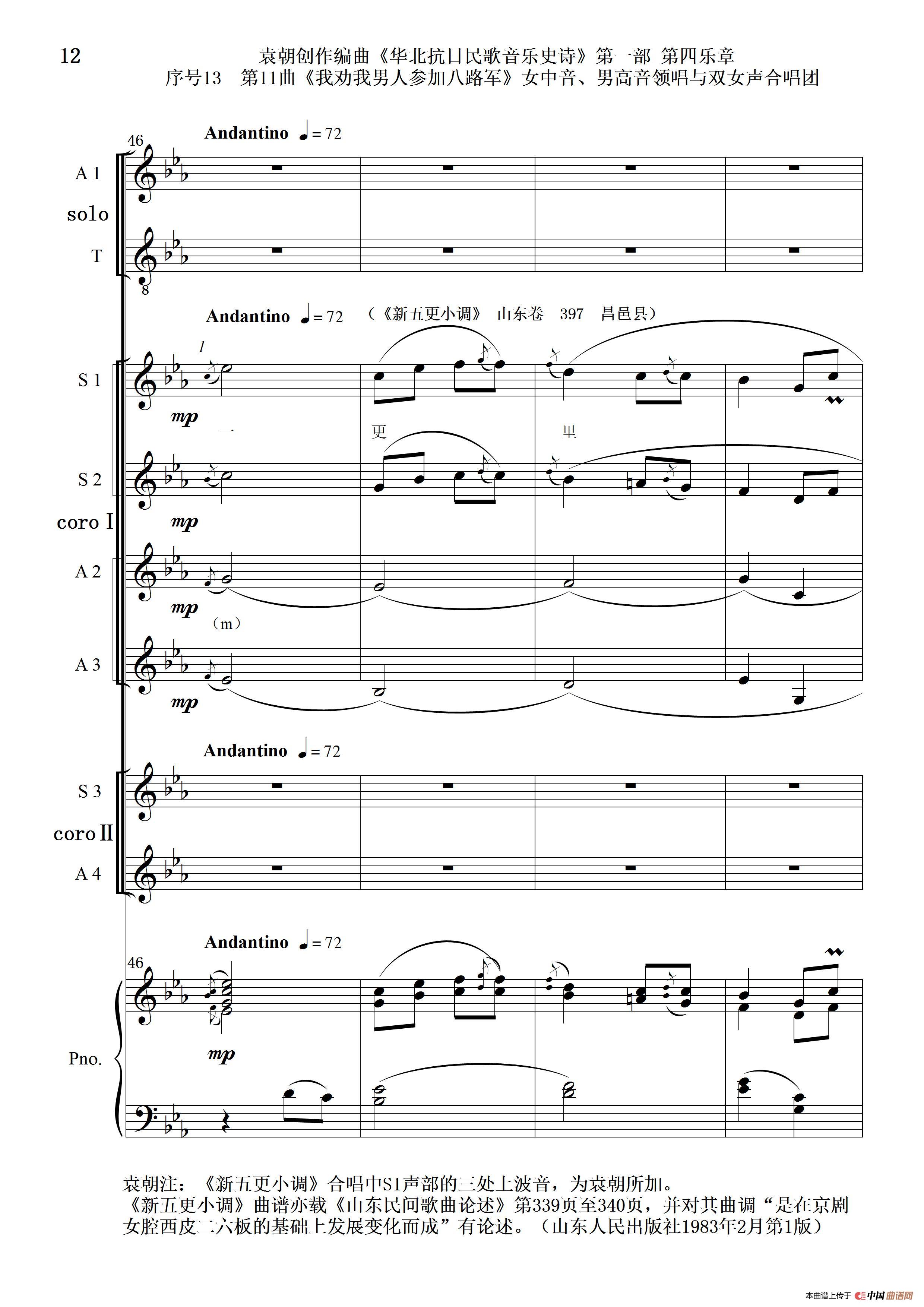 关于《序号13第11曲《我劝我男人参加八路军》女中音、男高音领唱 双合唱团与钢琴》曲谱的评论