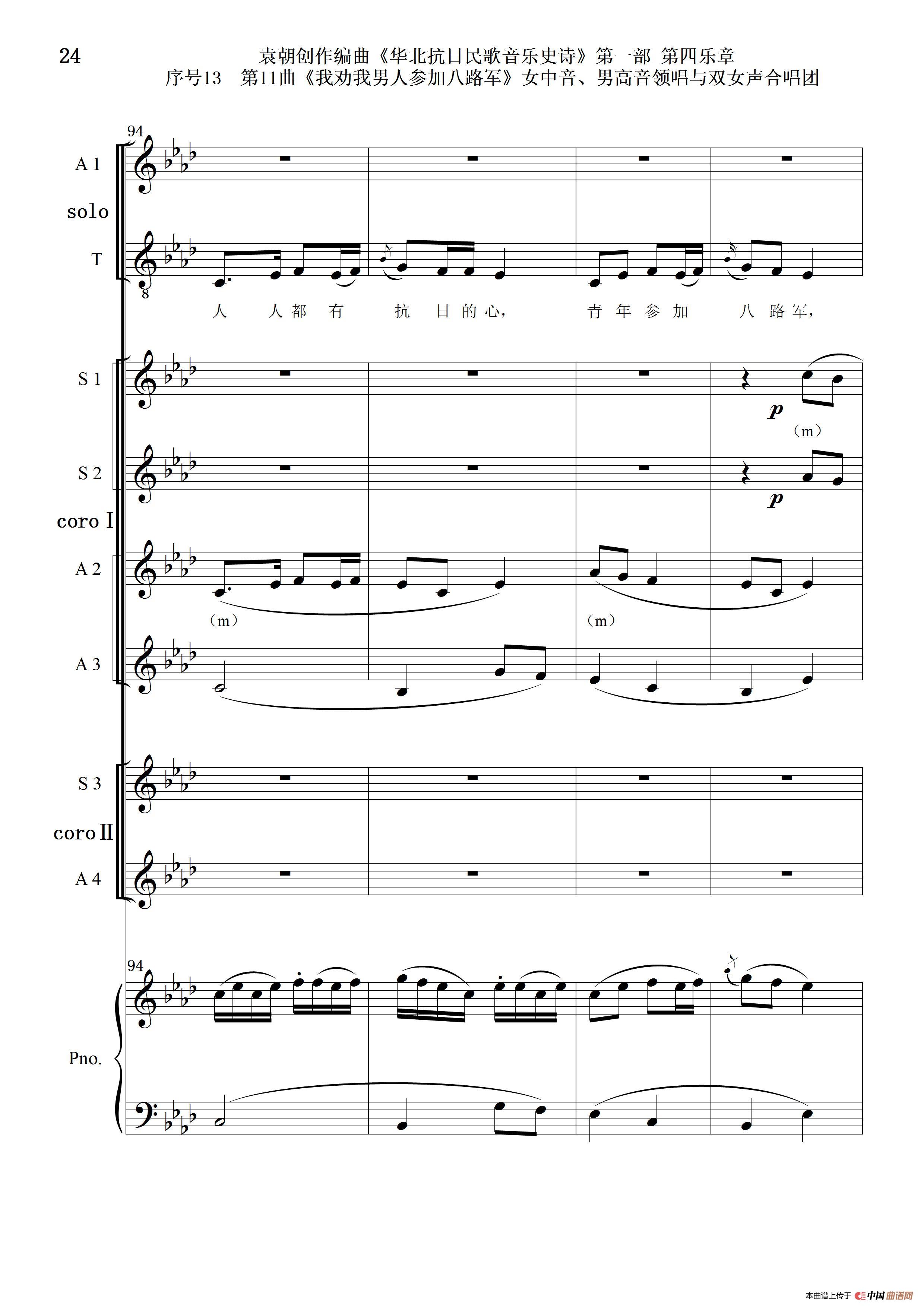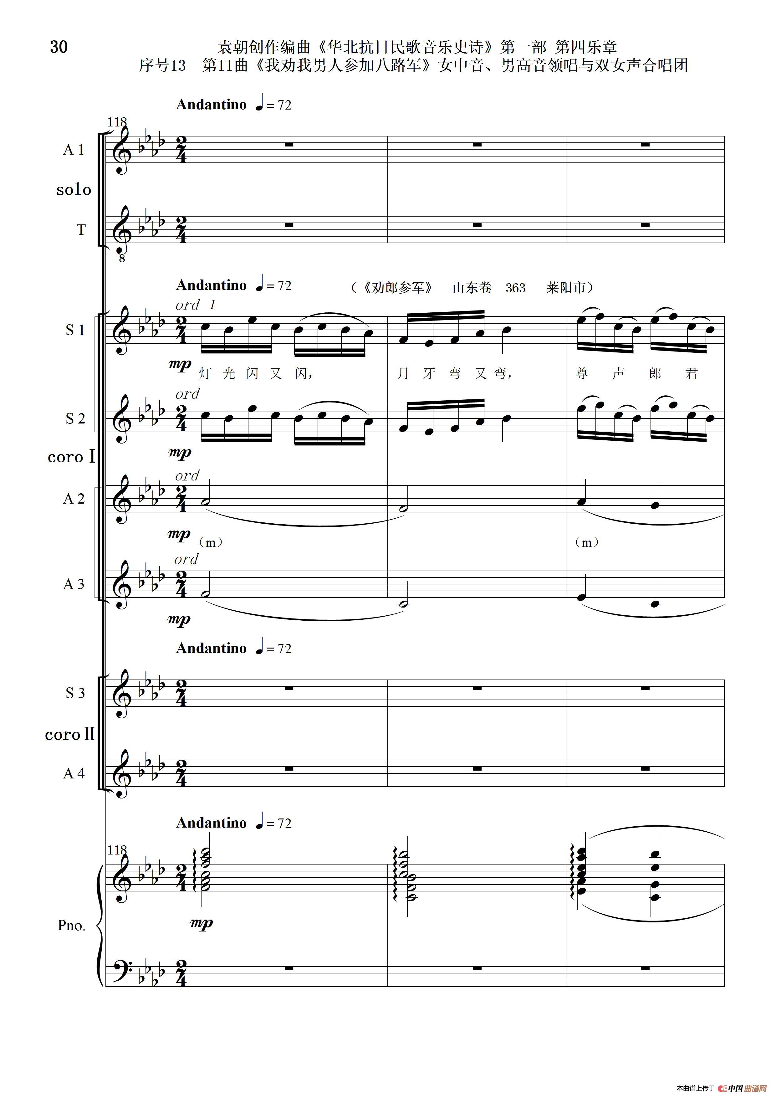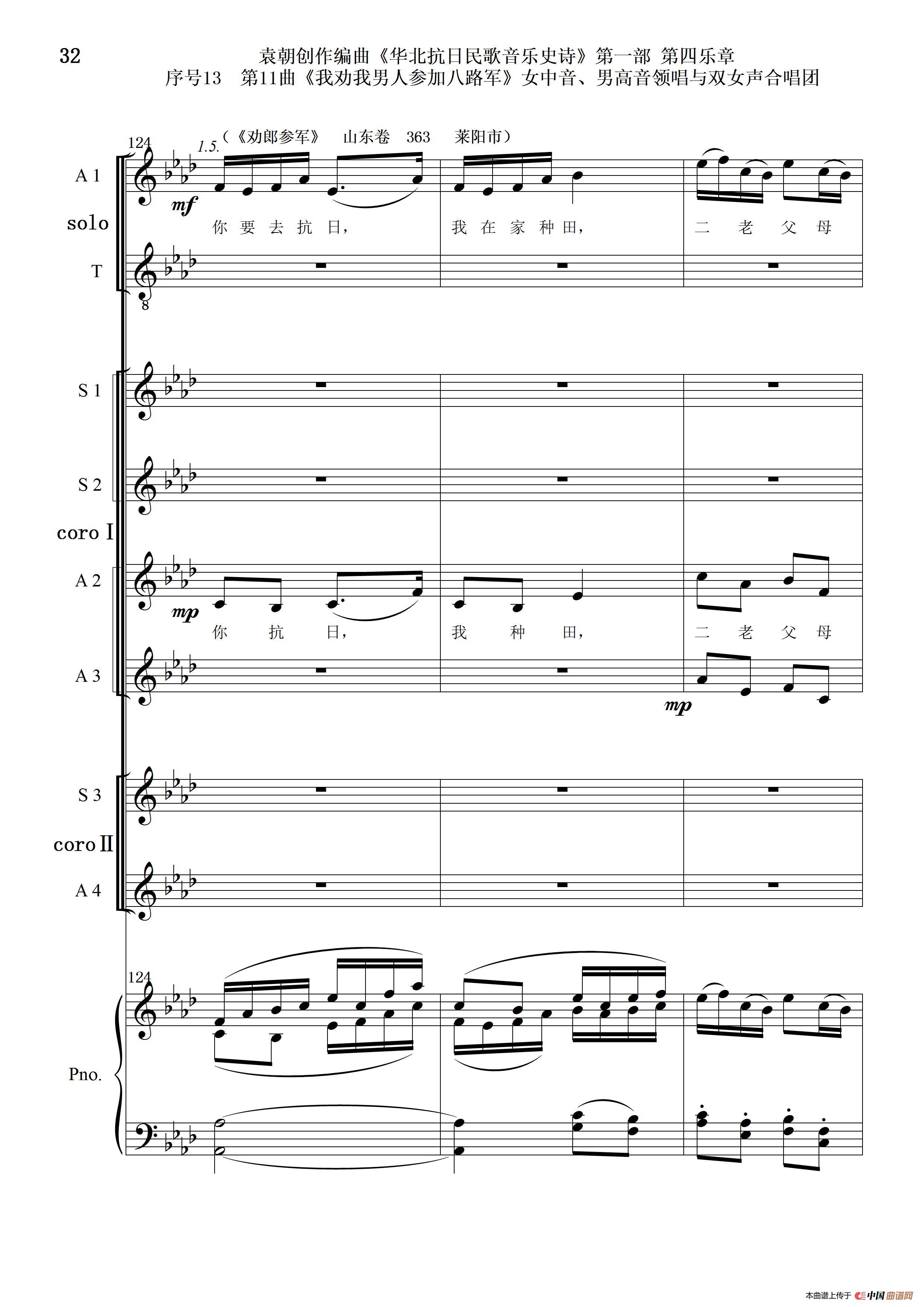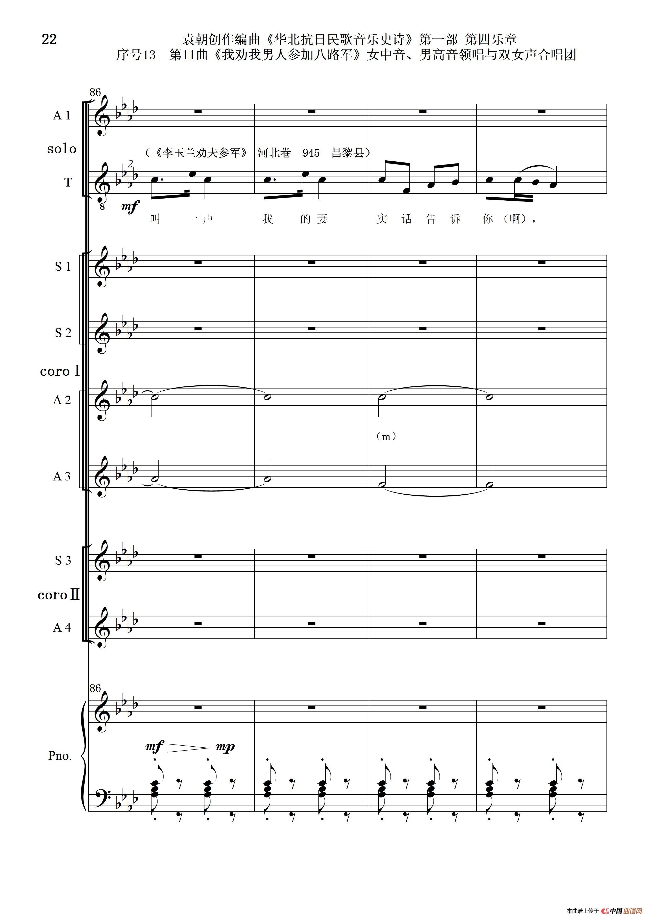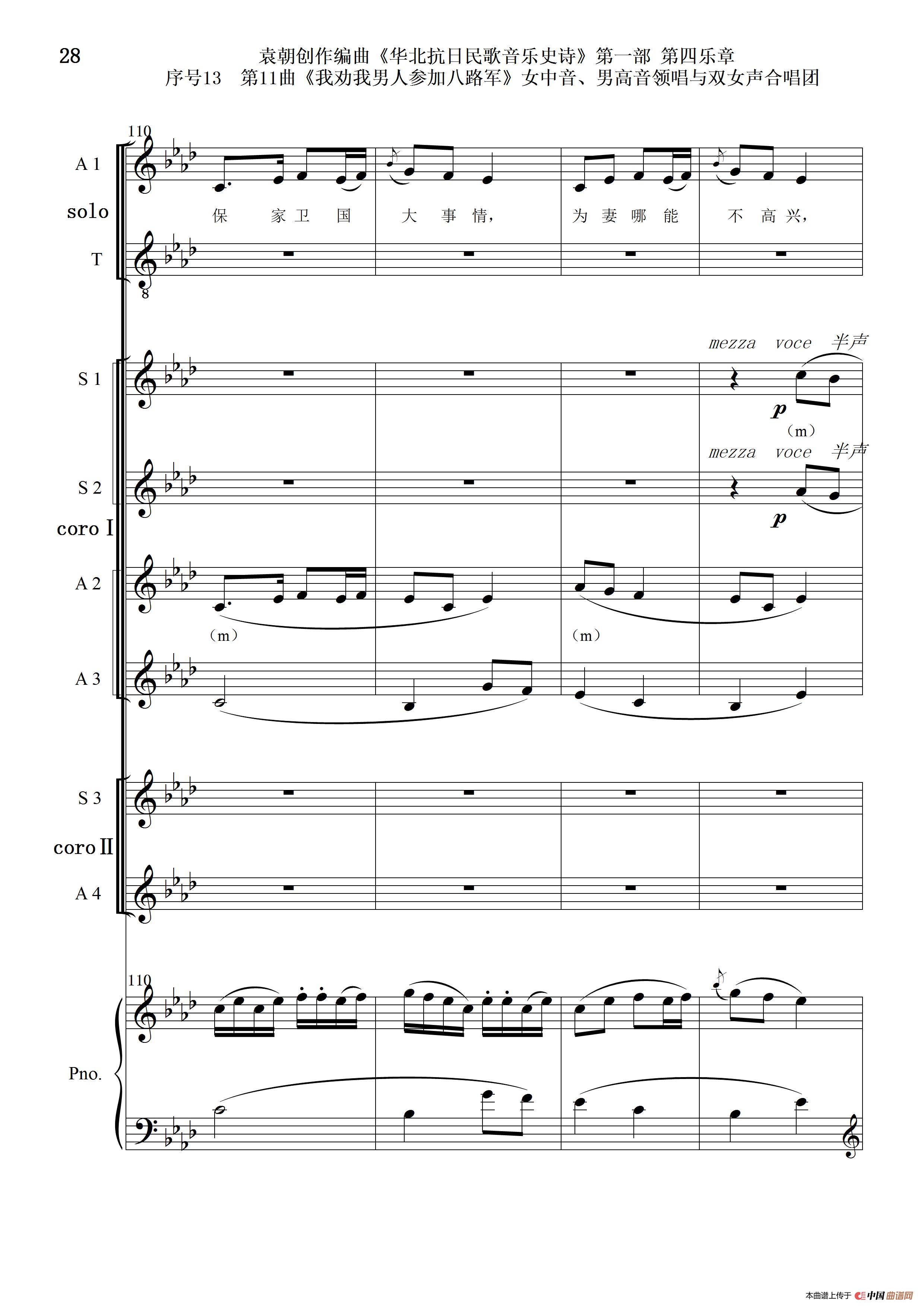 序号13第11曲《我劝我男人参加八路军》女中音、男高音领唱 双合唱团与钢琴