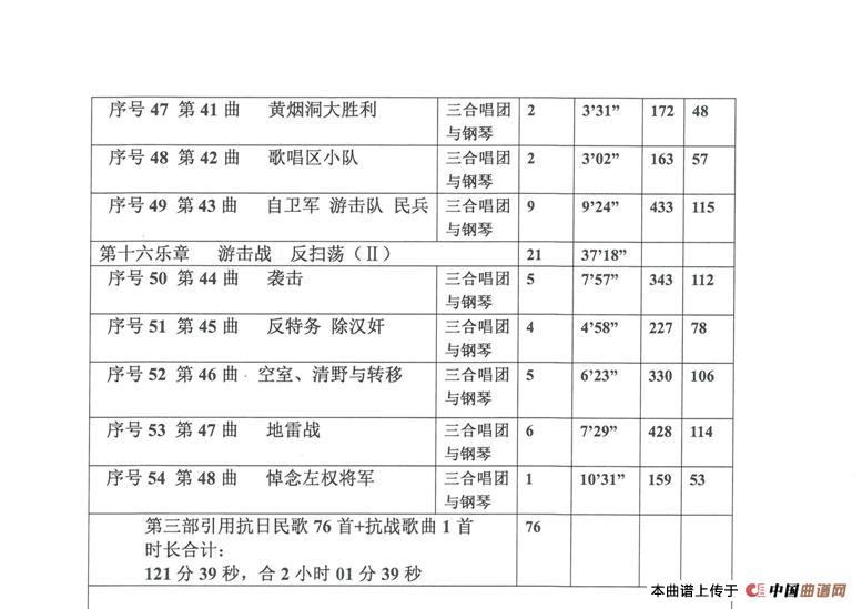 关于《《华北抗日民歌音乐史诗》各项统计(Ⅲ 第三部)》曲谱的评论