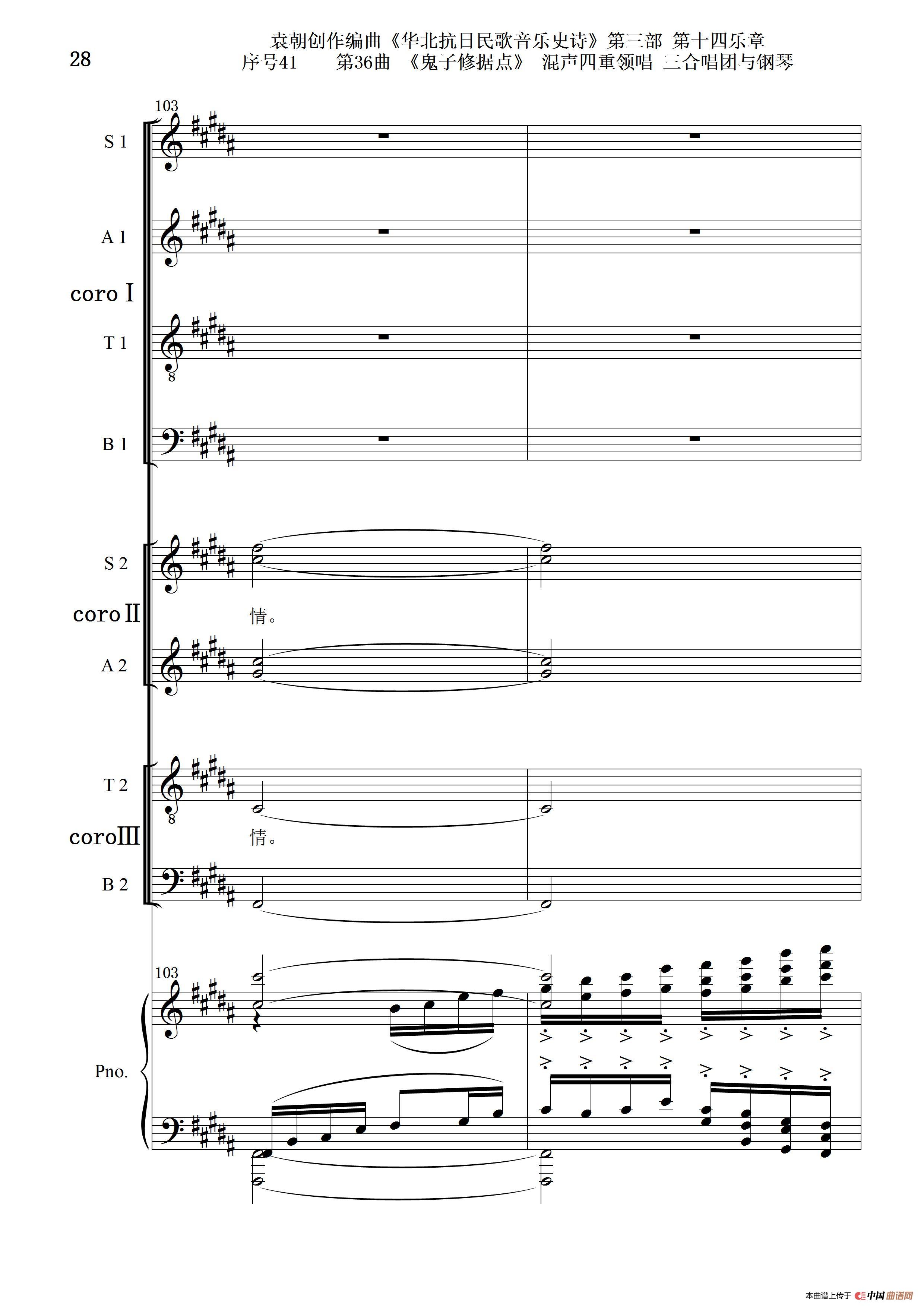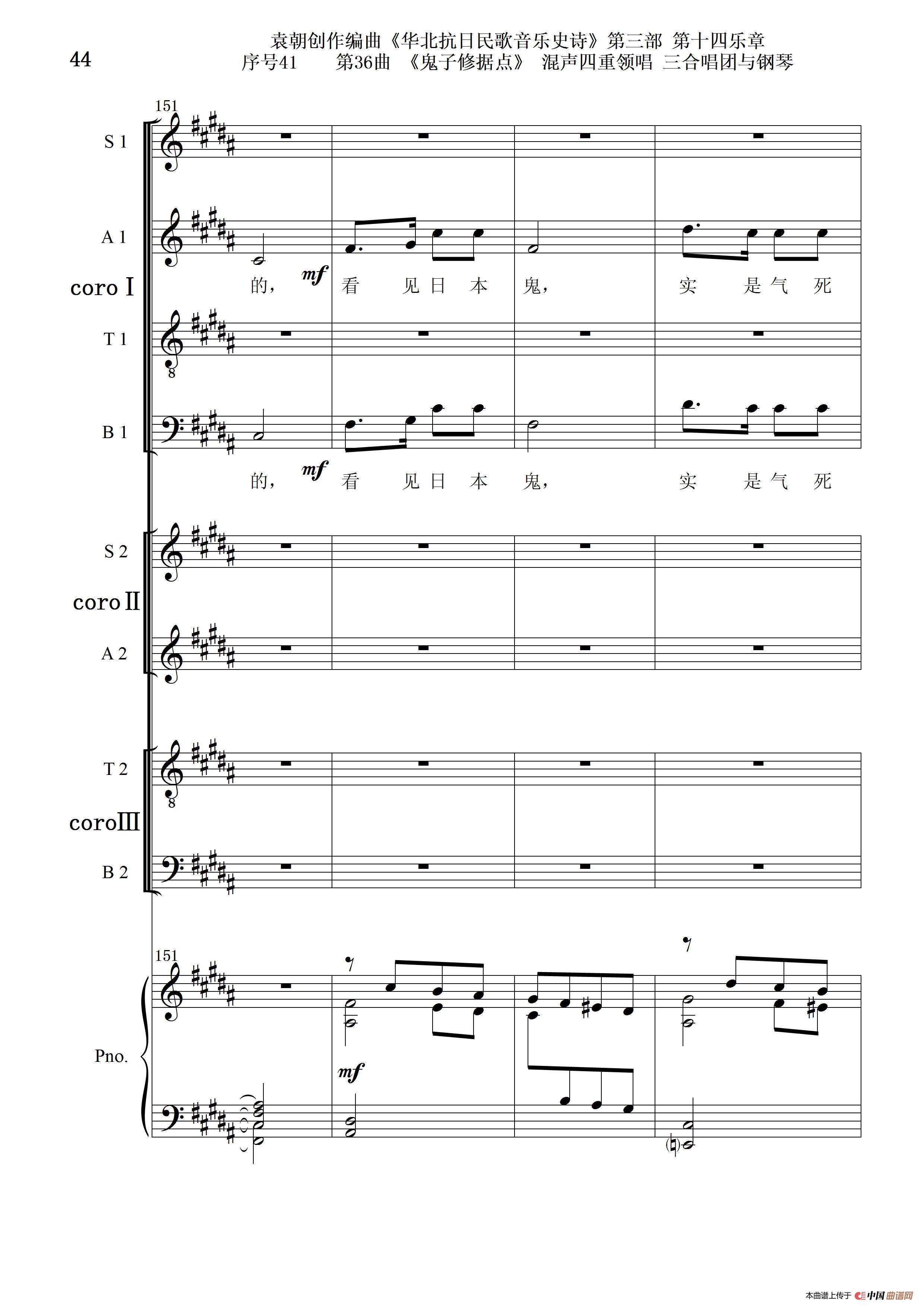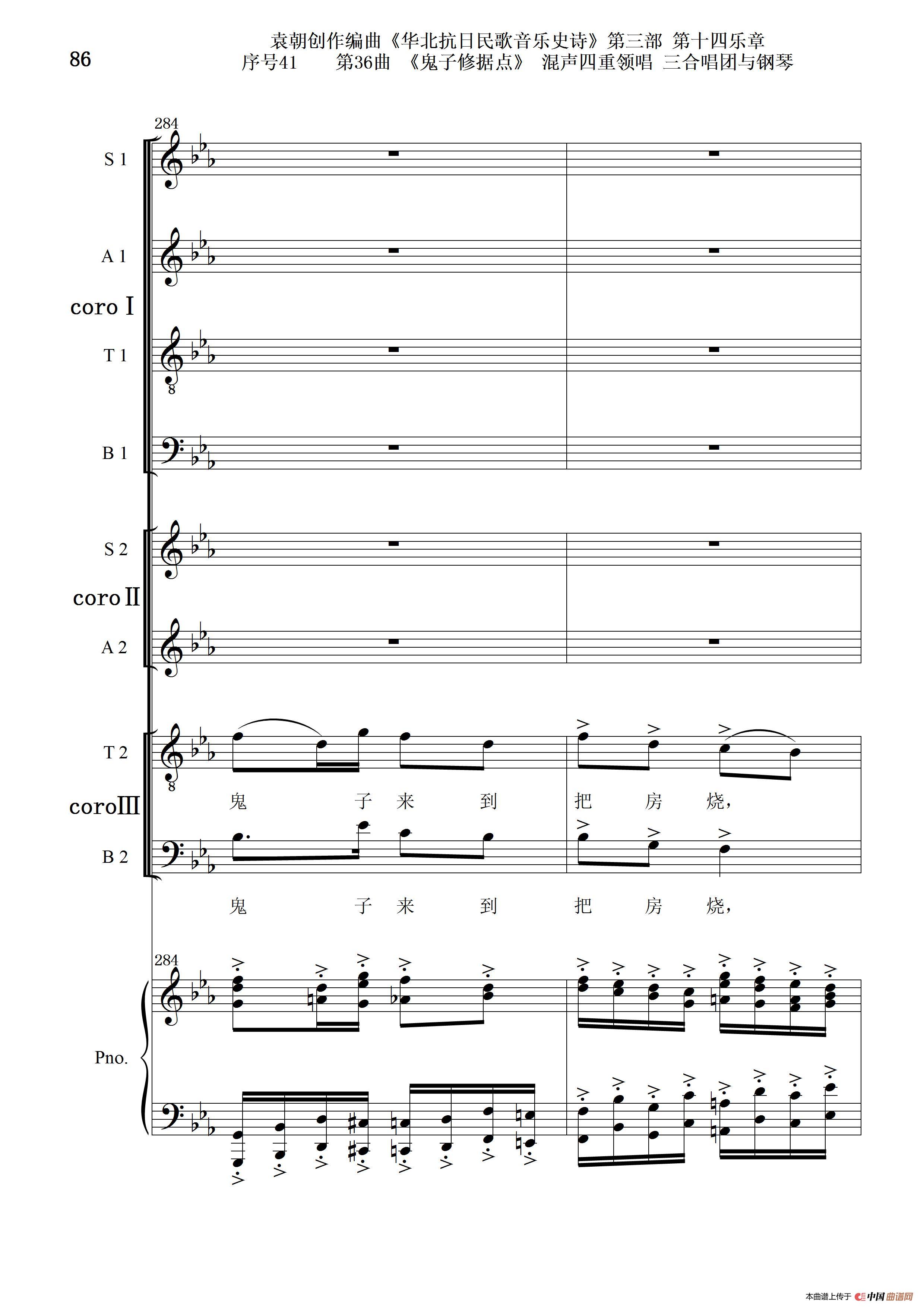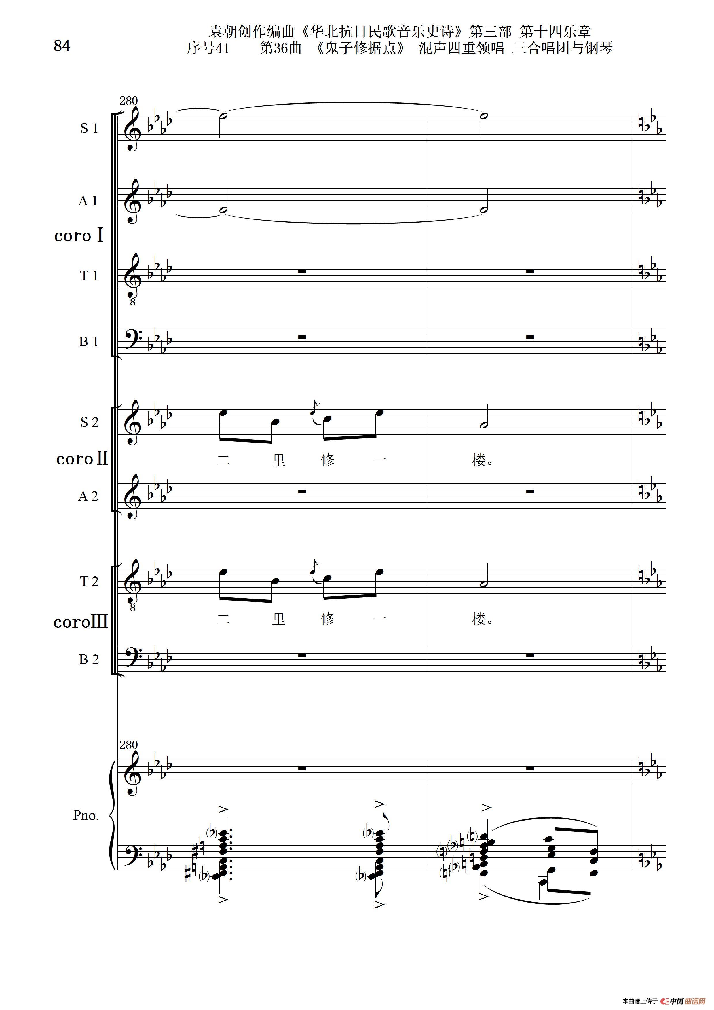 序号41第36曲《鬼子修据点》三合唱团与钢琴