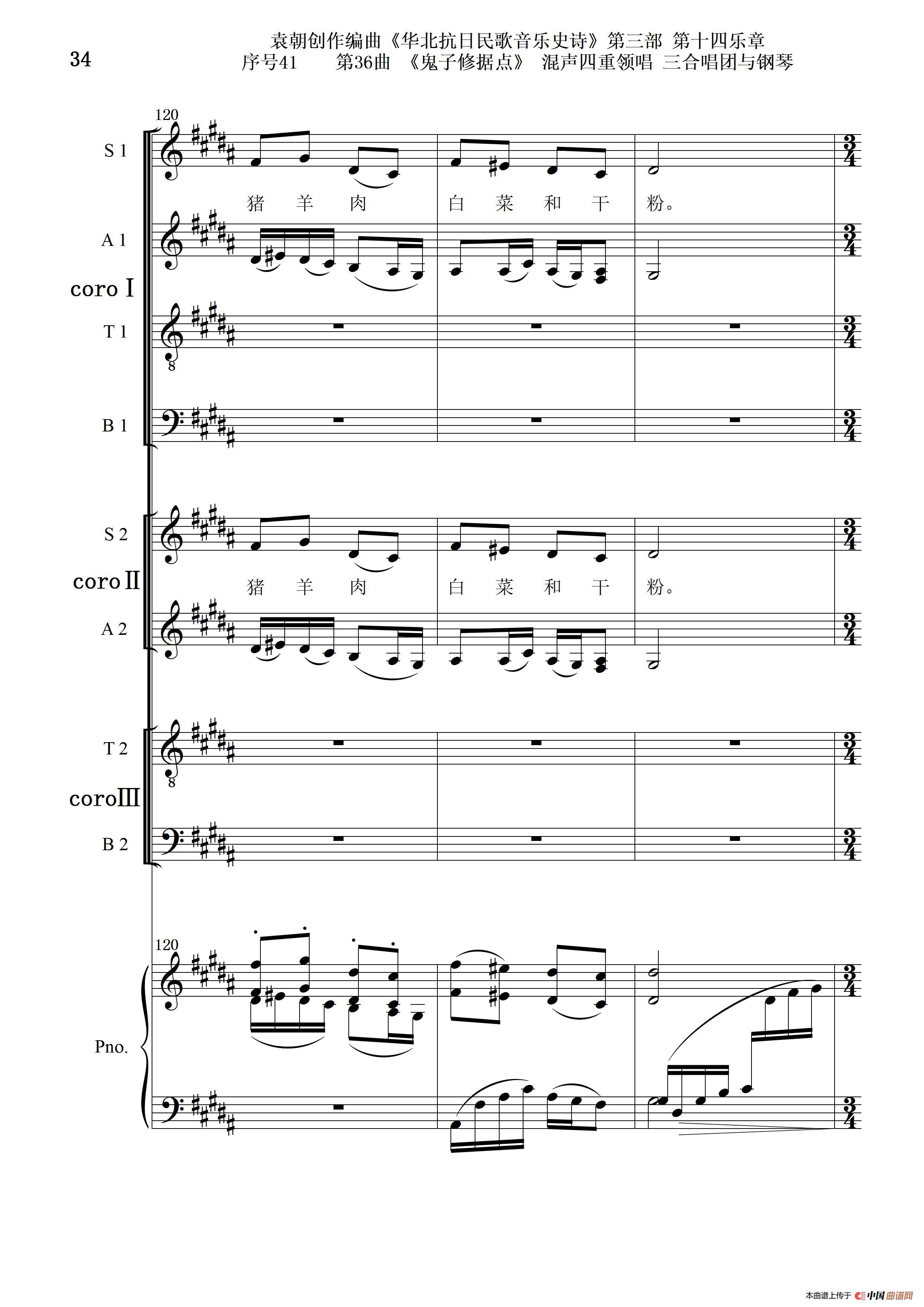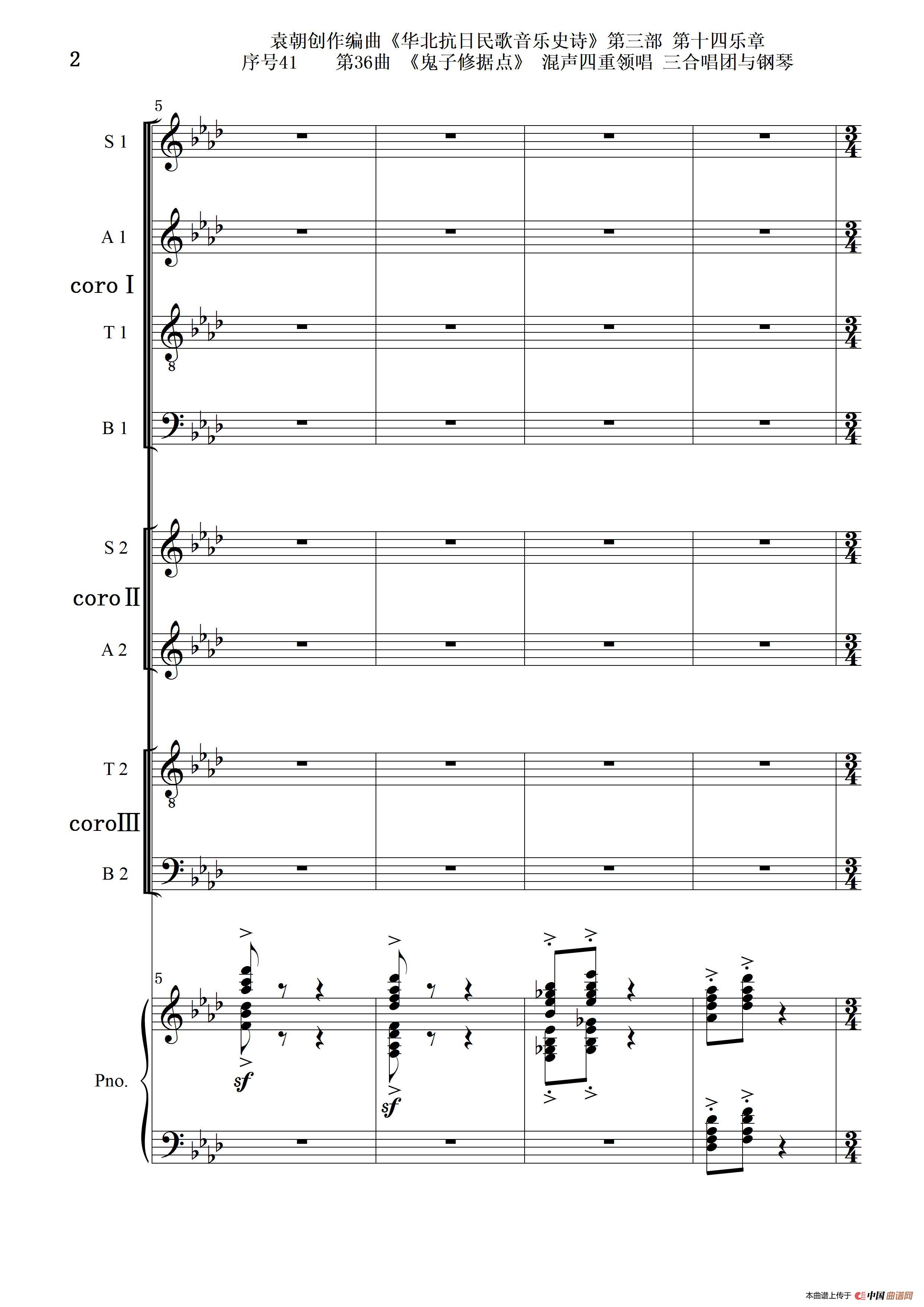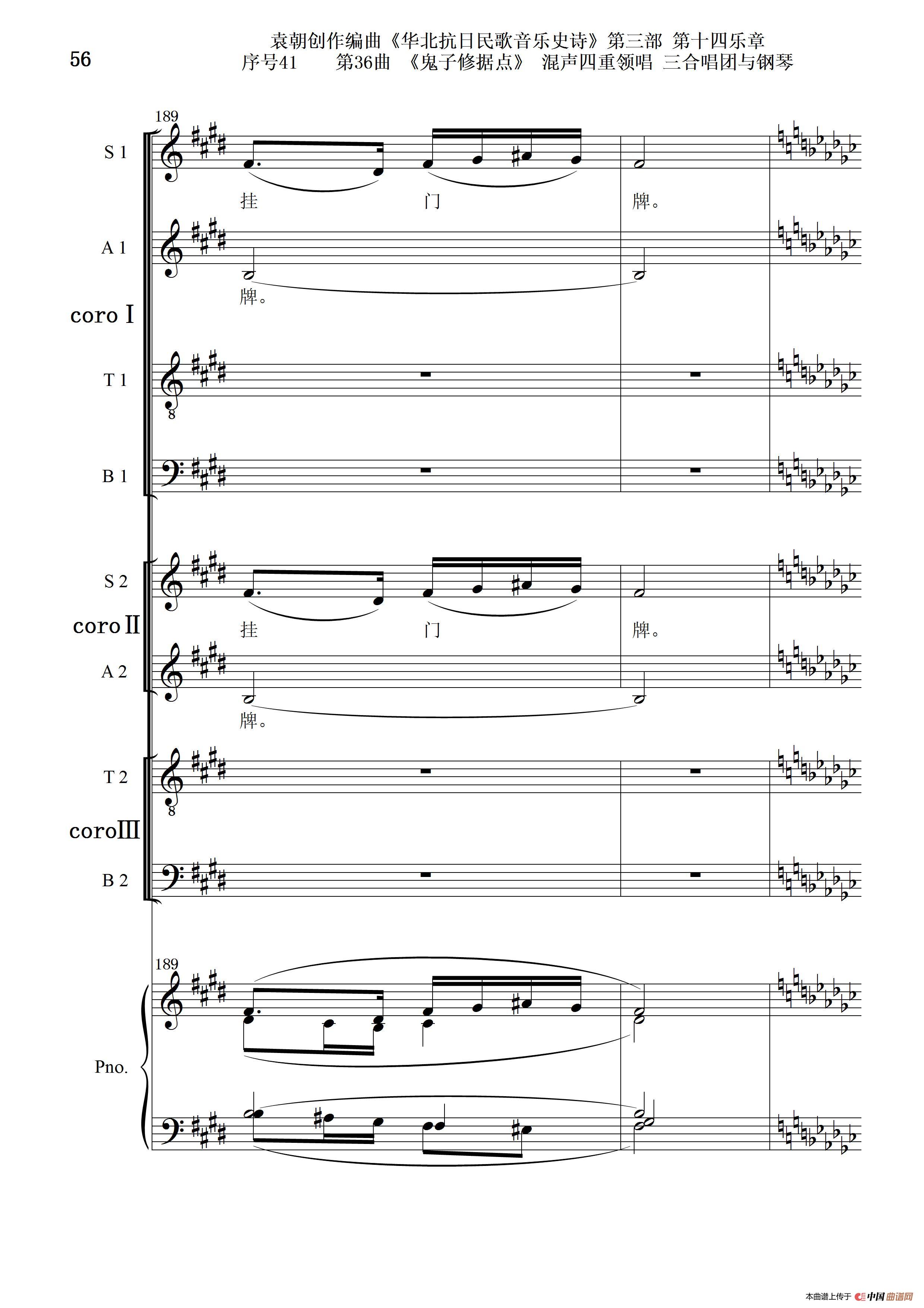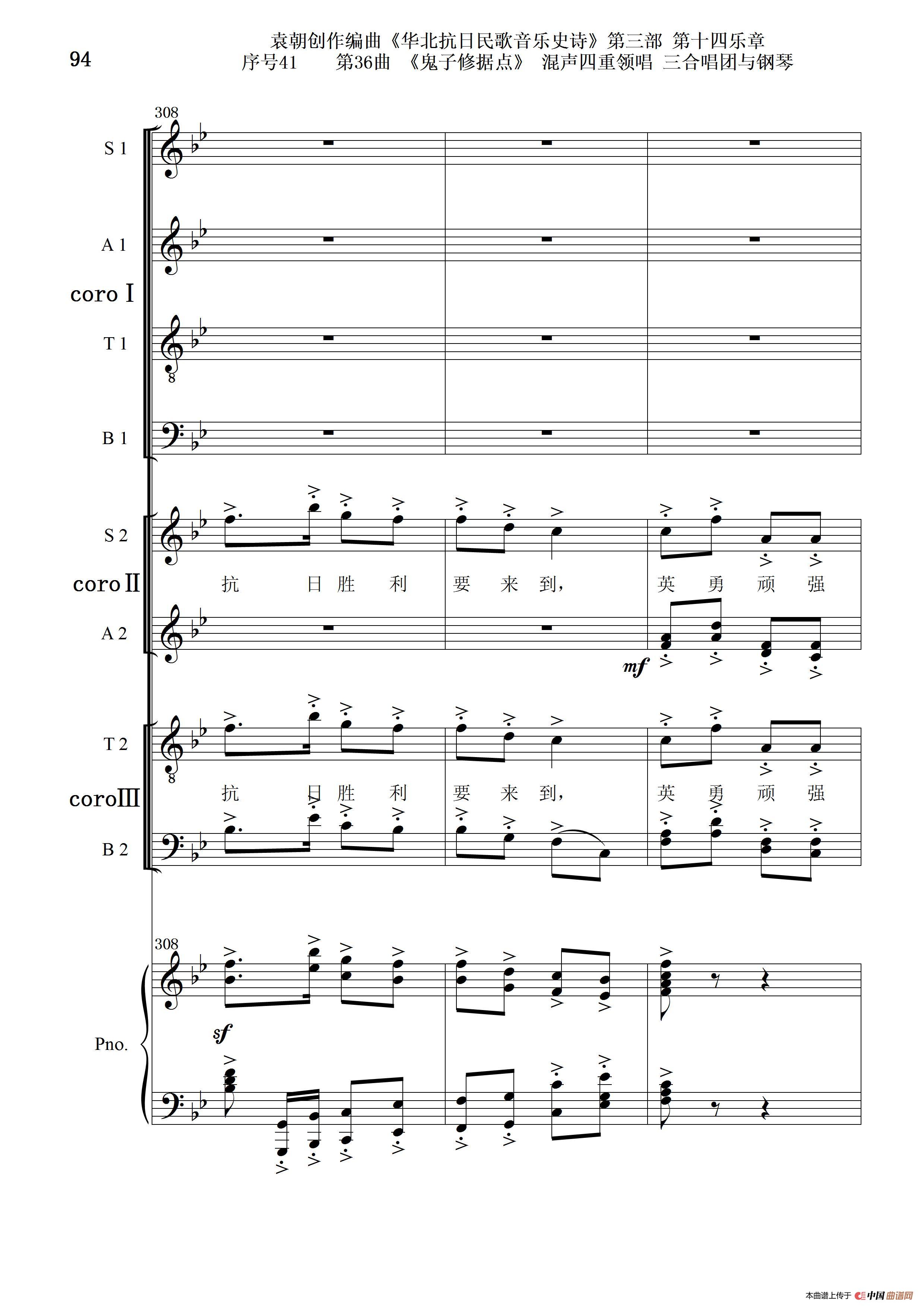 序号41第36曲《鬼子修据点》三合唱团与钢琴