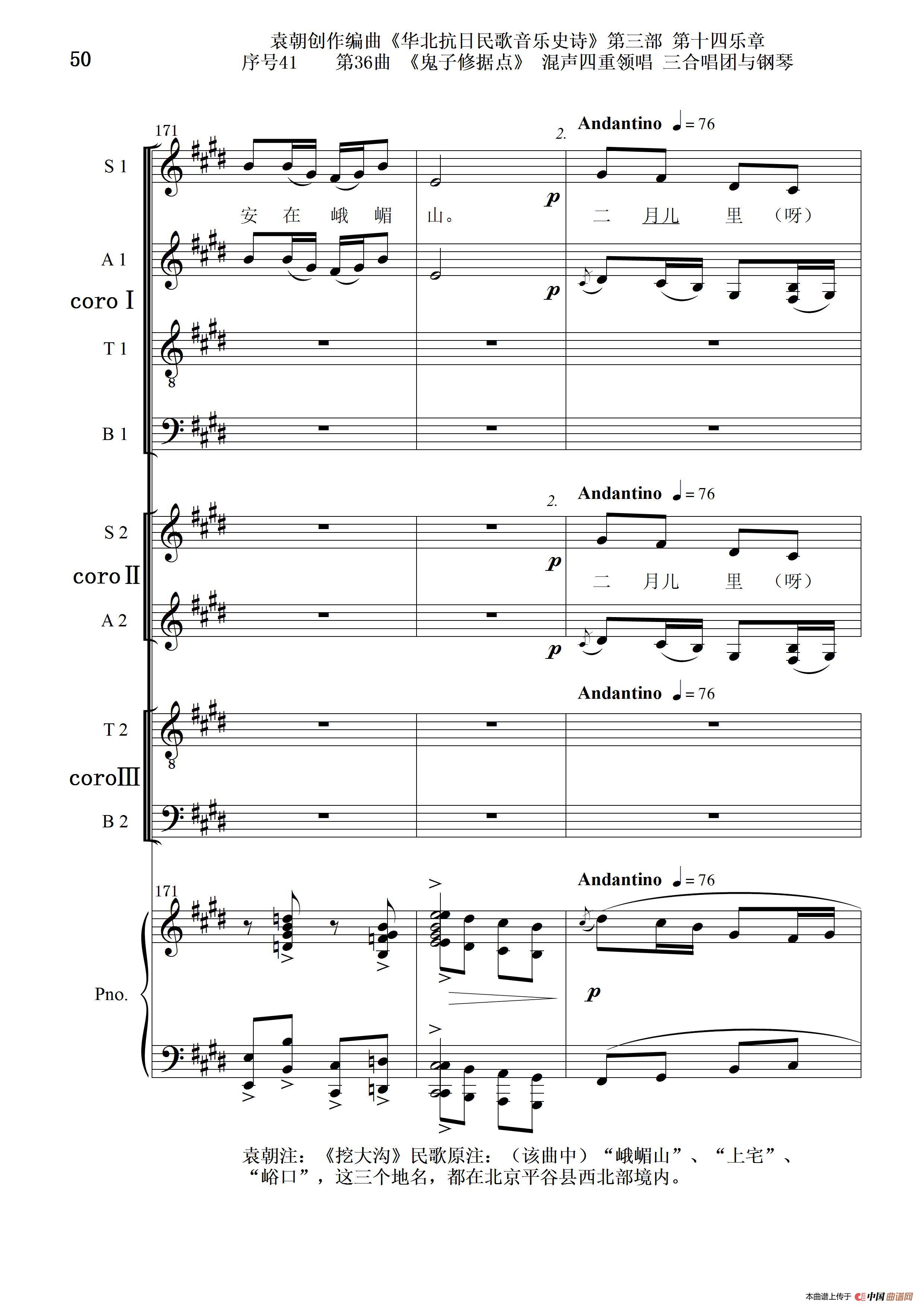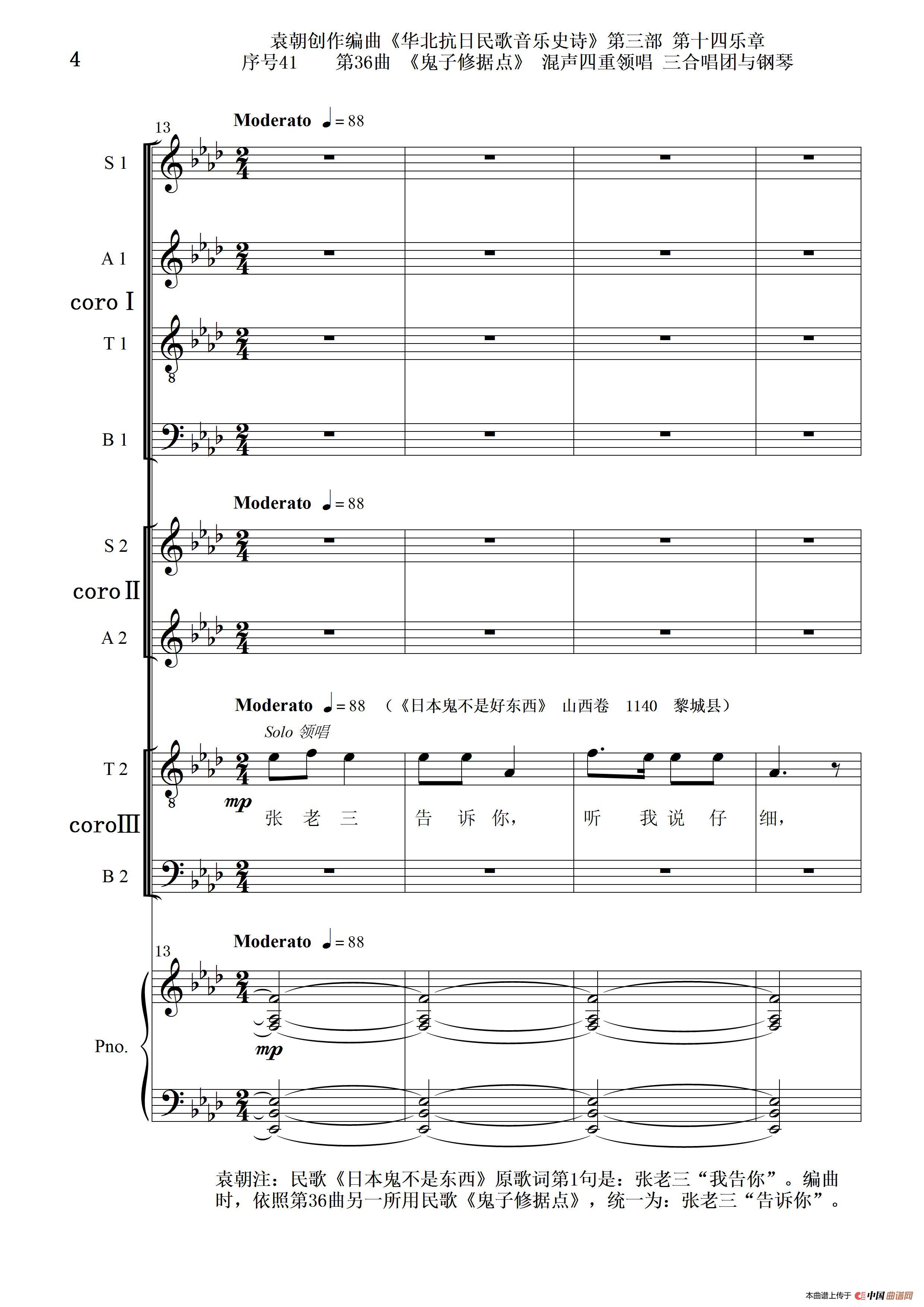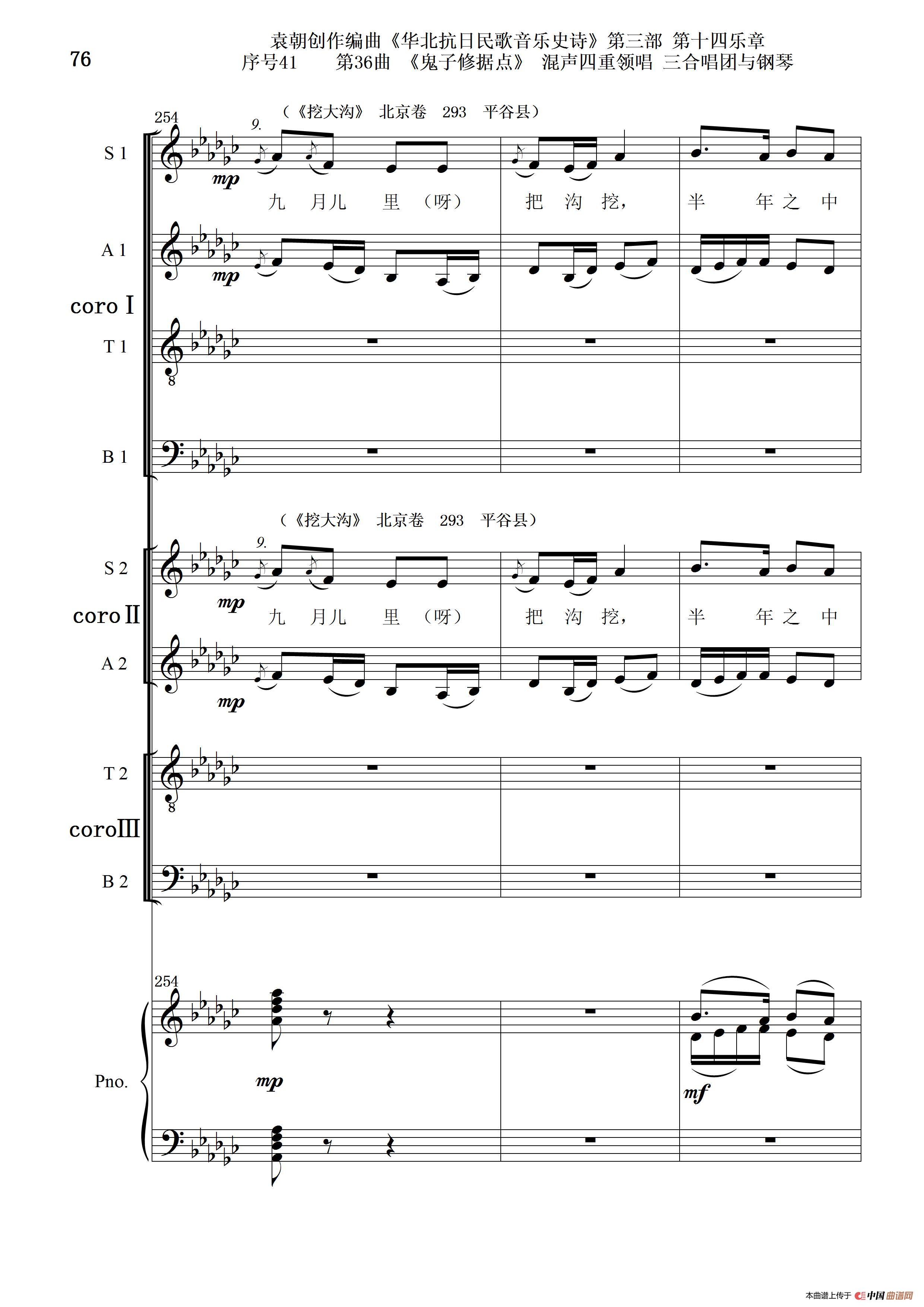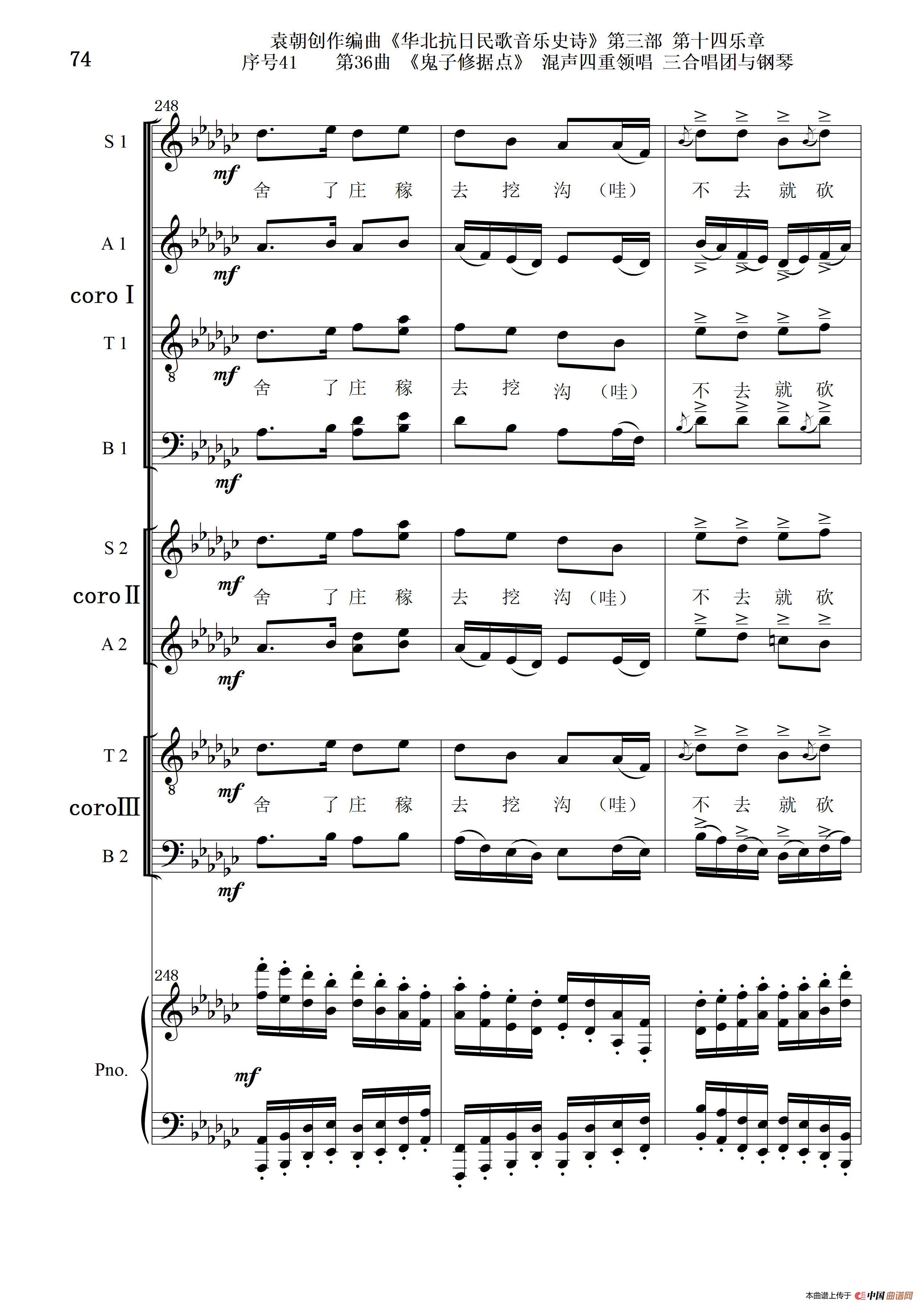 序号41第36曲《鬼子修据点》三合唱团与钢琴