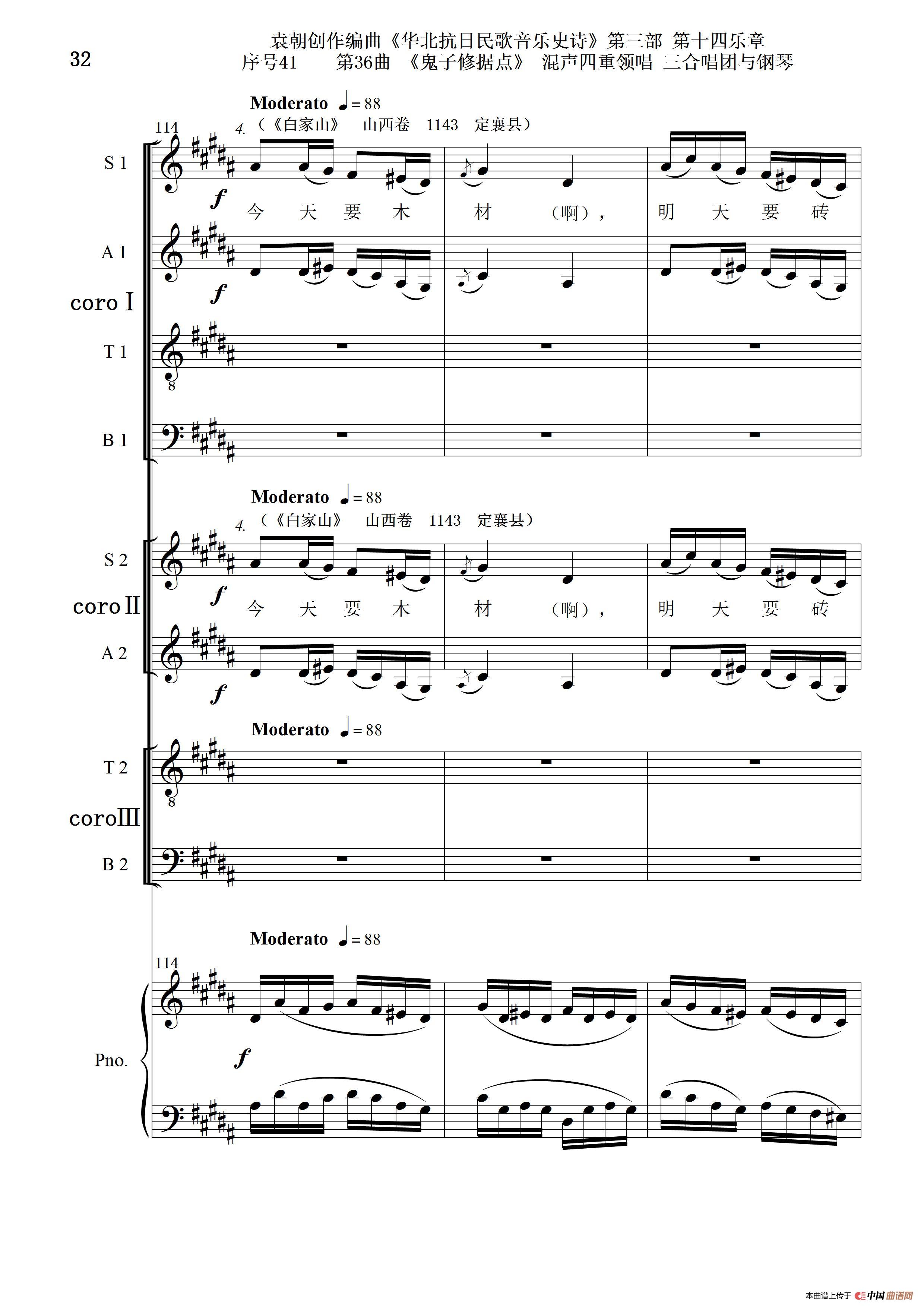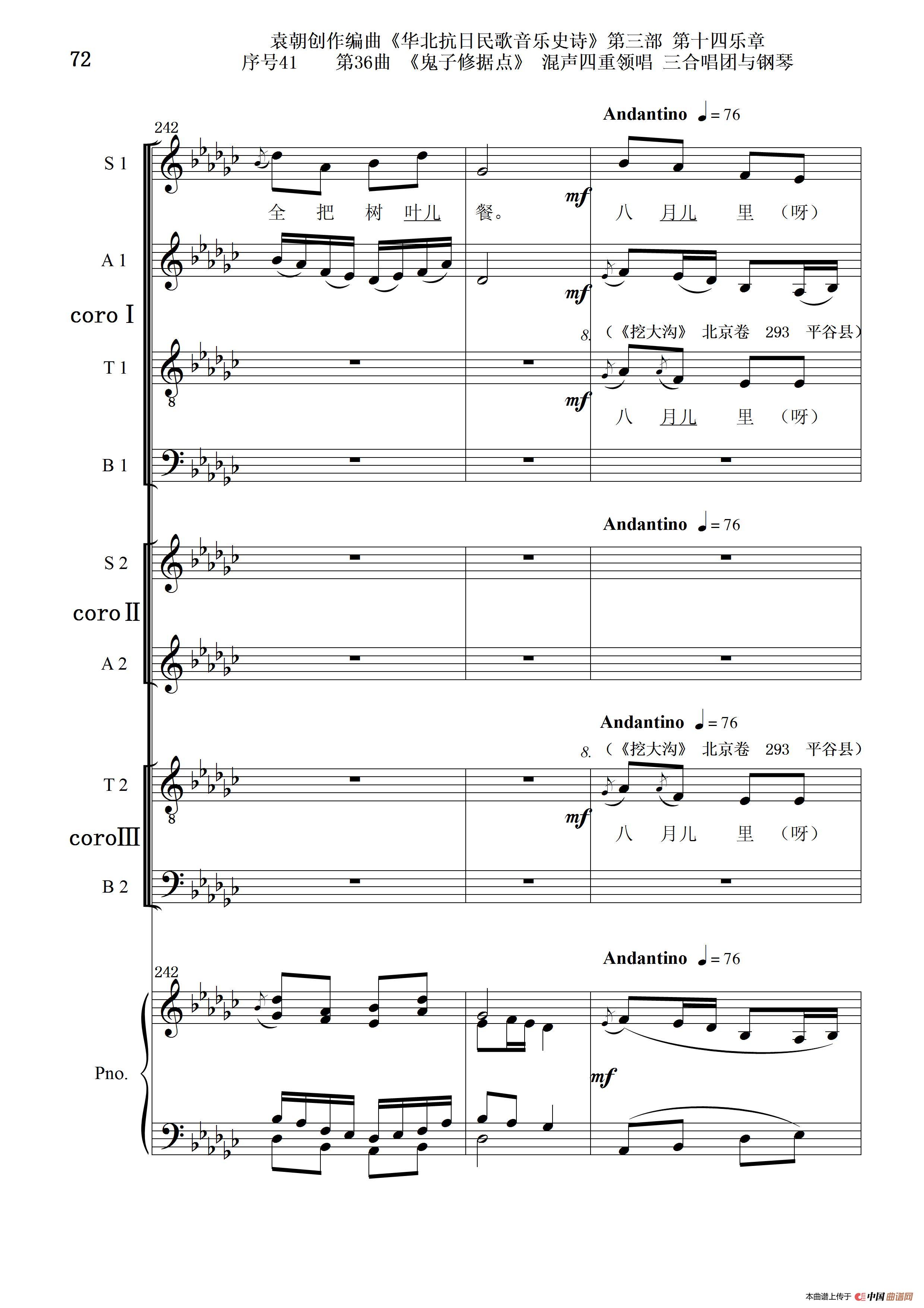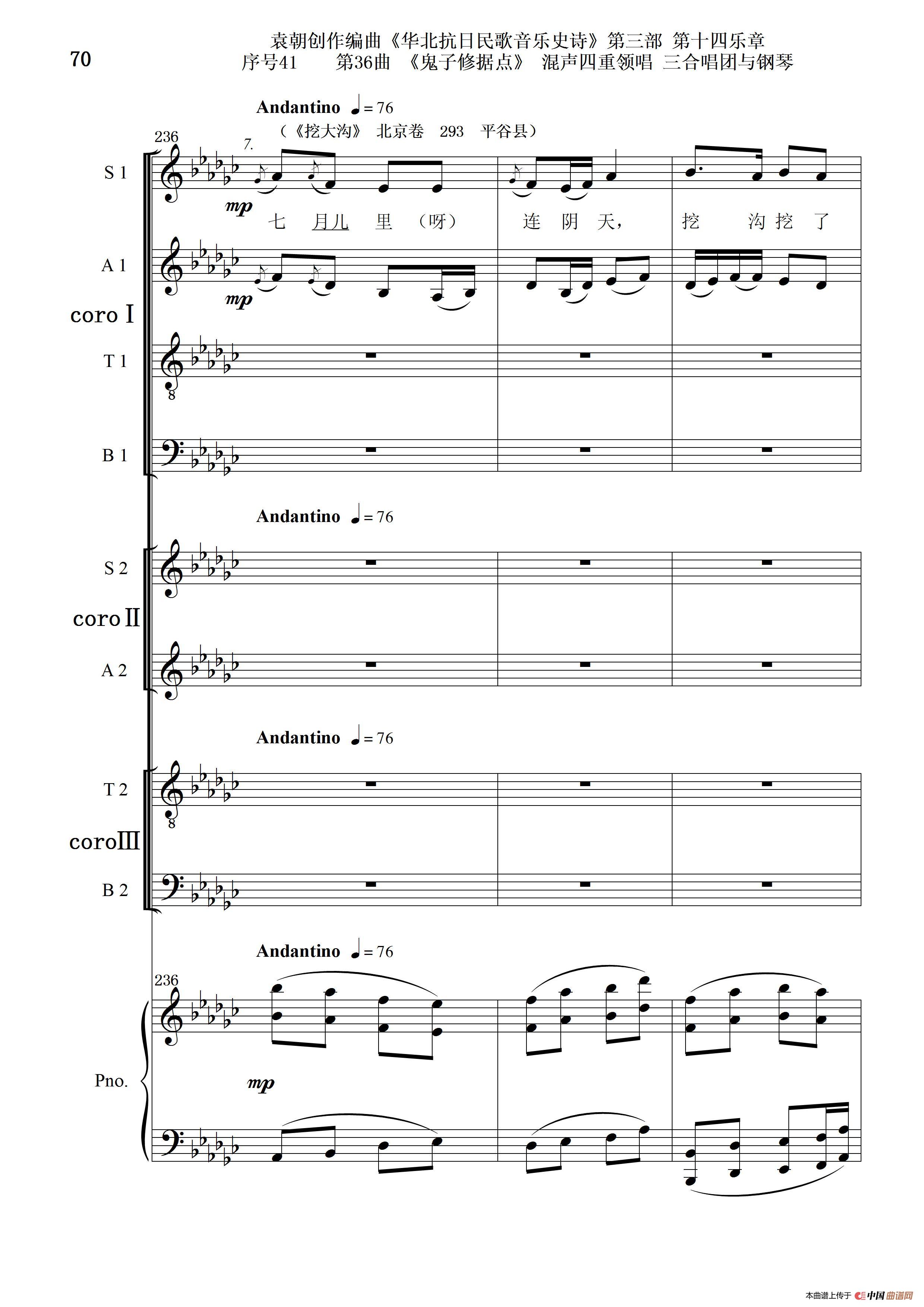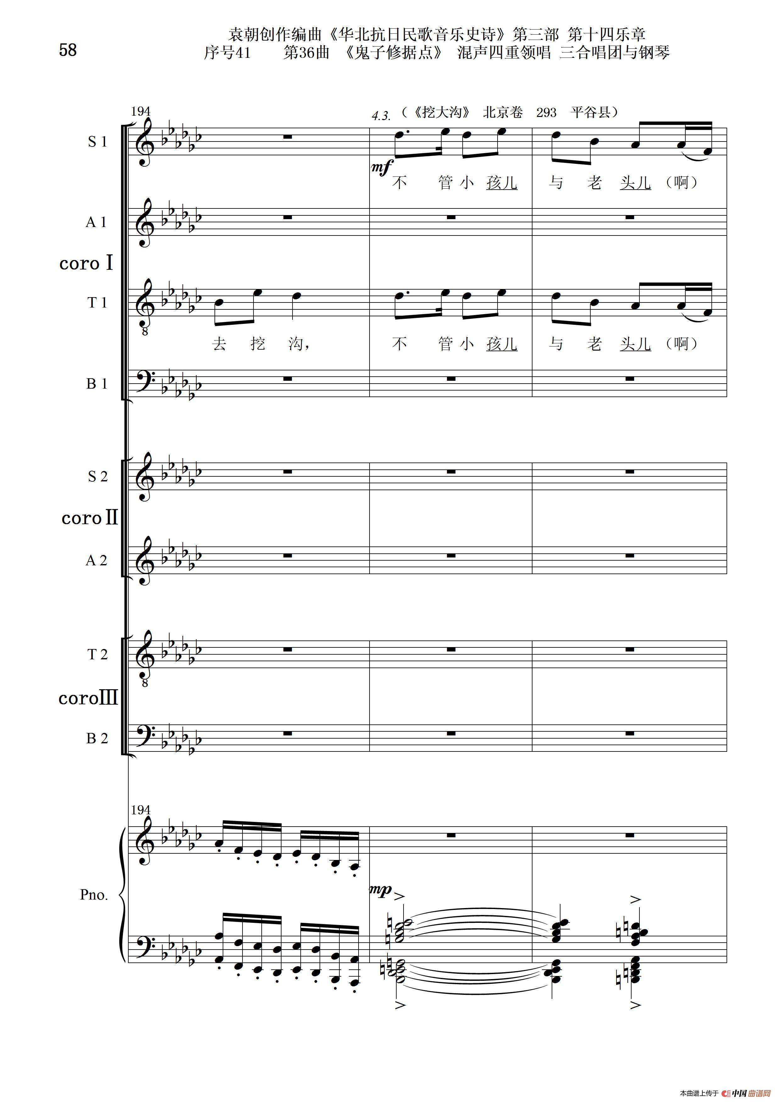 序号41第36曲《鬼子修据点》三合唱团与钢琴