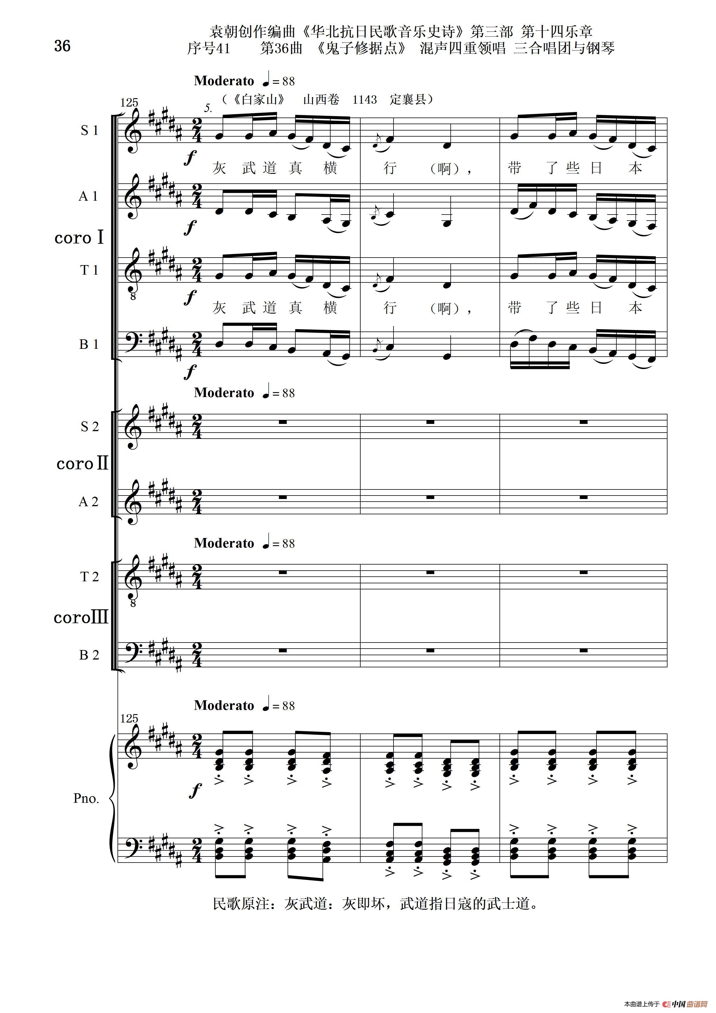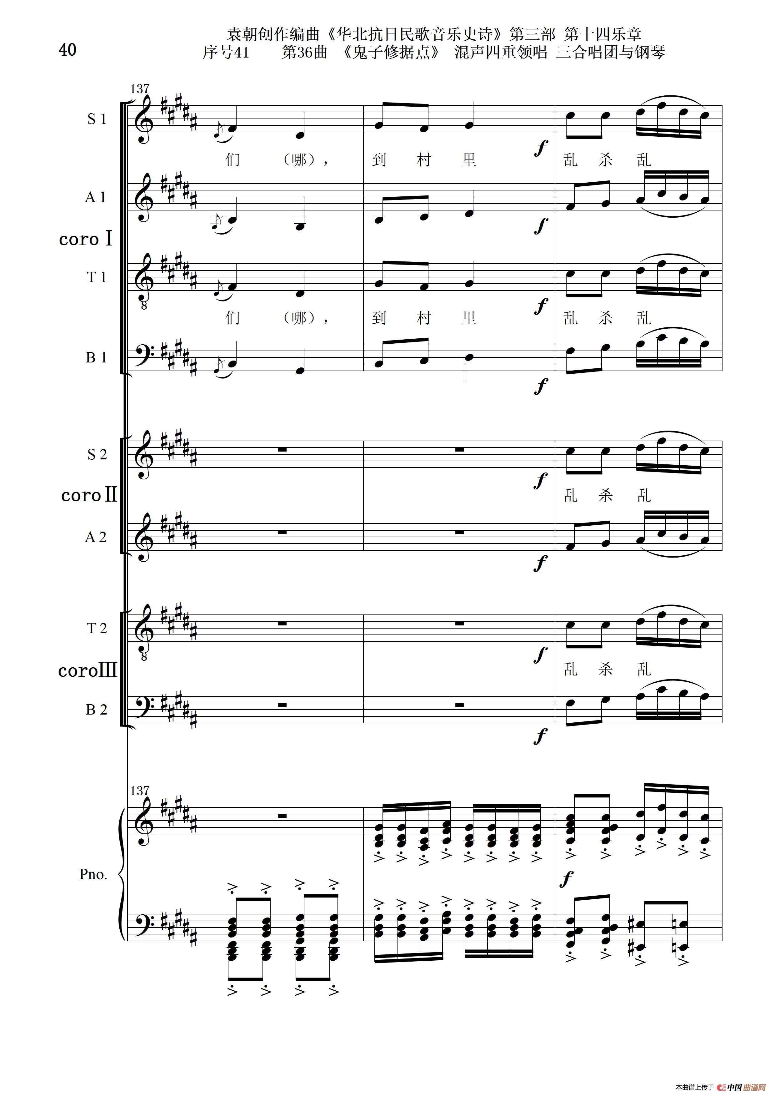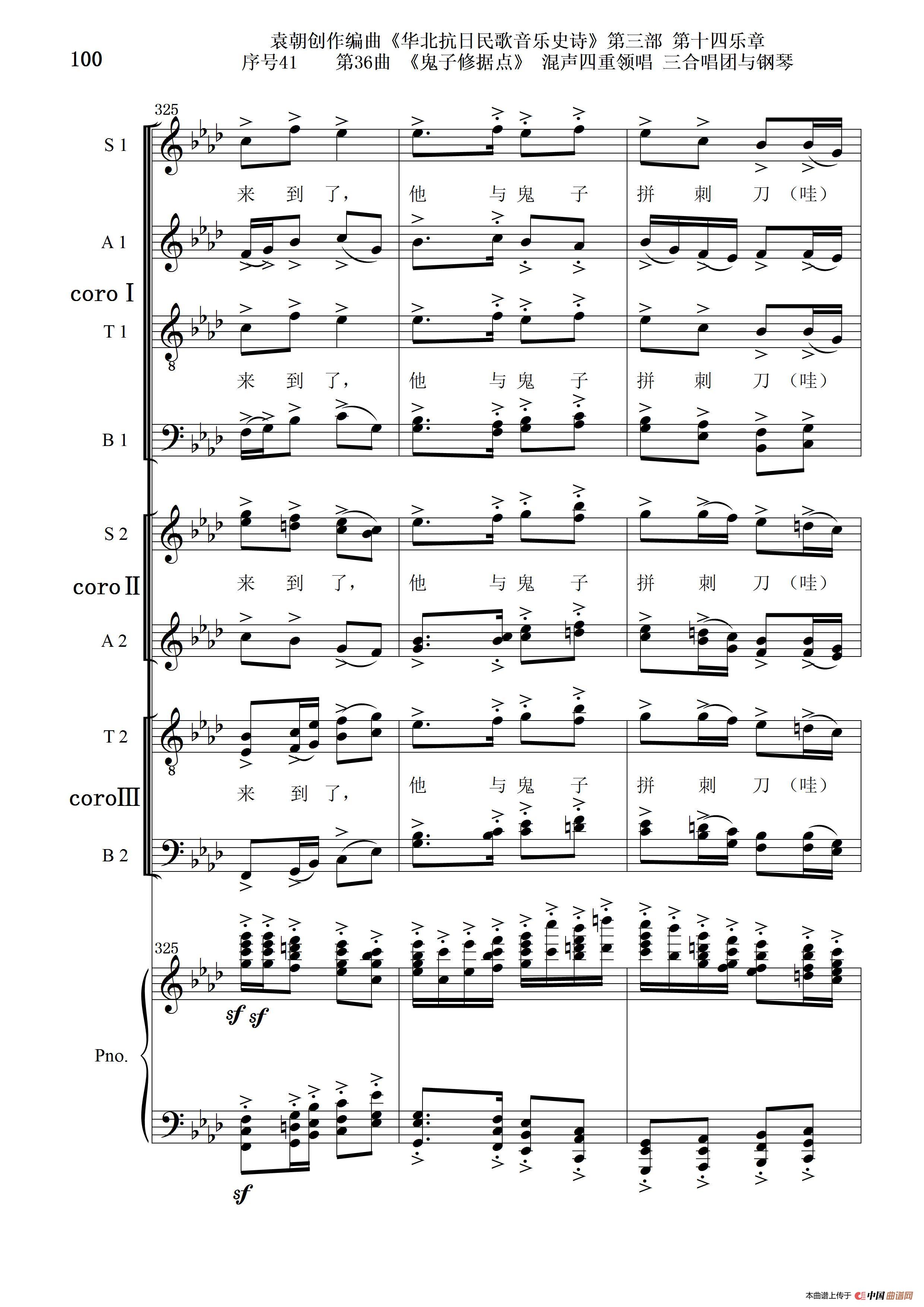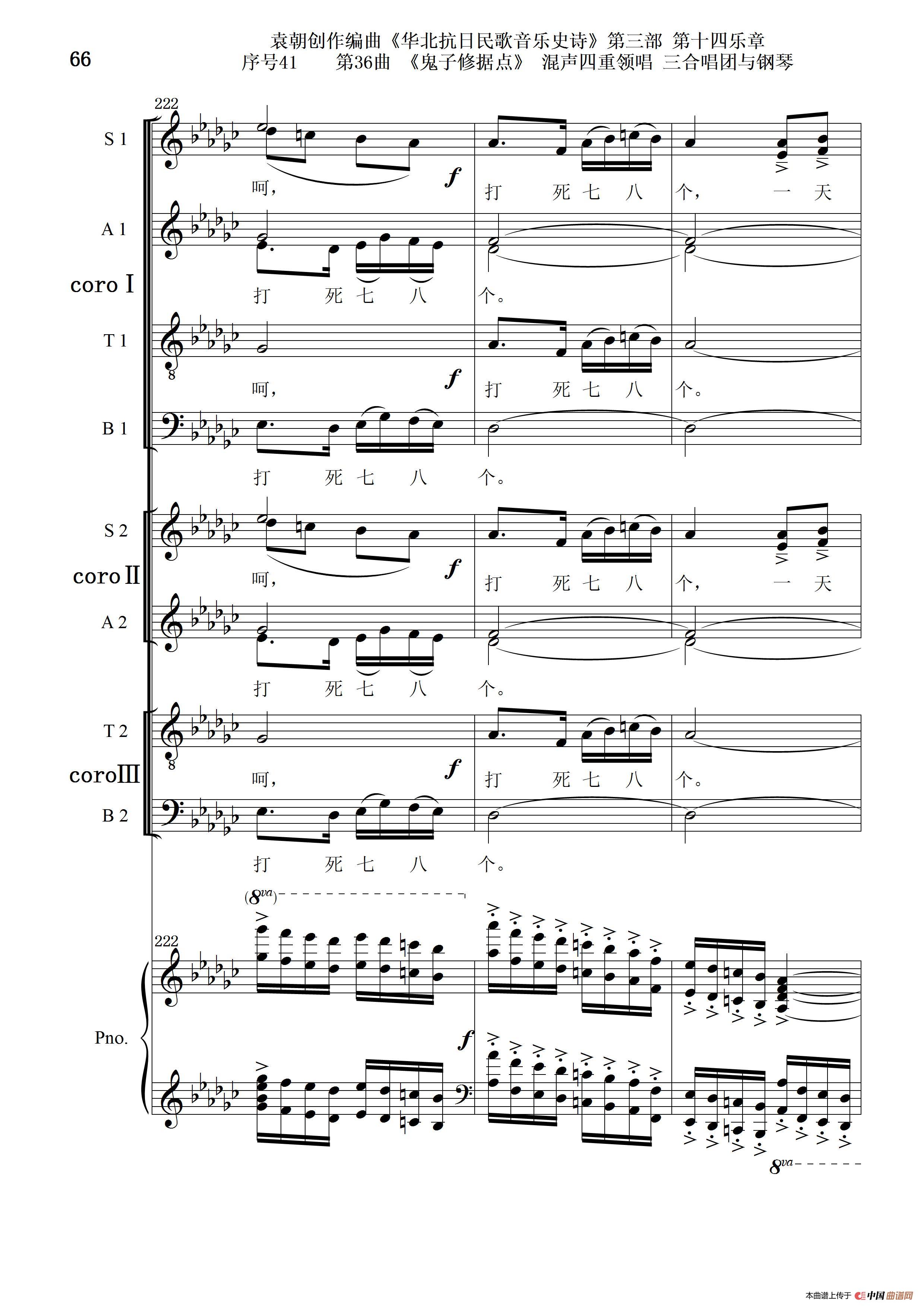 关于《序号41第36曲《鬼子修据点》三合唱团与钢琴》曲谱的评论
