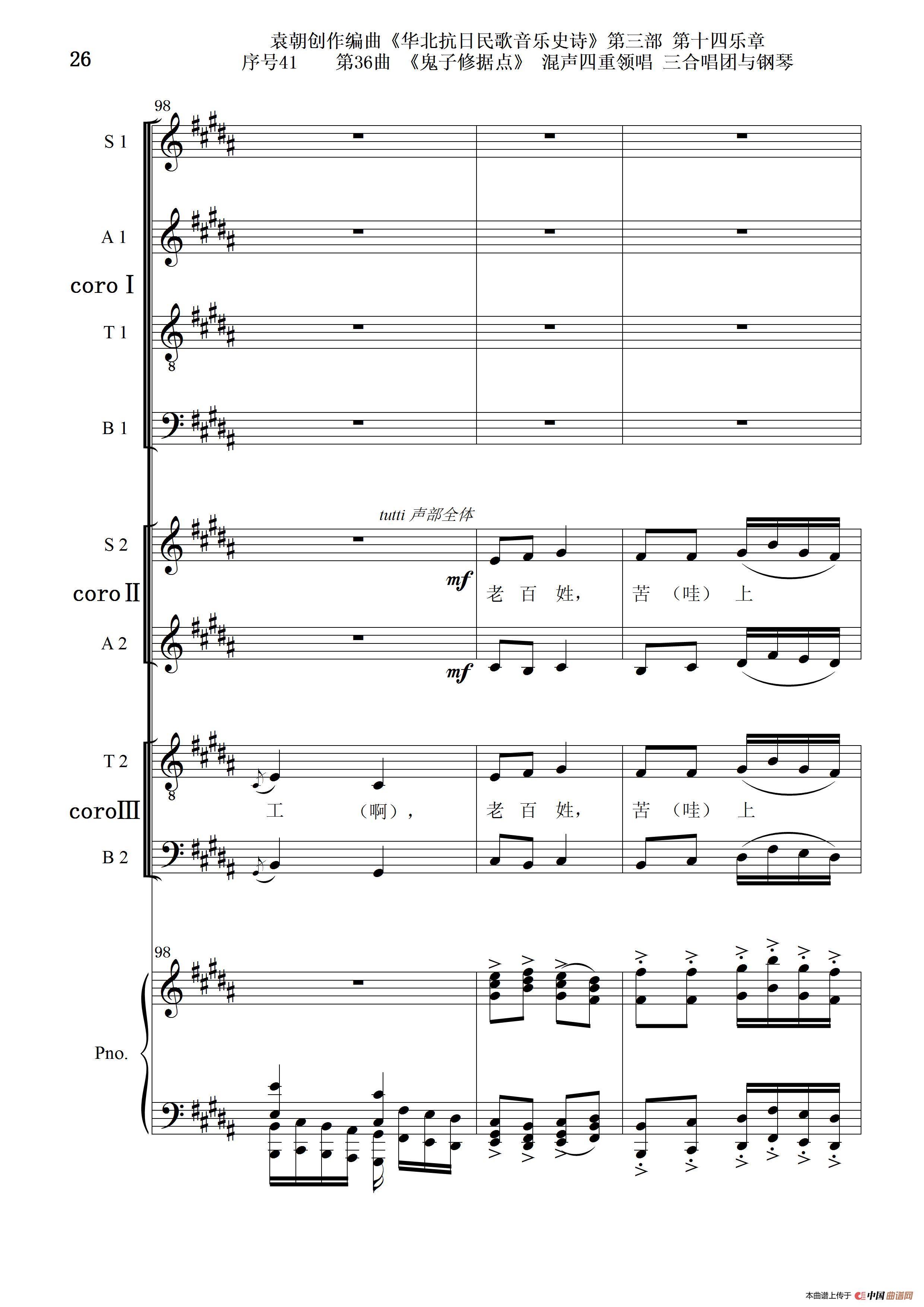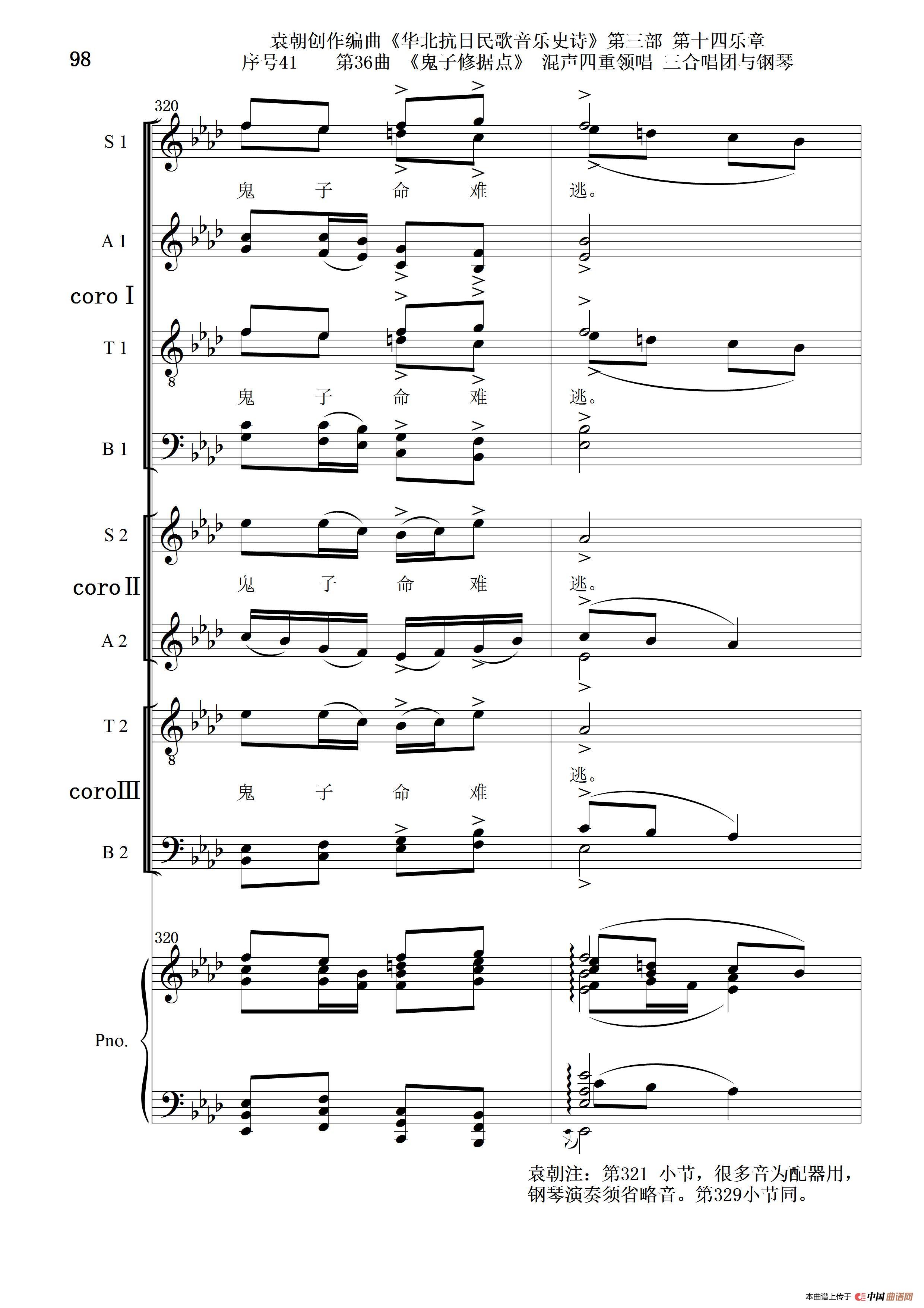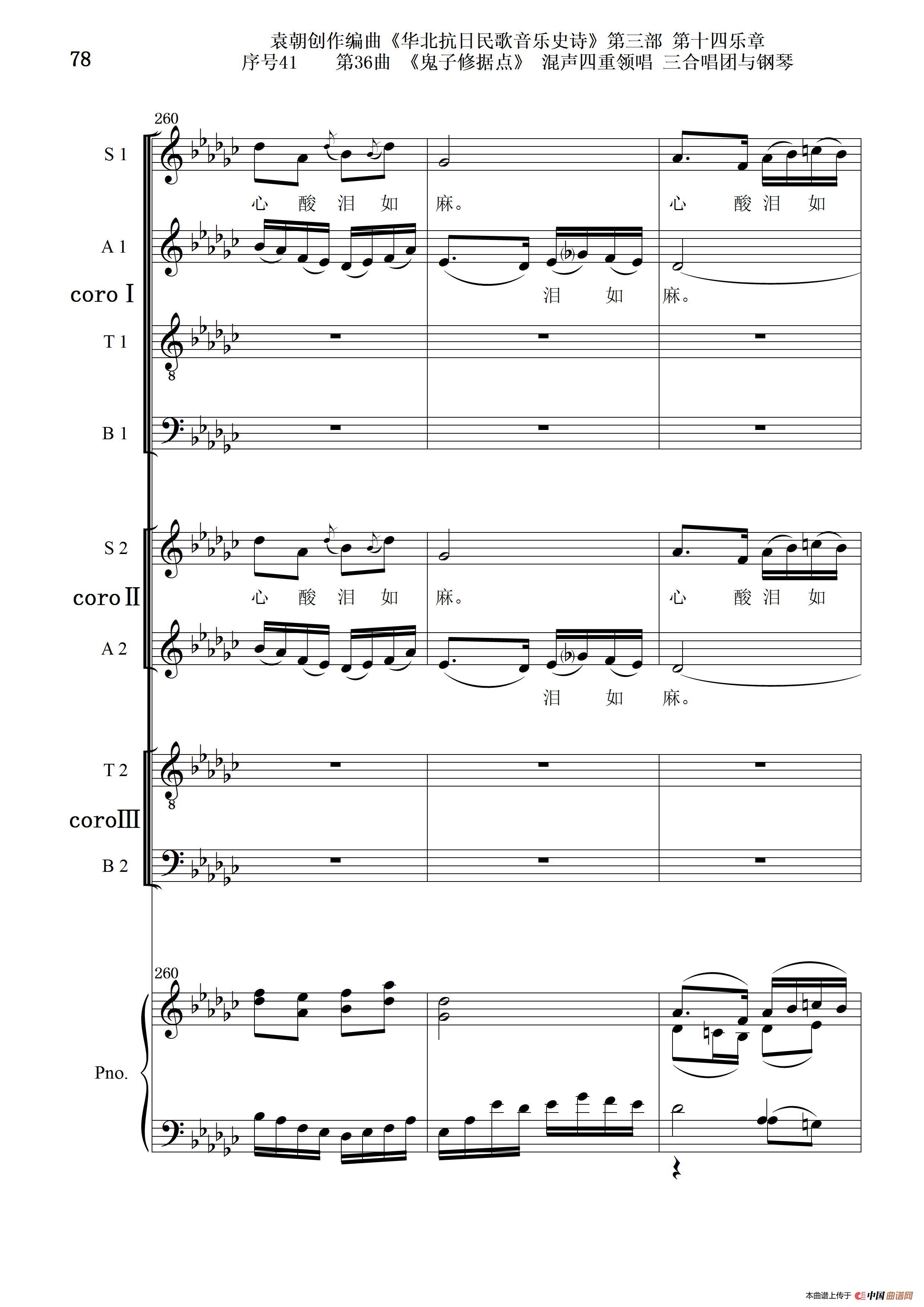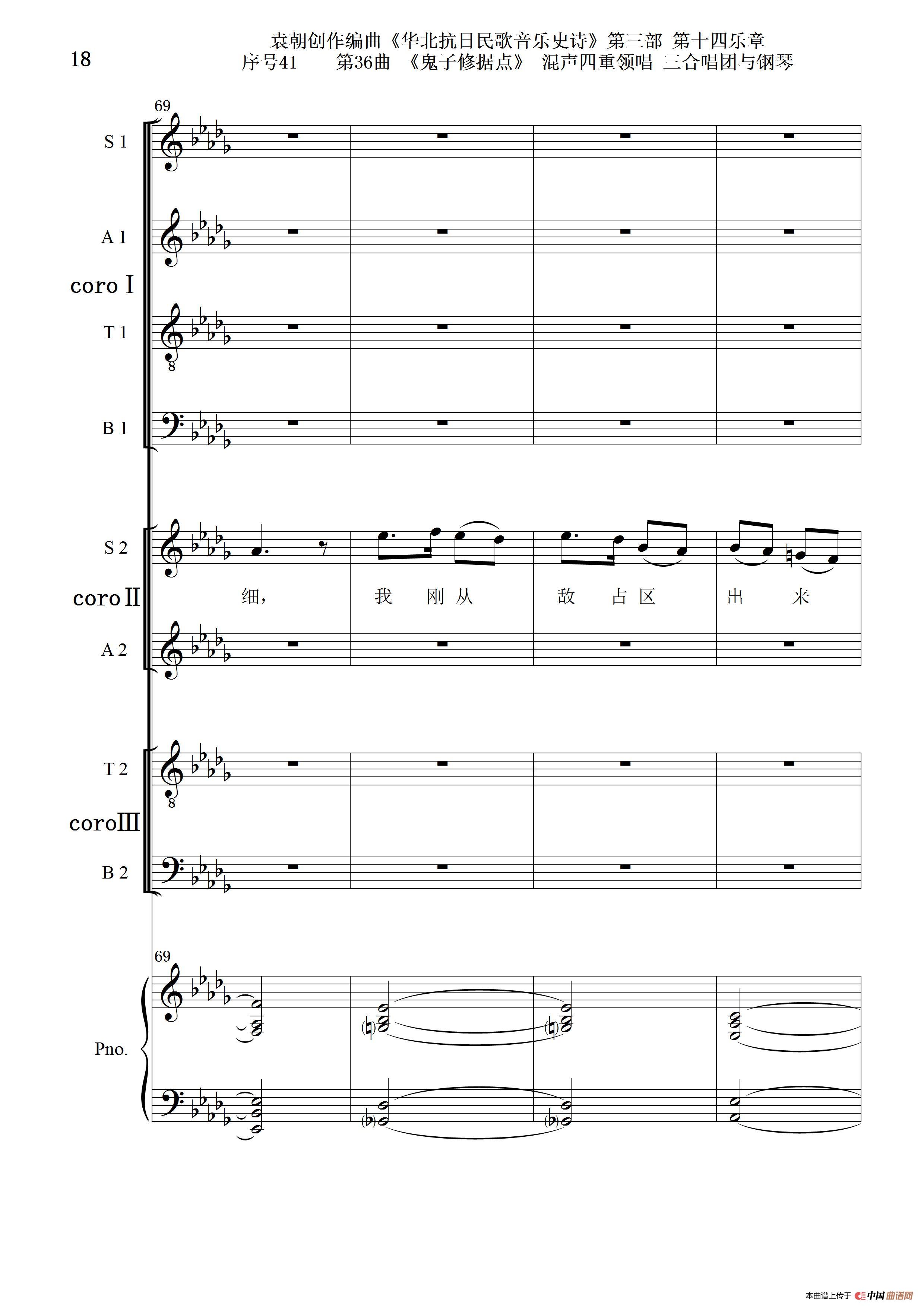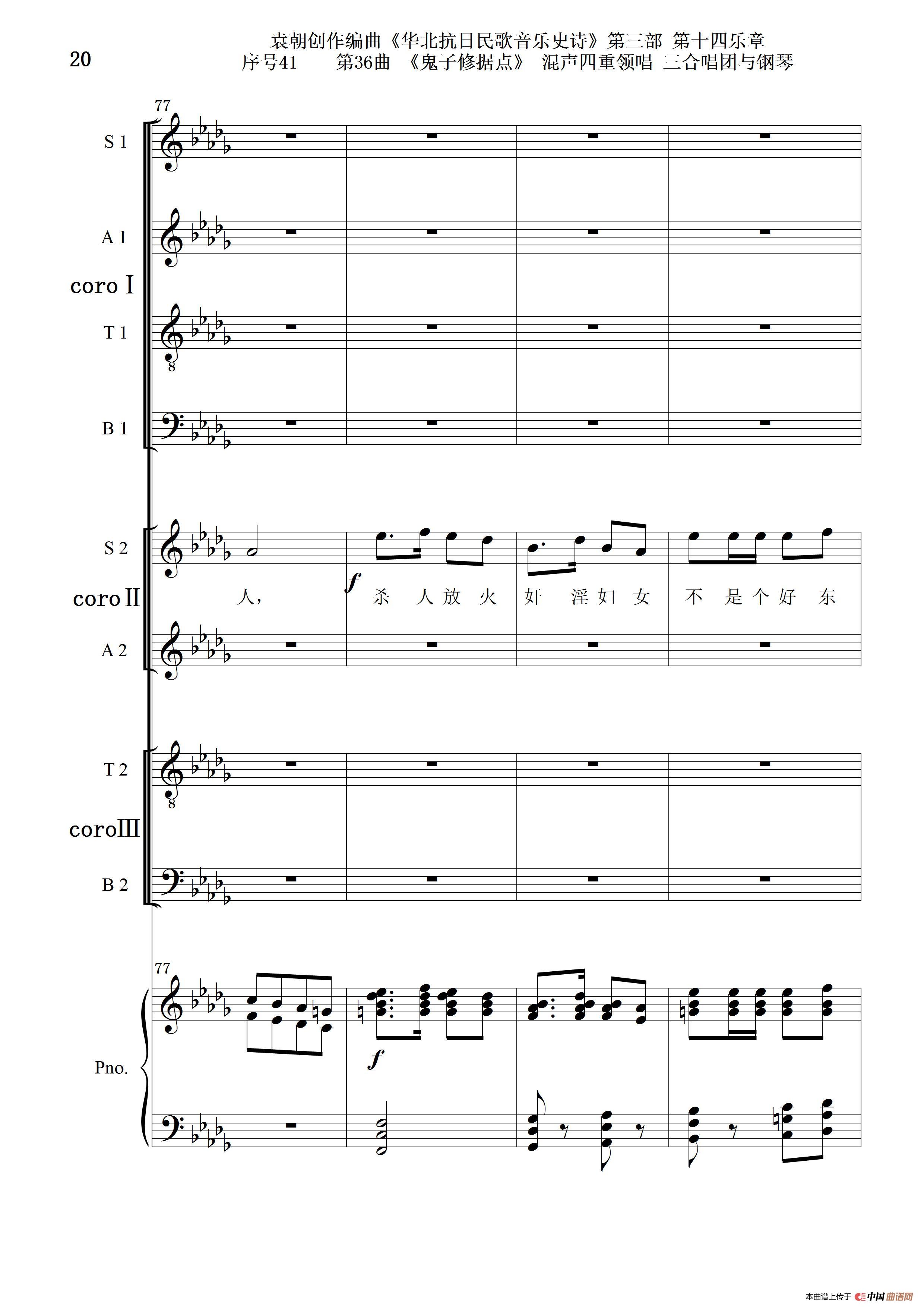关于《序号41第36曲《鬼子修据点》三合唱团与钢琴》曲谱的评论