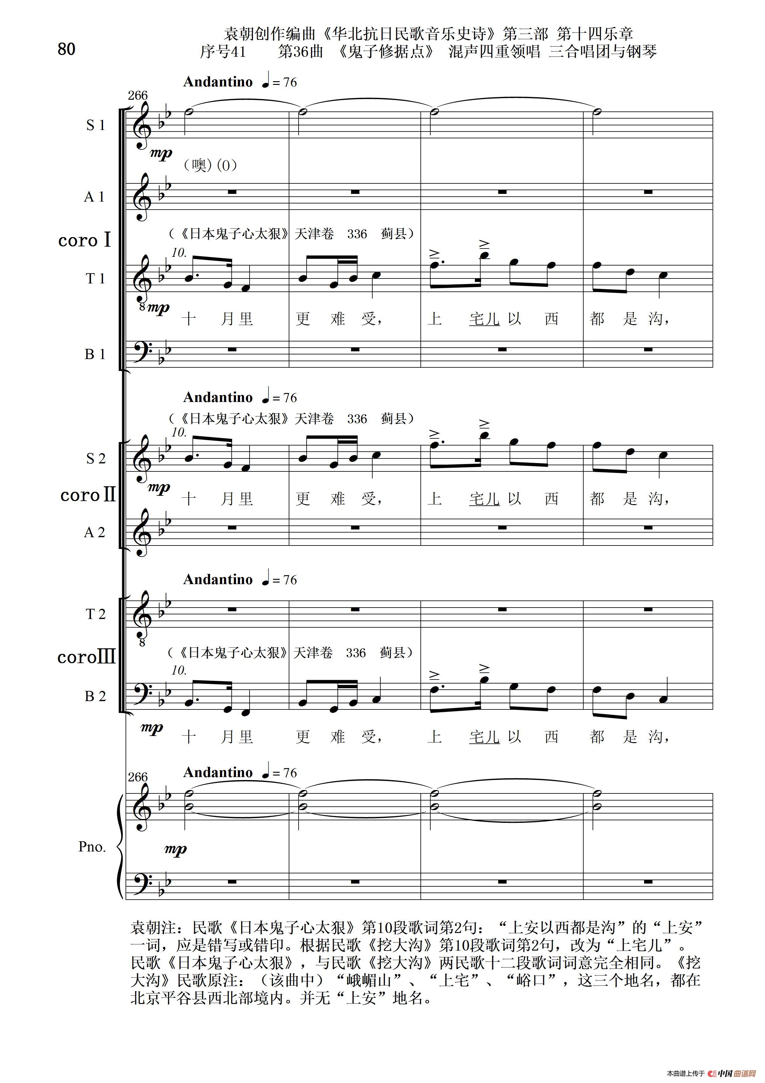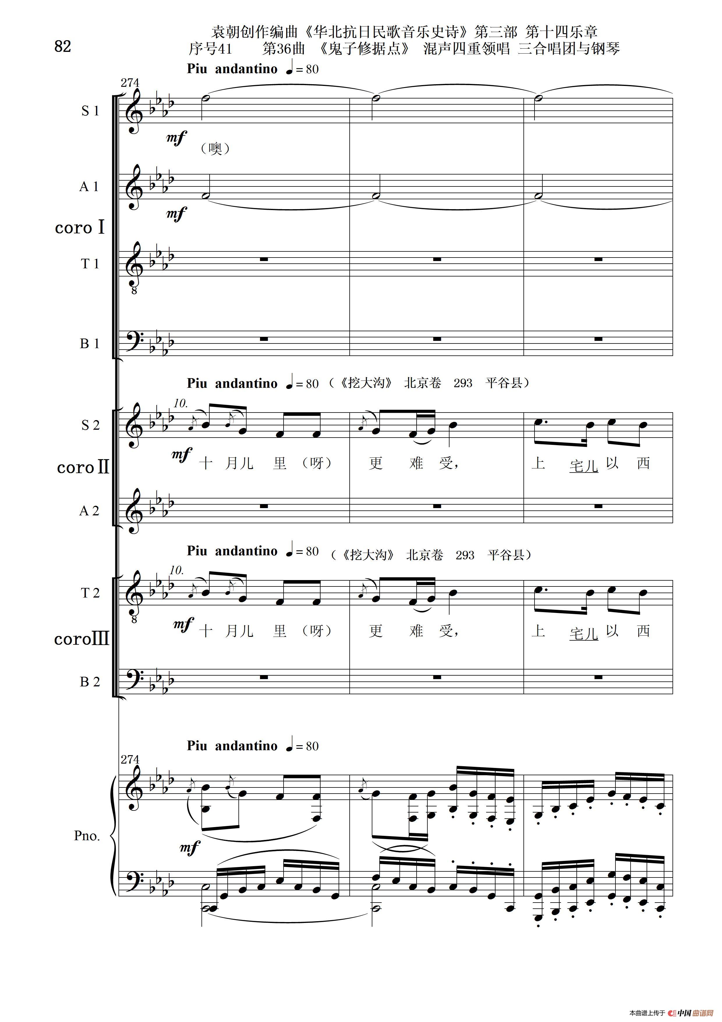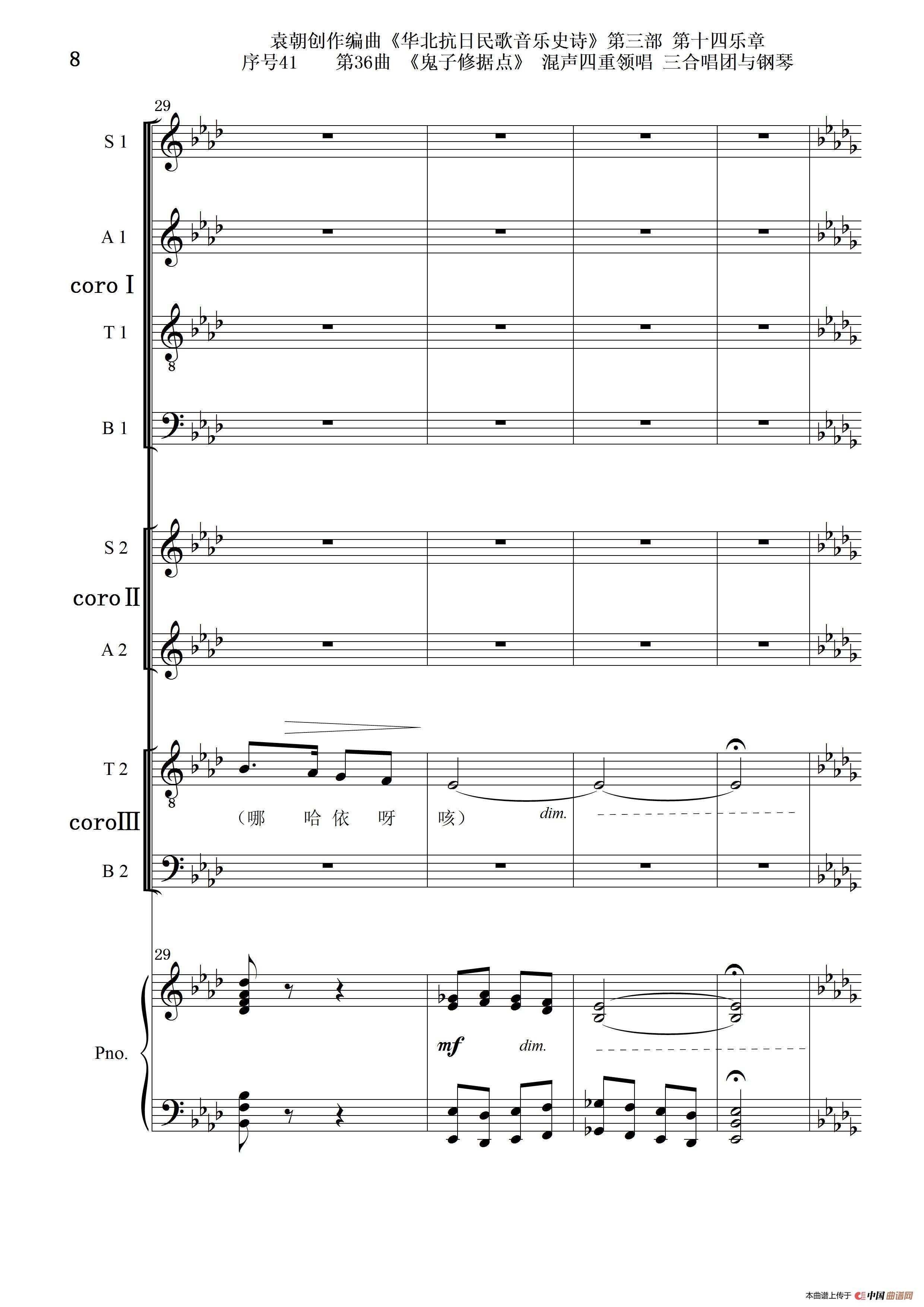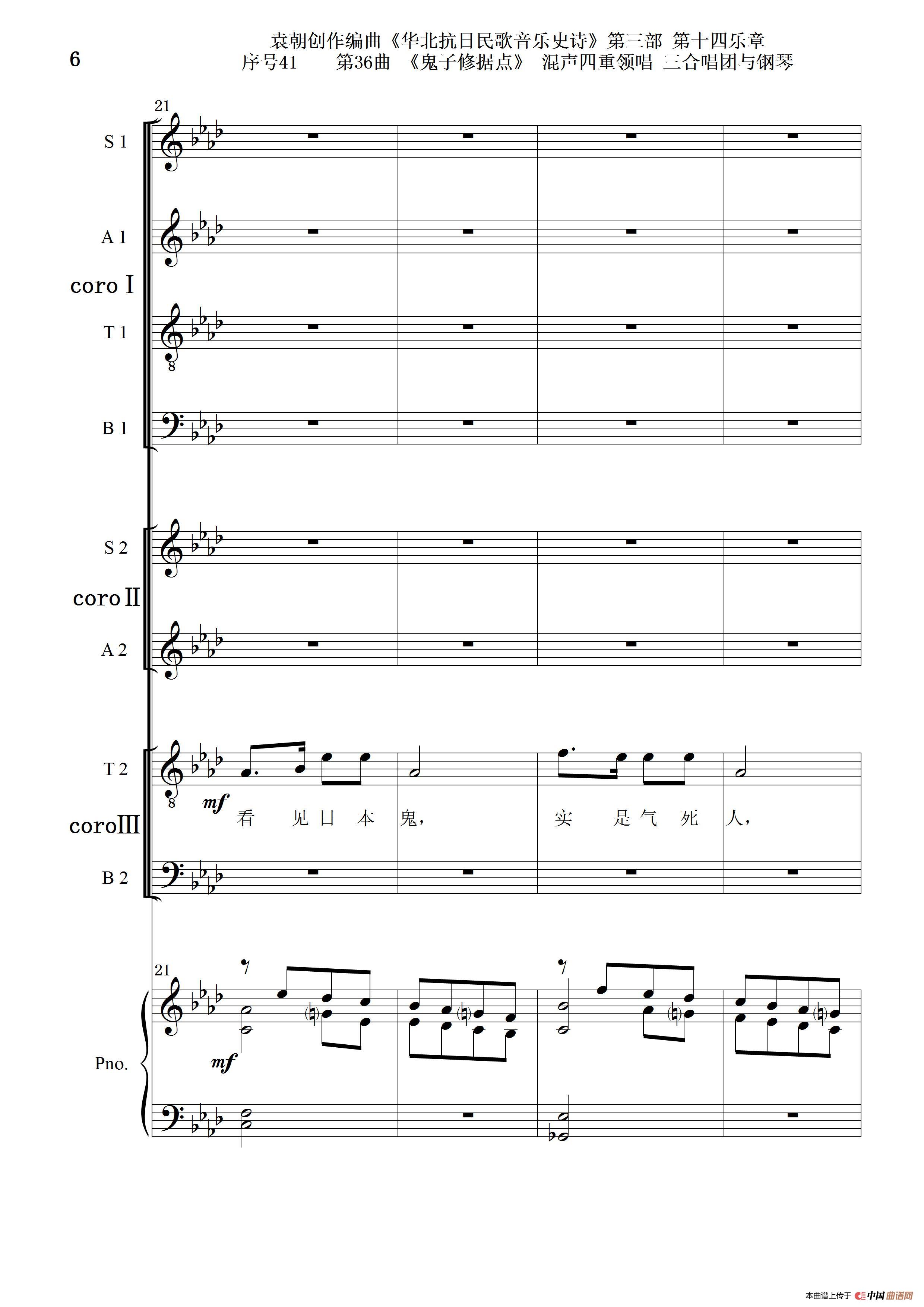 关于《序号41第36曲《鬼子修据点》三合唱团与钢琴》曲谱的评论