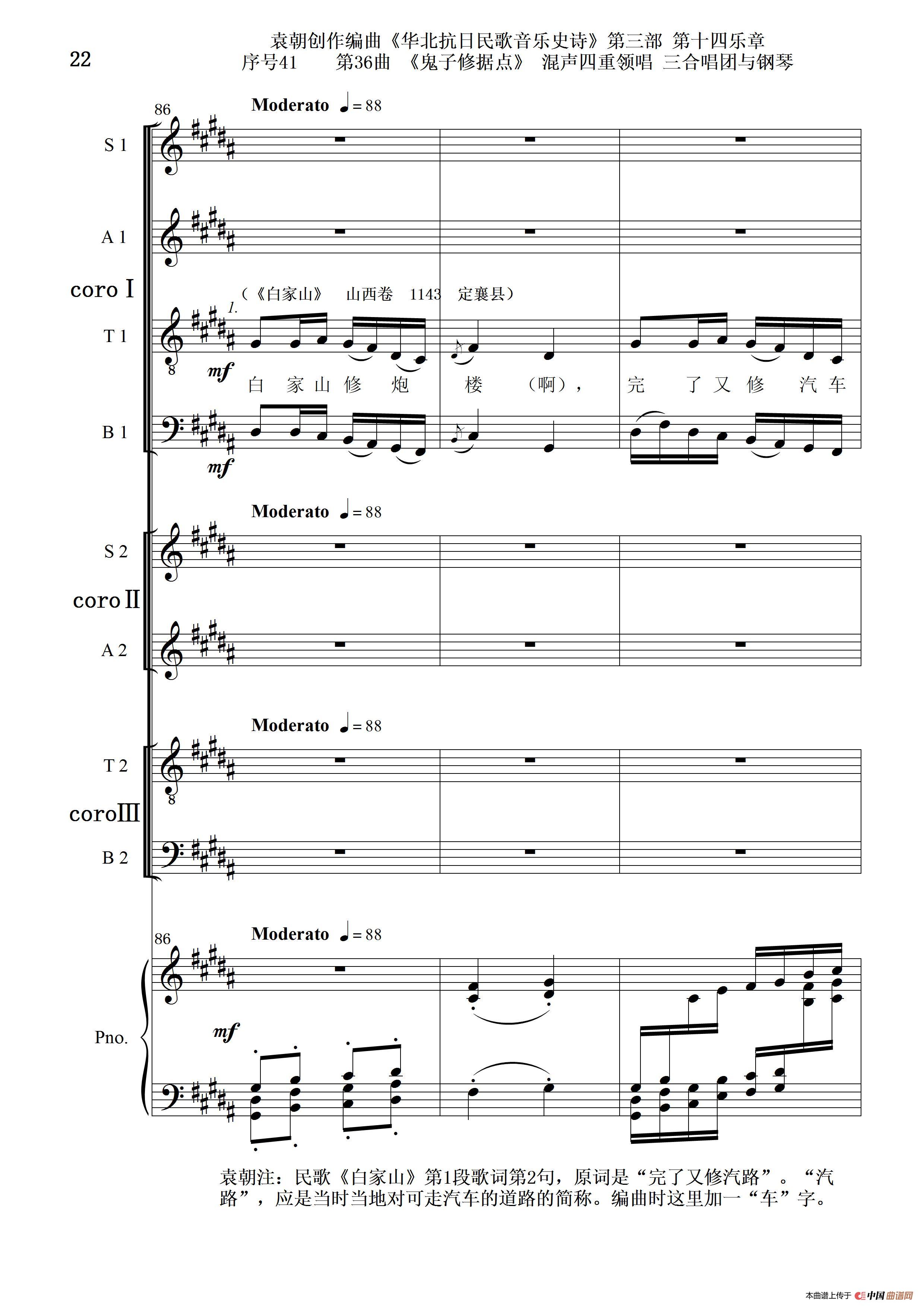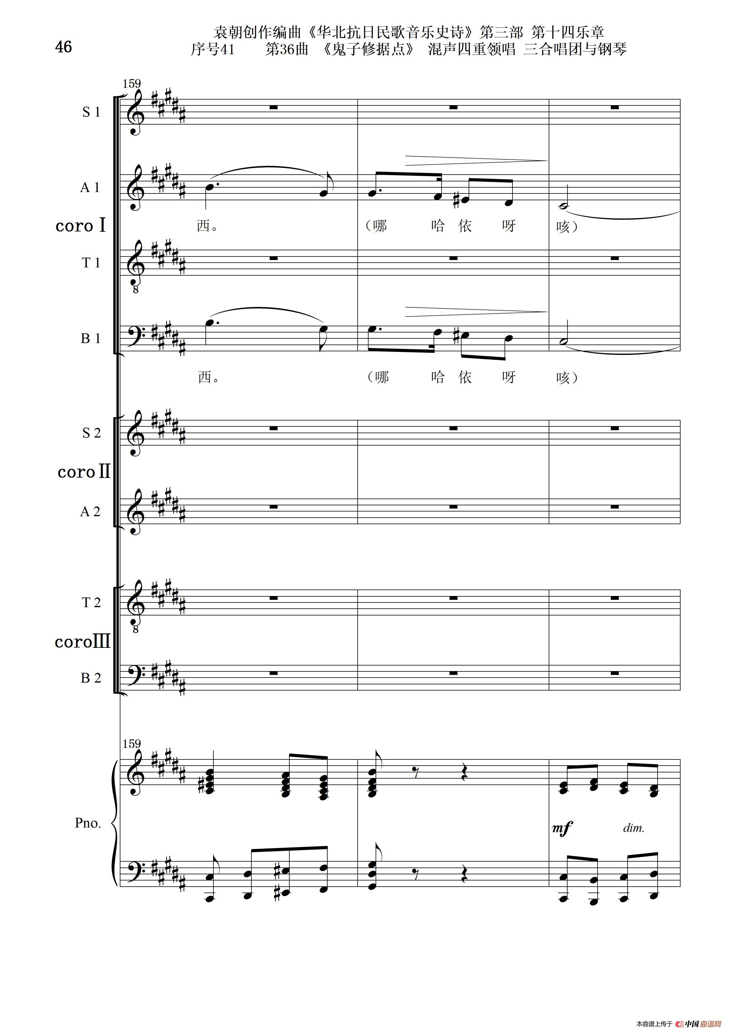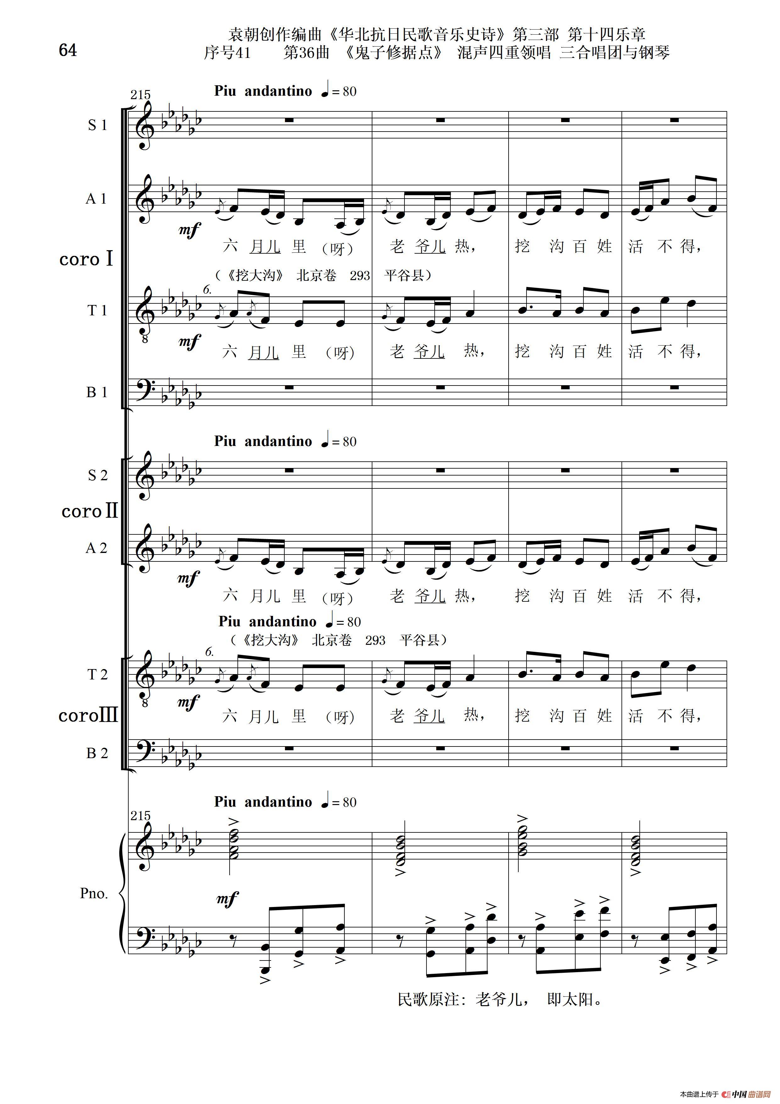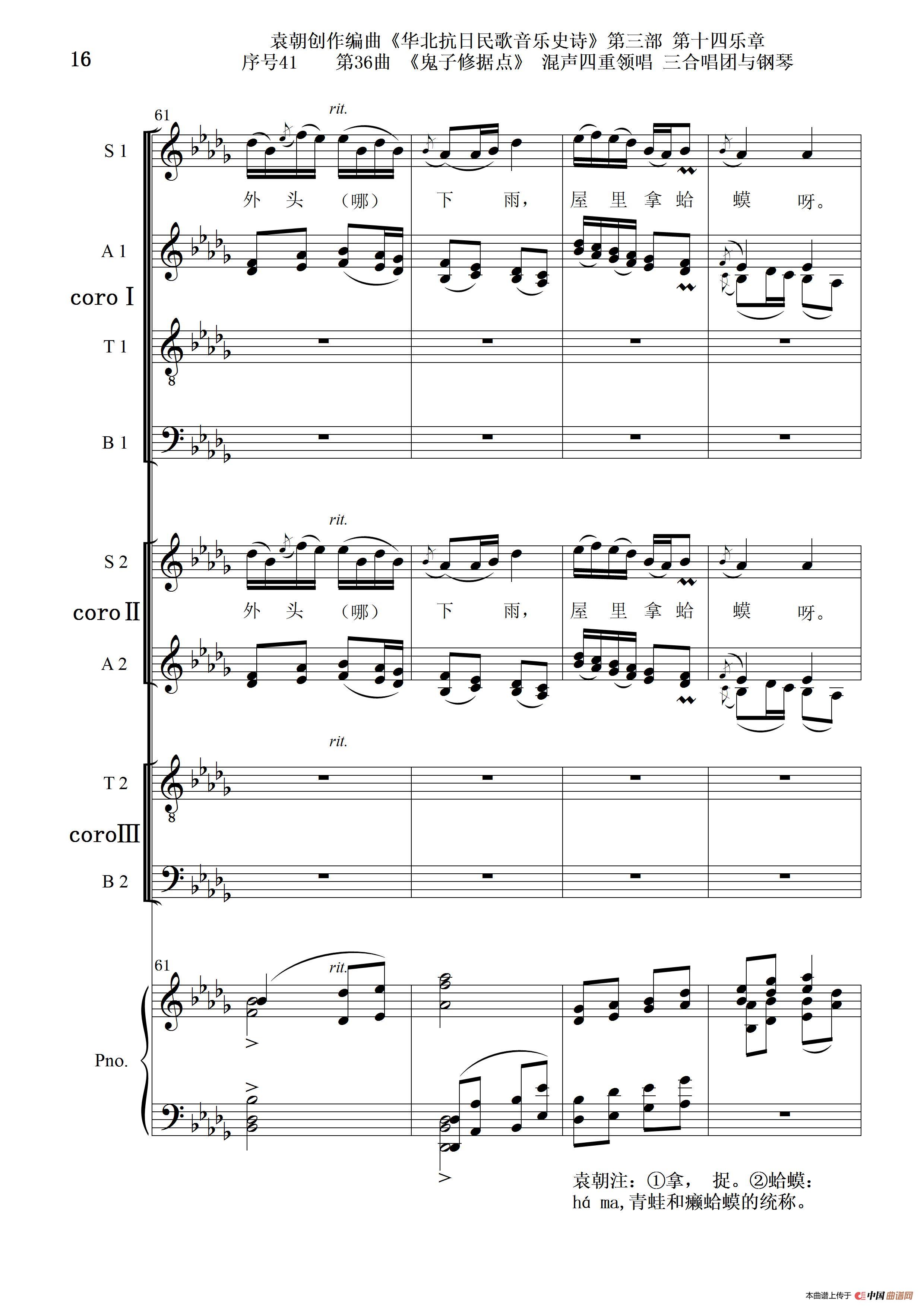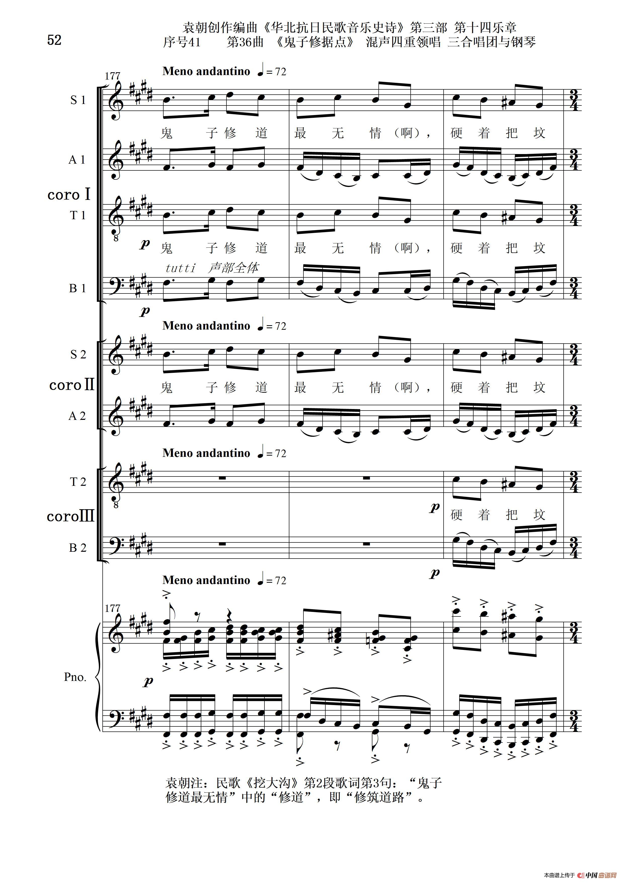 关于《序号41第36曲《鬼子修据点》三合唱团与钢琴》曲谱的评论