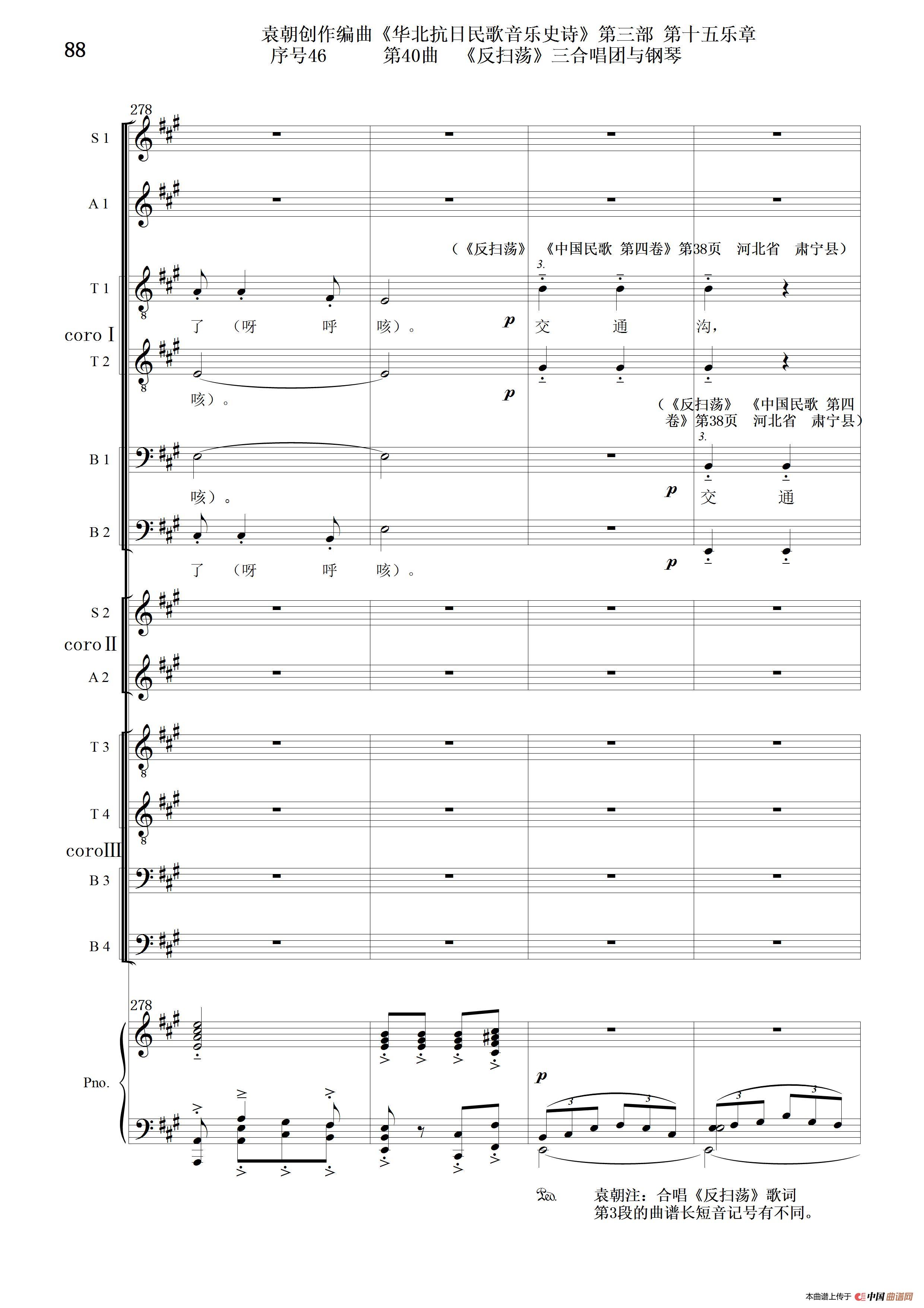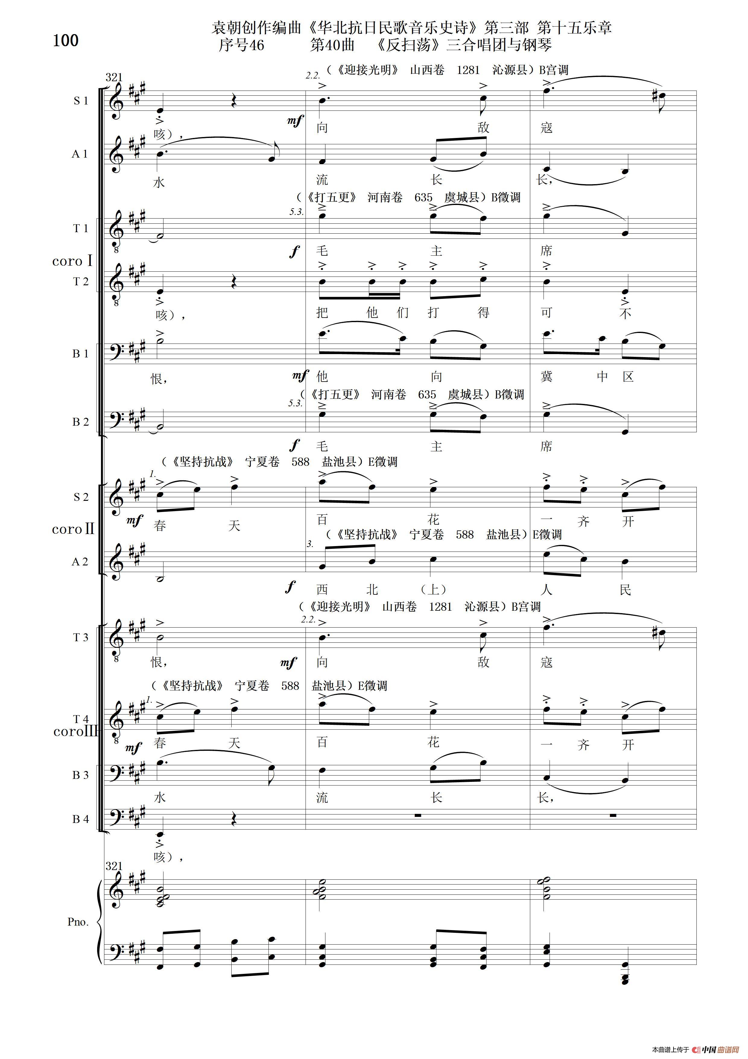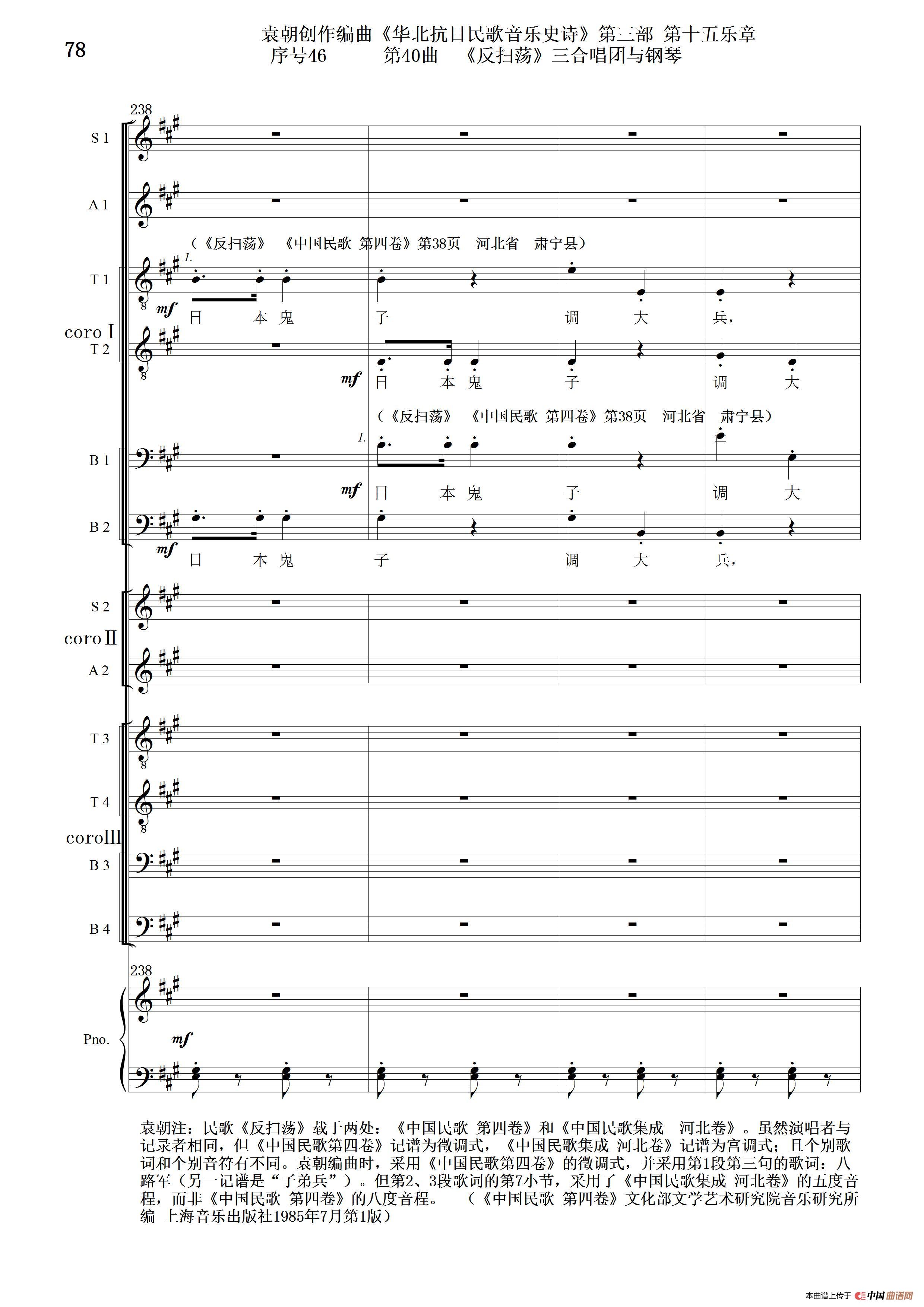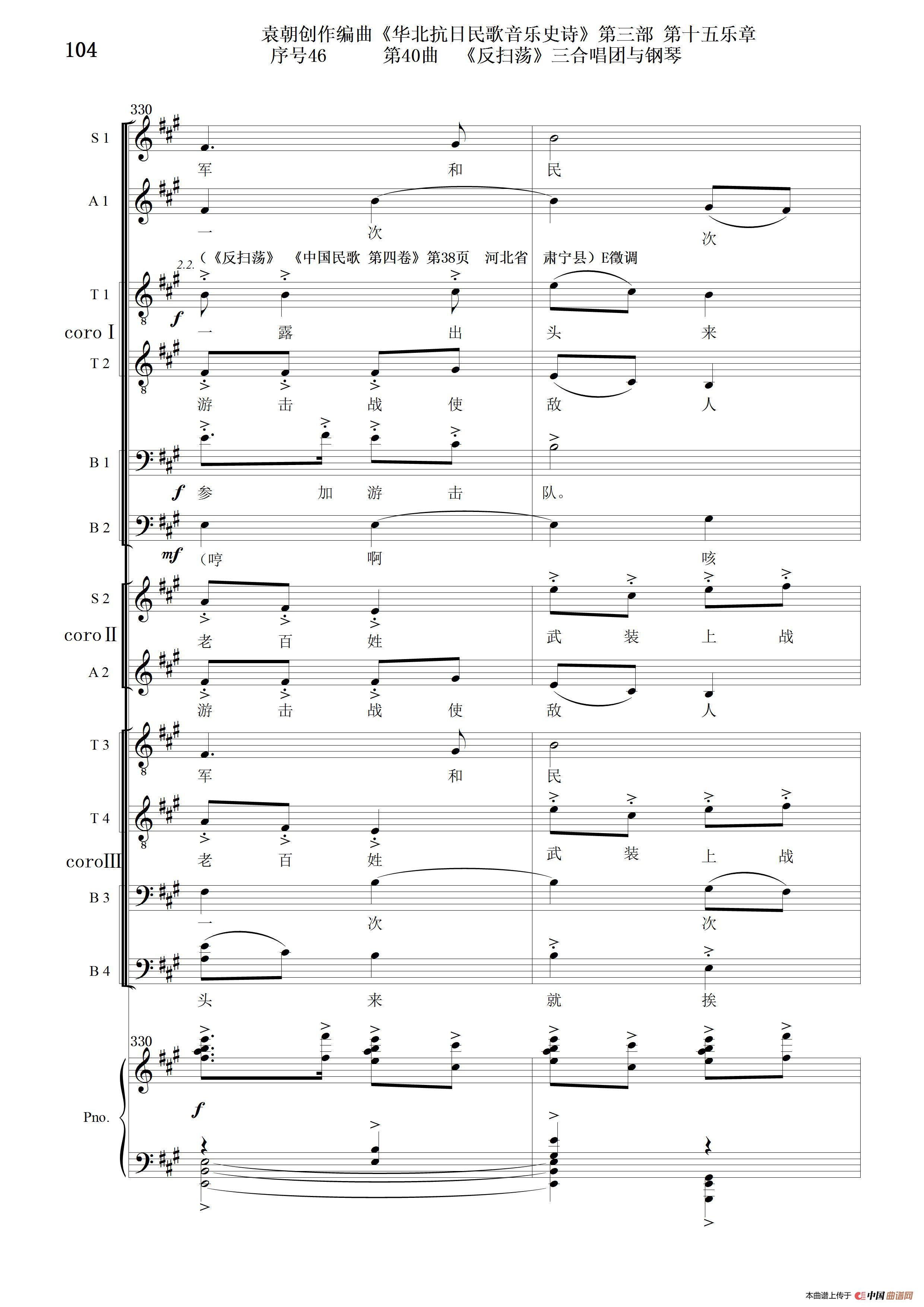关于《序号46第40曲《反扫荡》三合唱团与钢琴》曲谱的评论