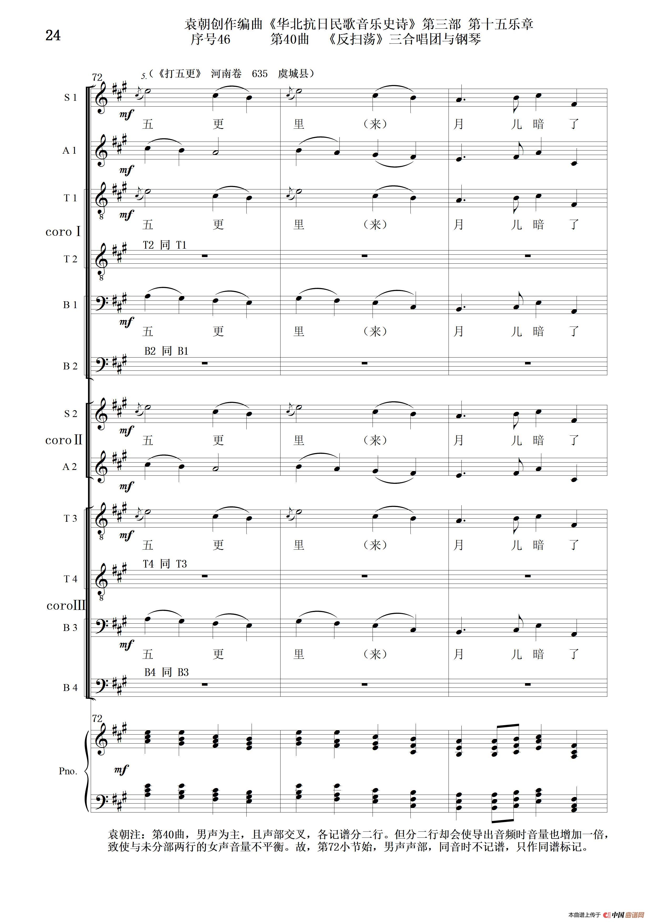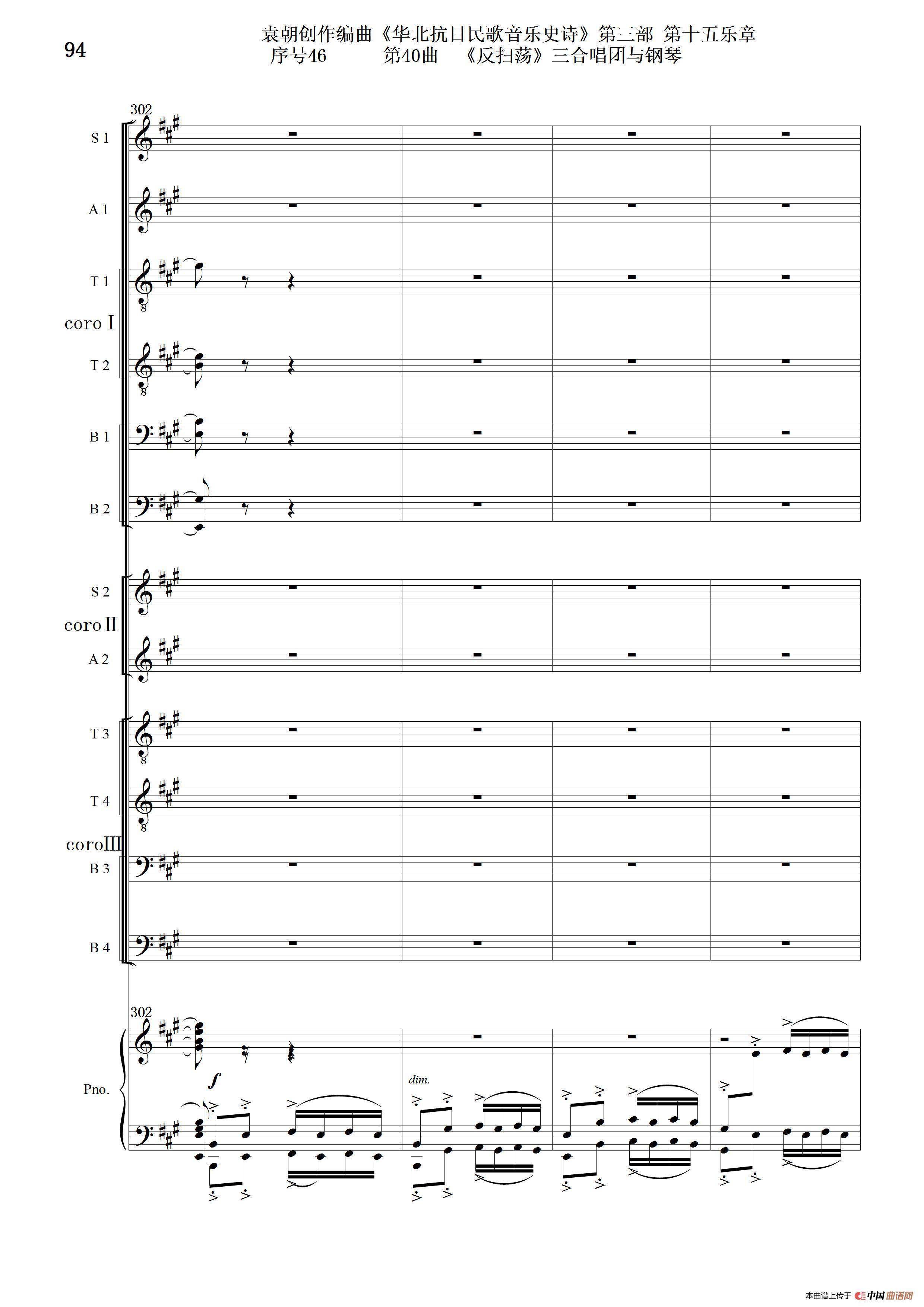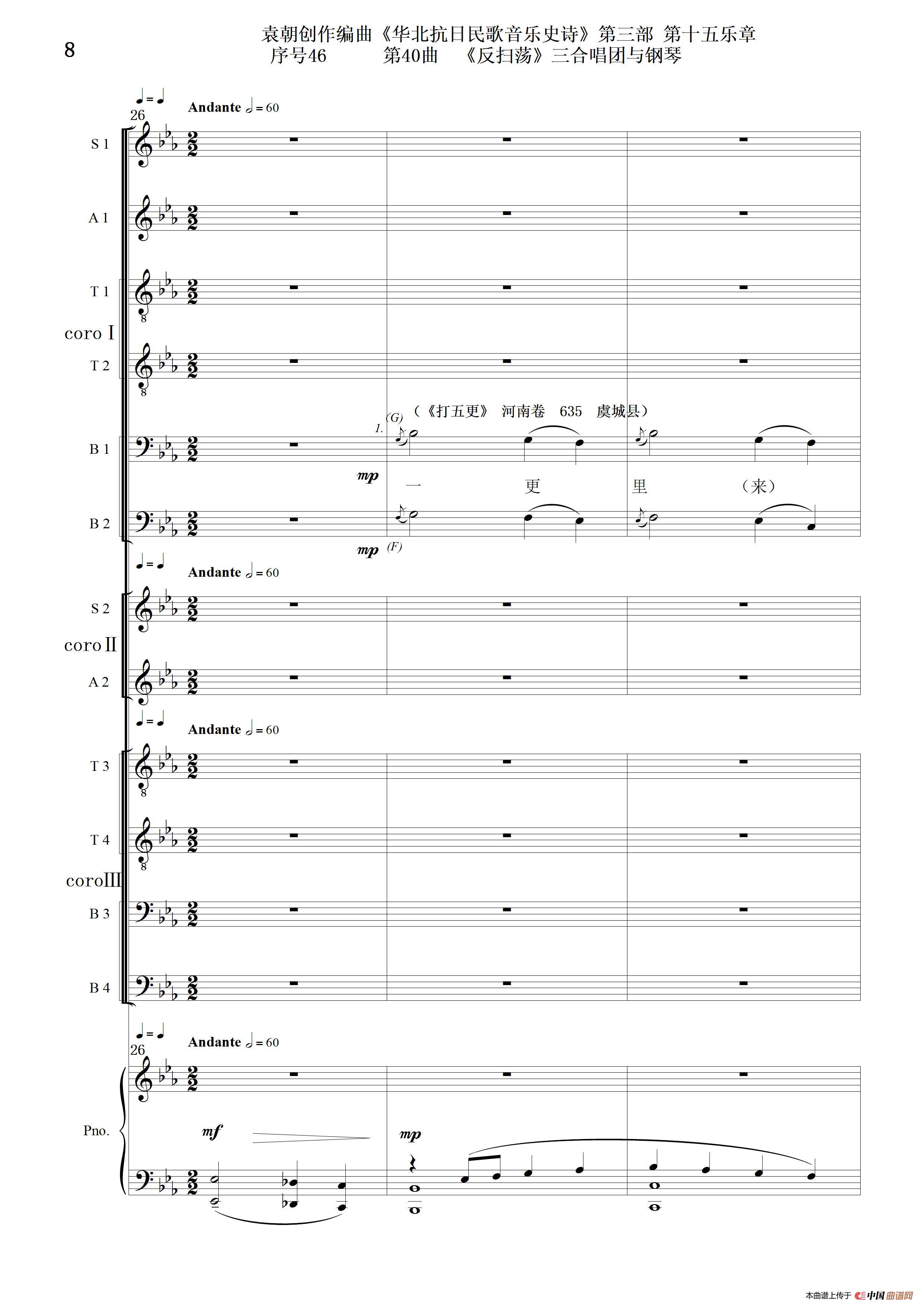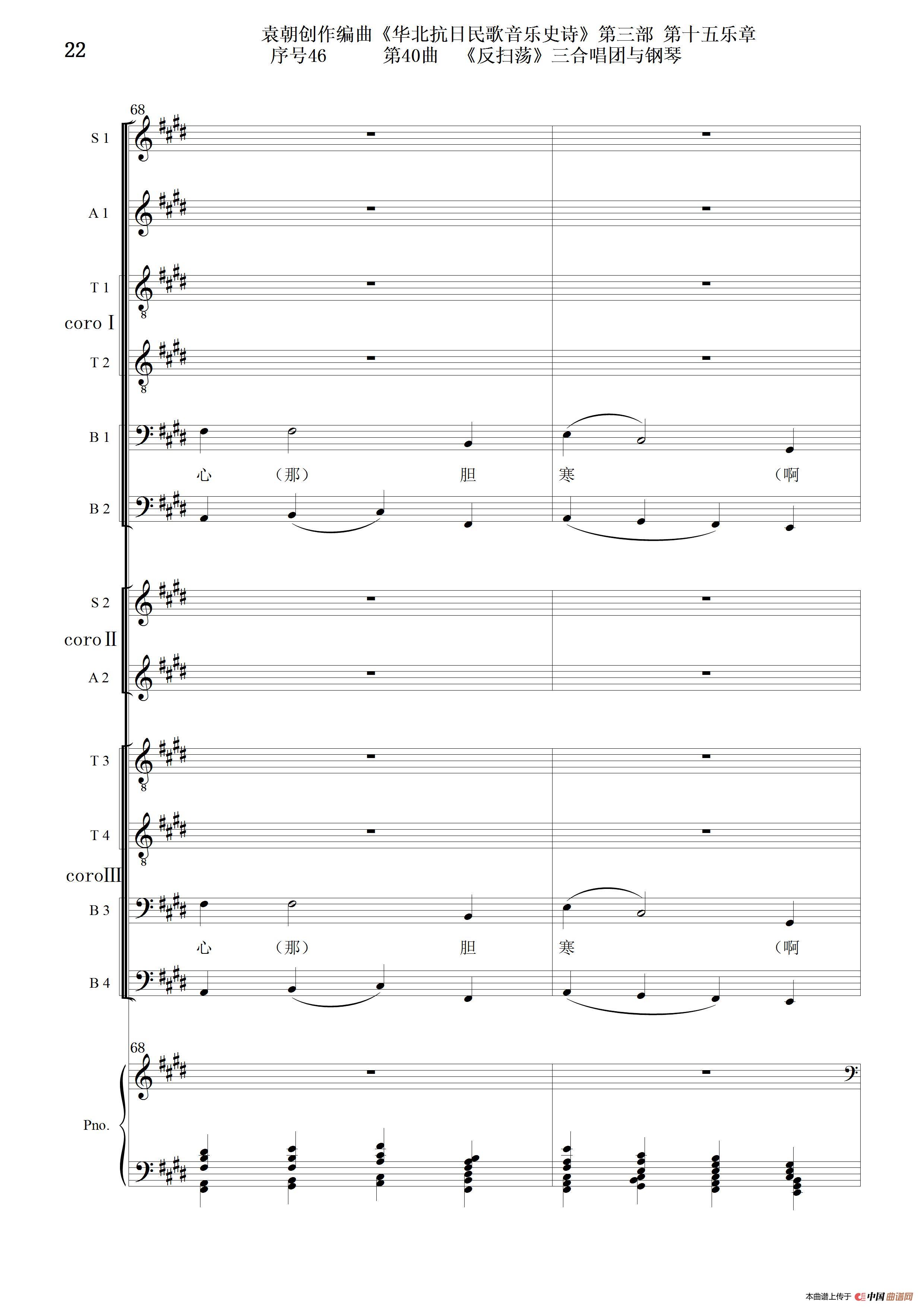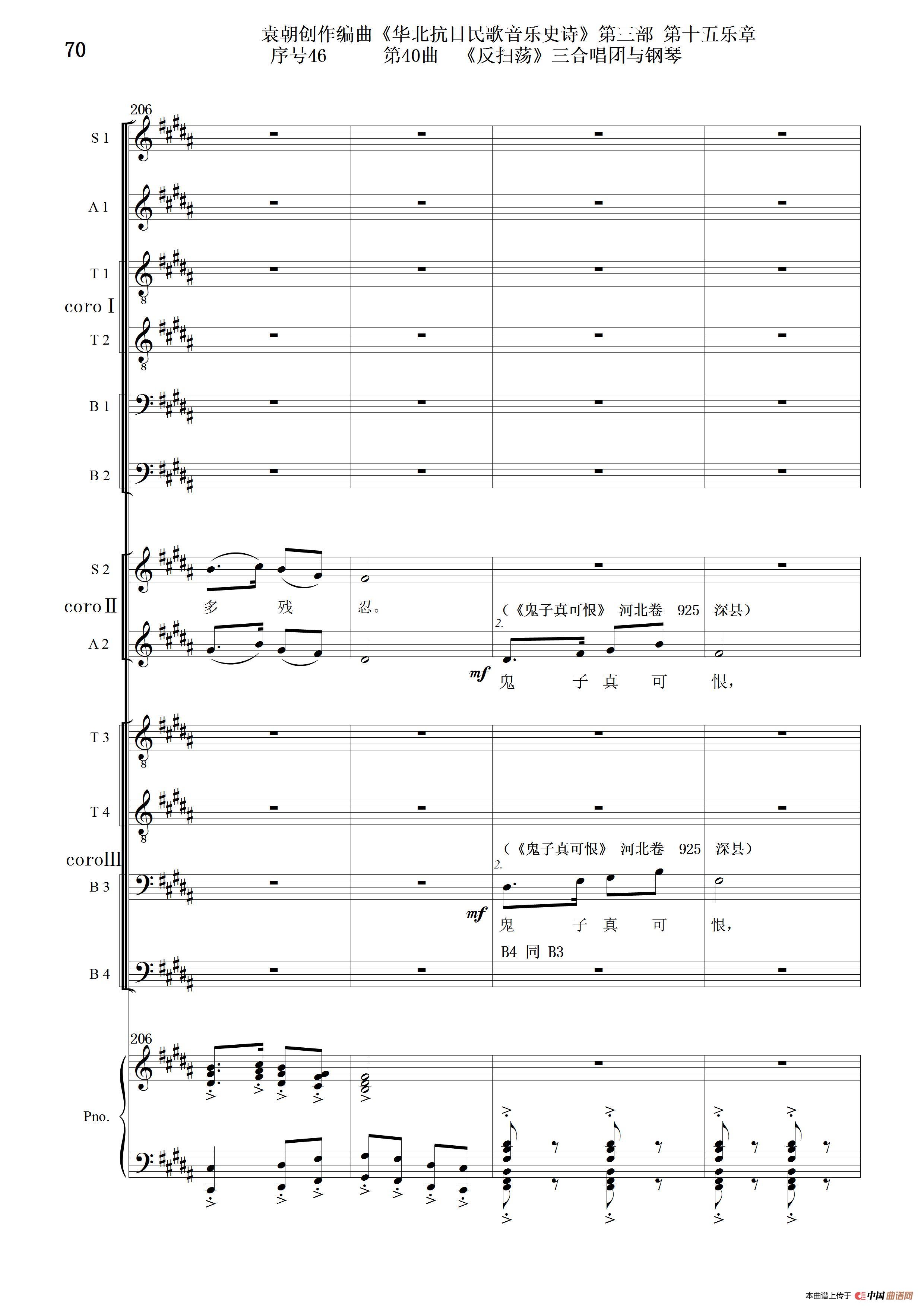 关于《序号46第40曲《反扫荡》三合唱团与钢琴》曲谱的评论