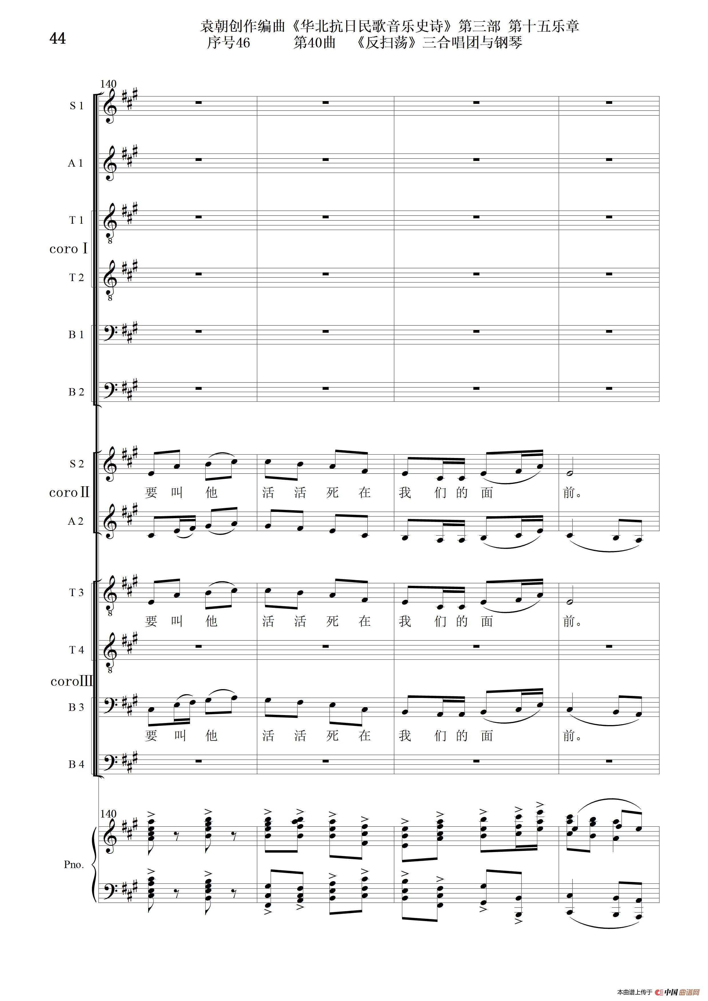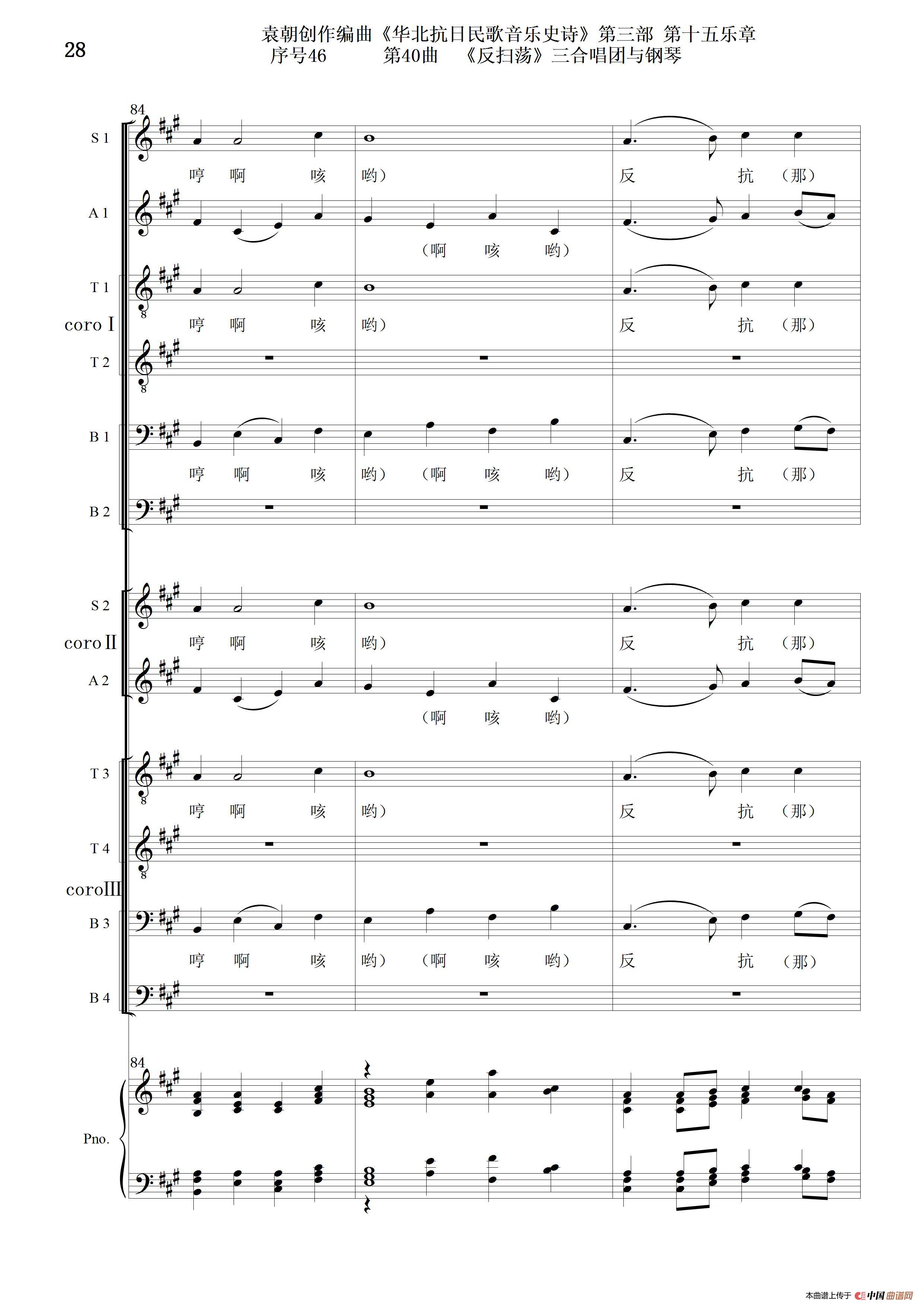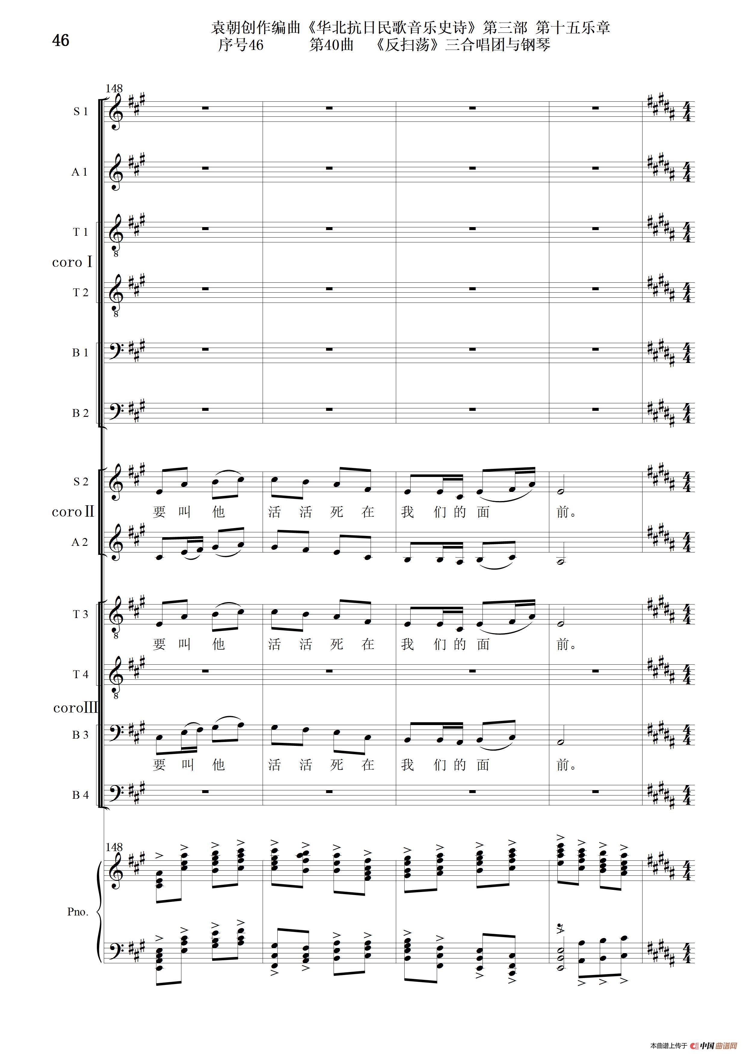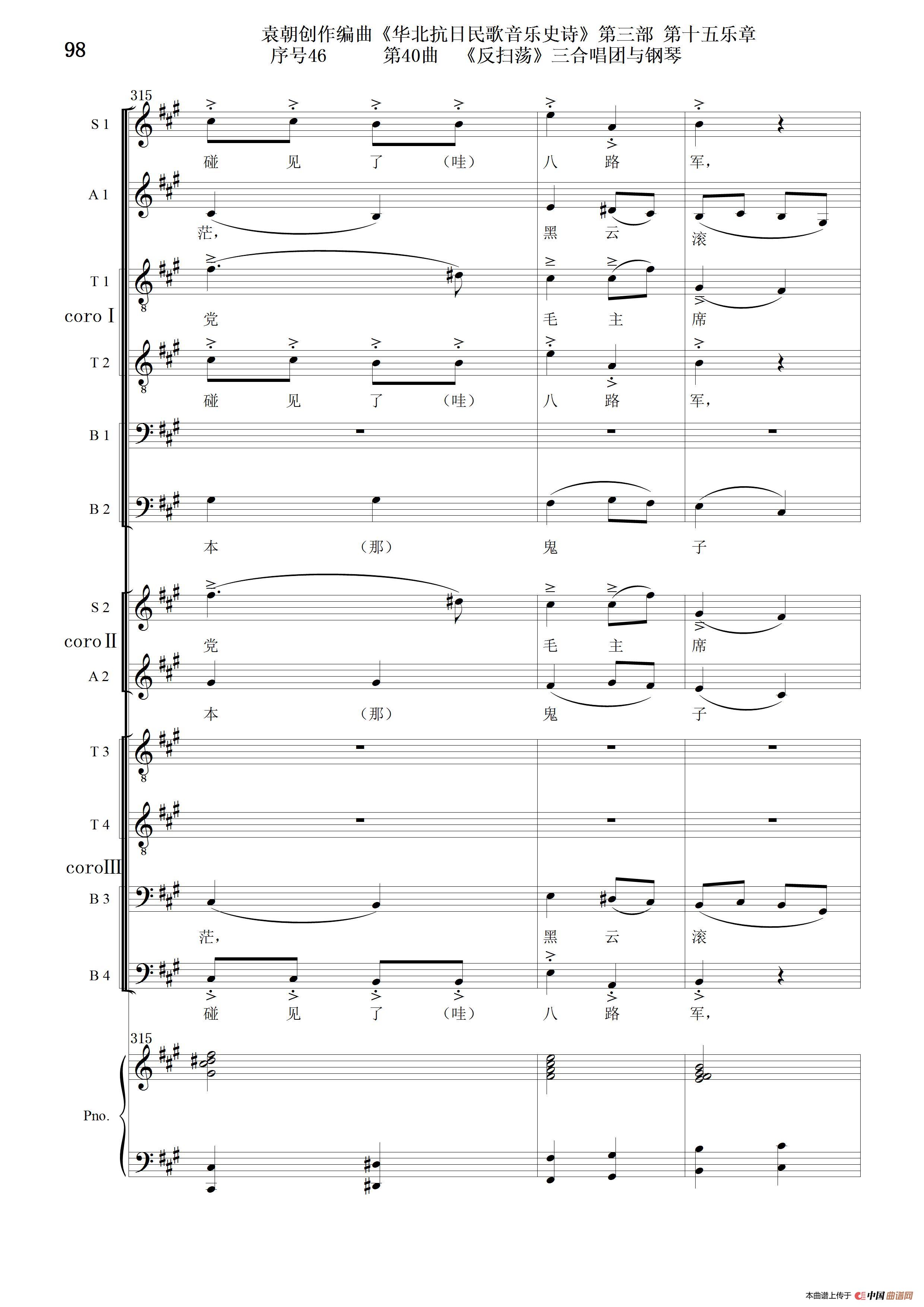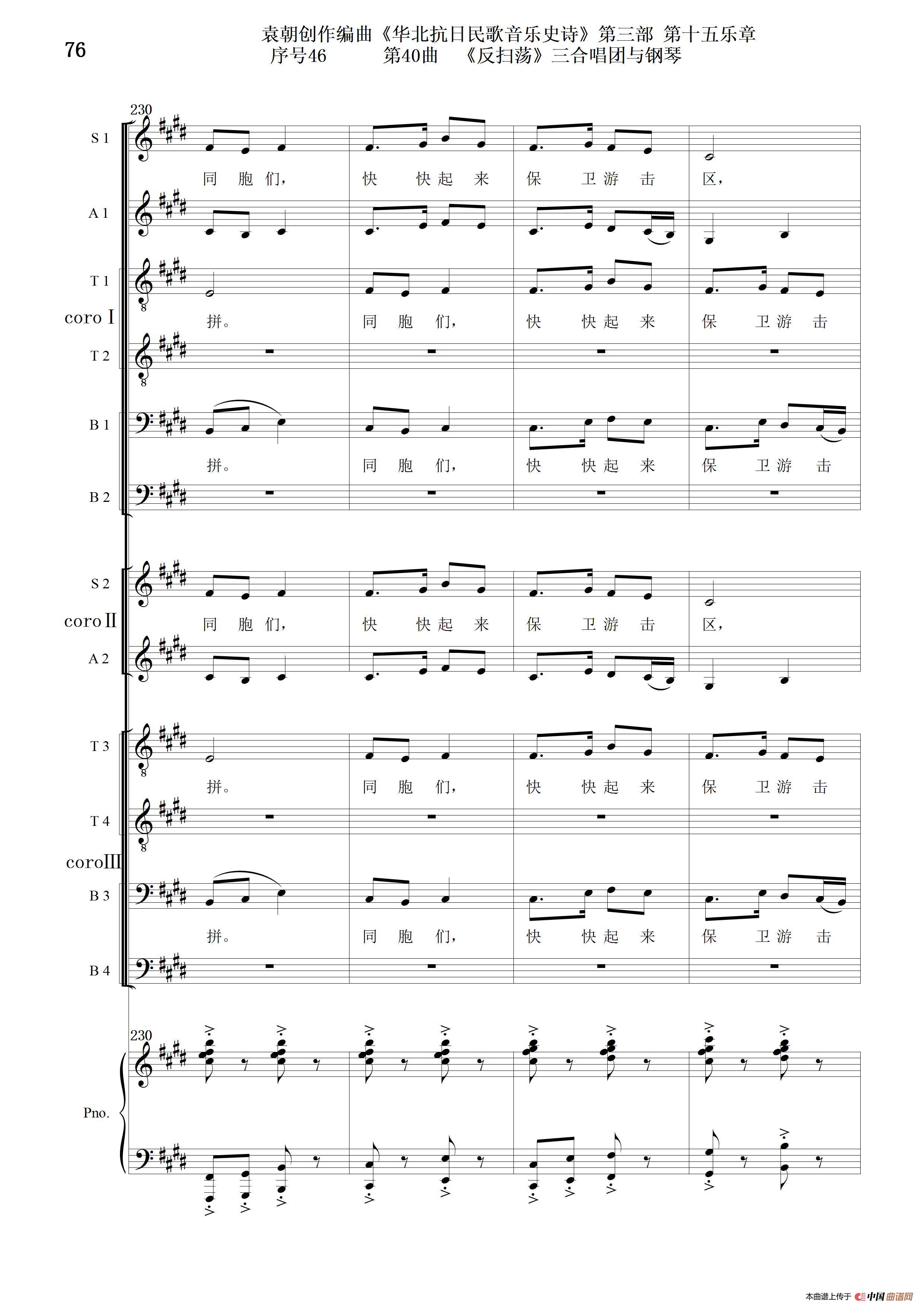 序号46第40曲《反扫荡》三合唱团与钢琴