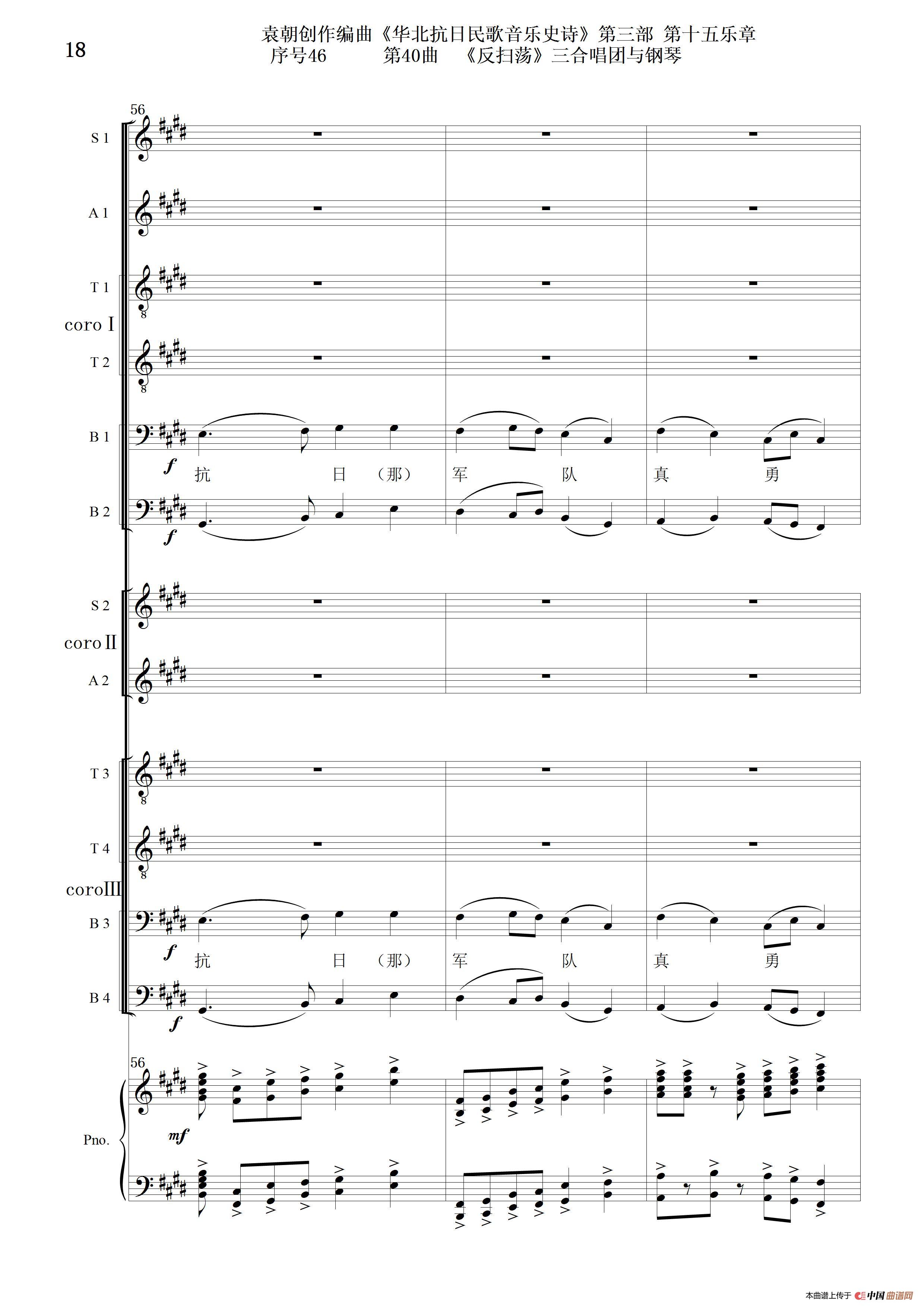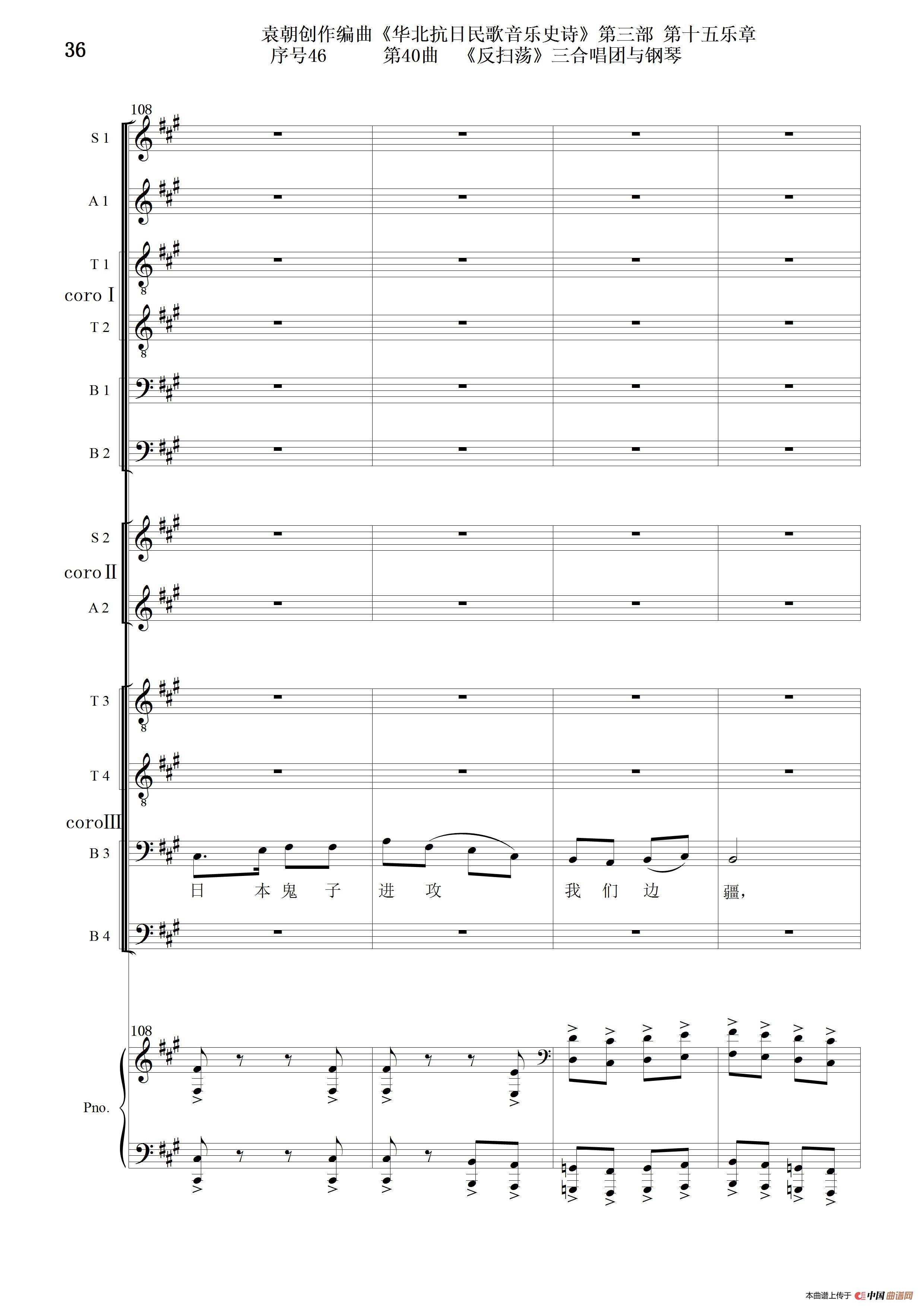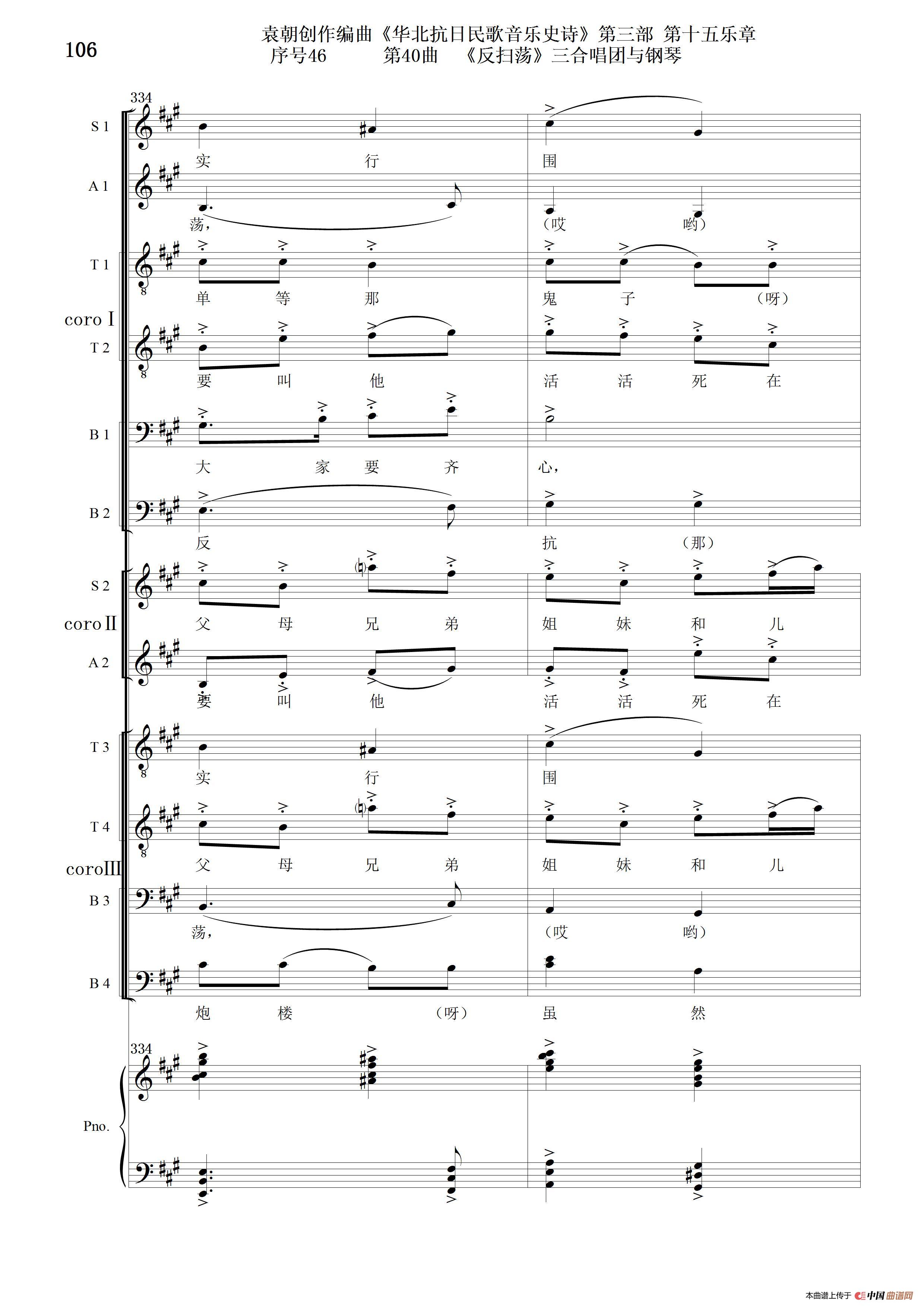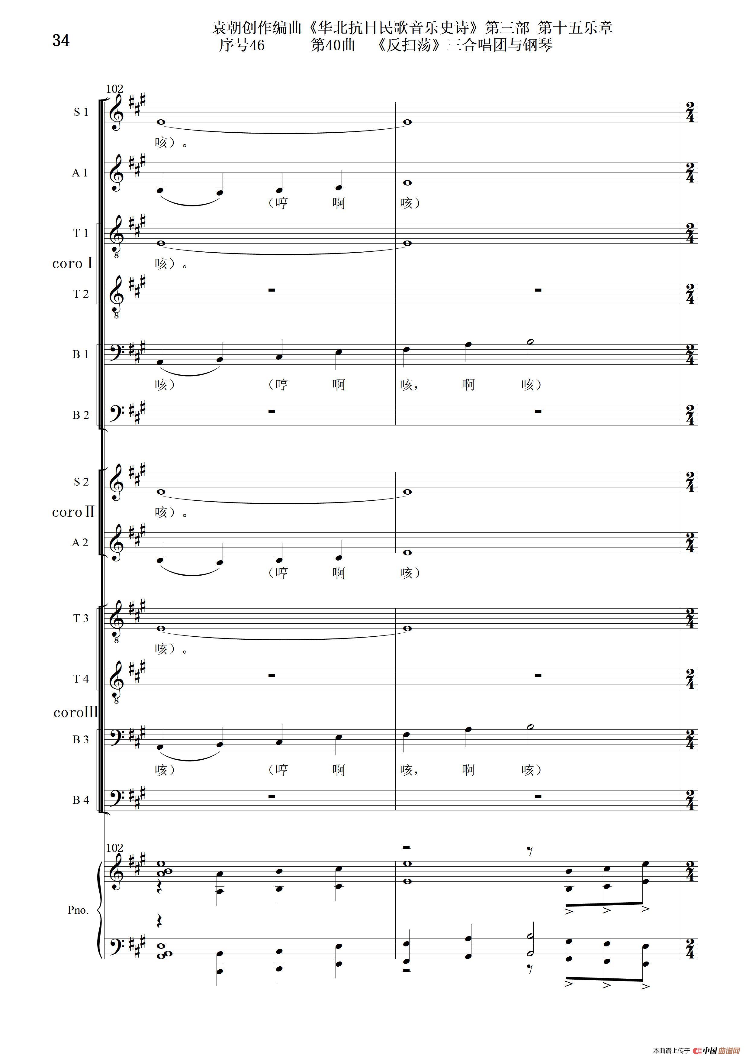 序号46第40曲《反扫荡》三合唱团与钢琴