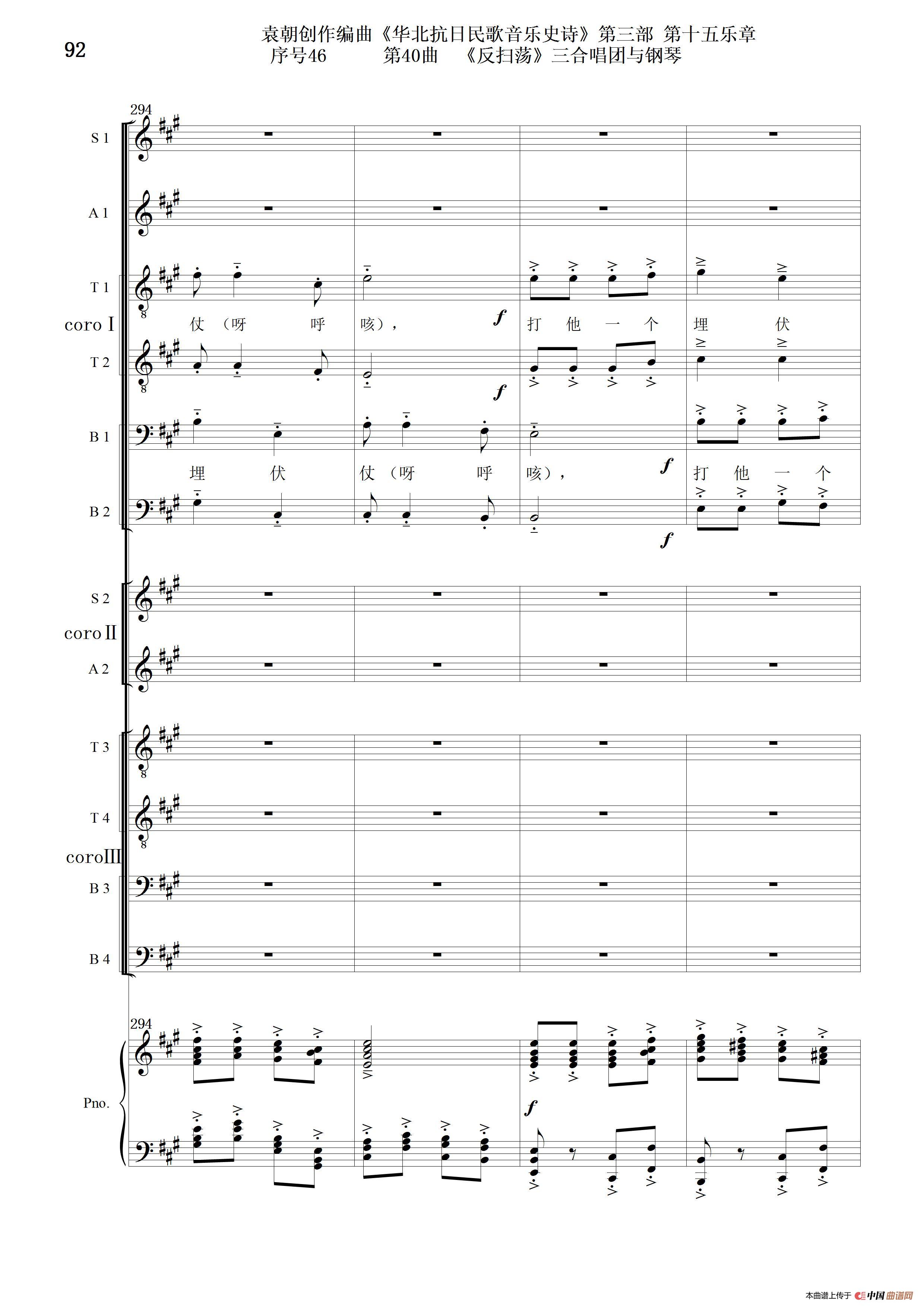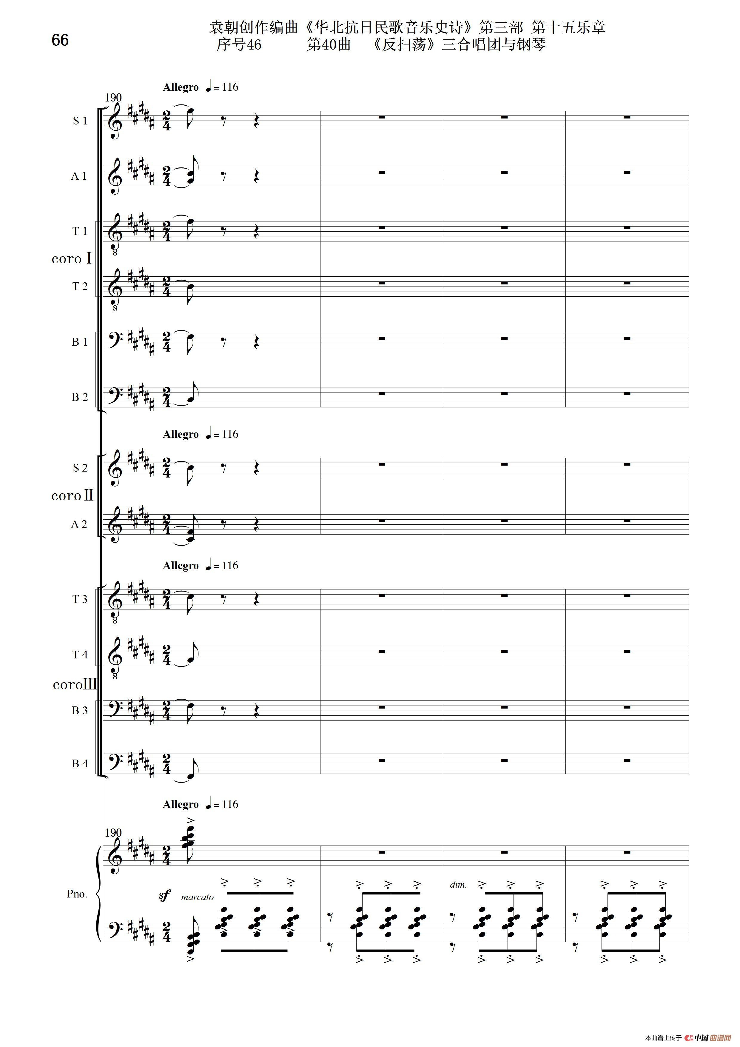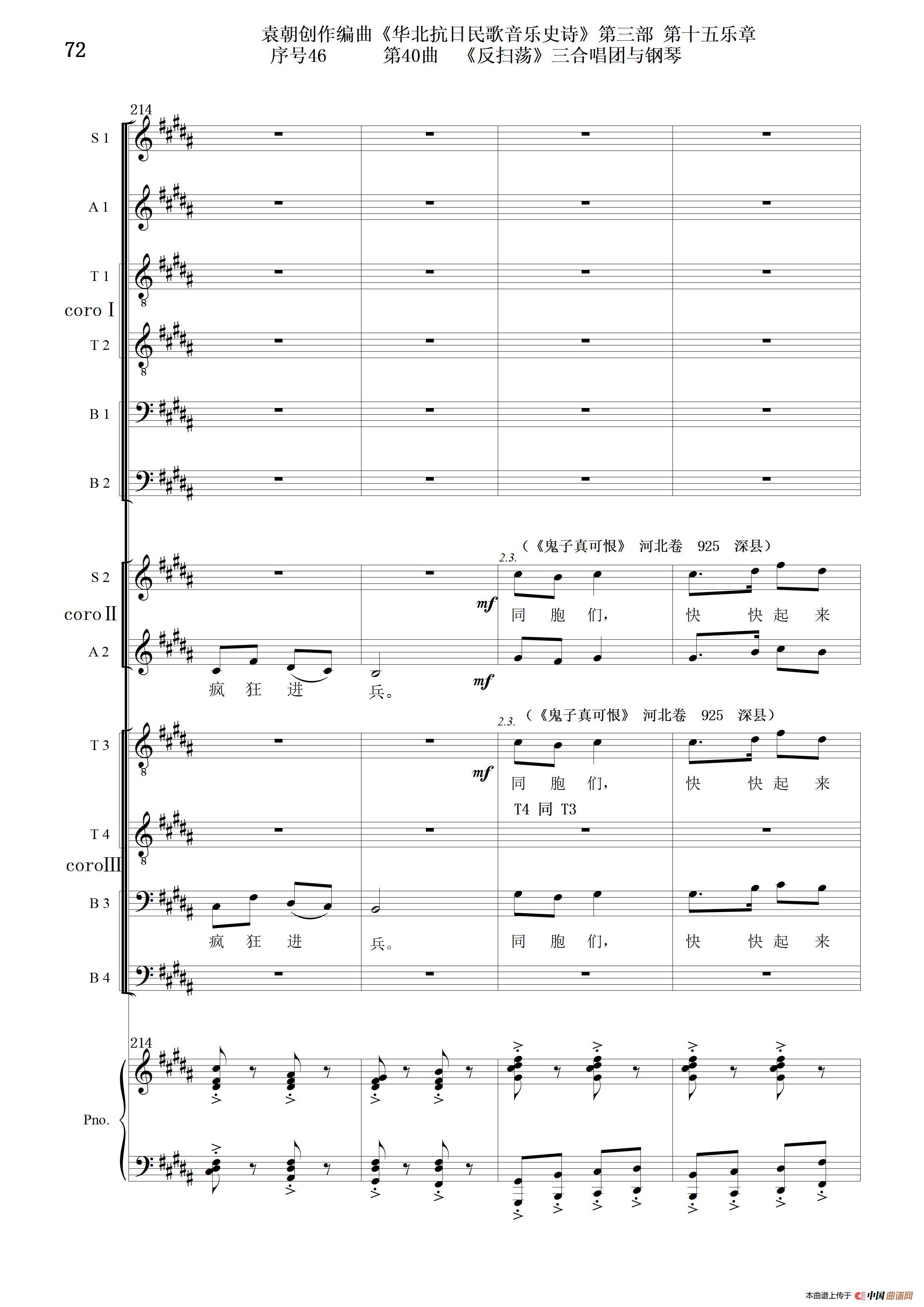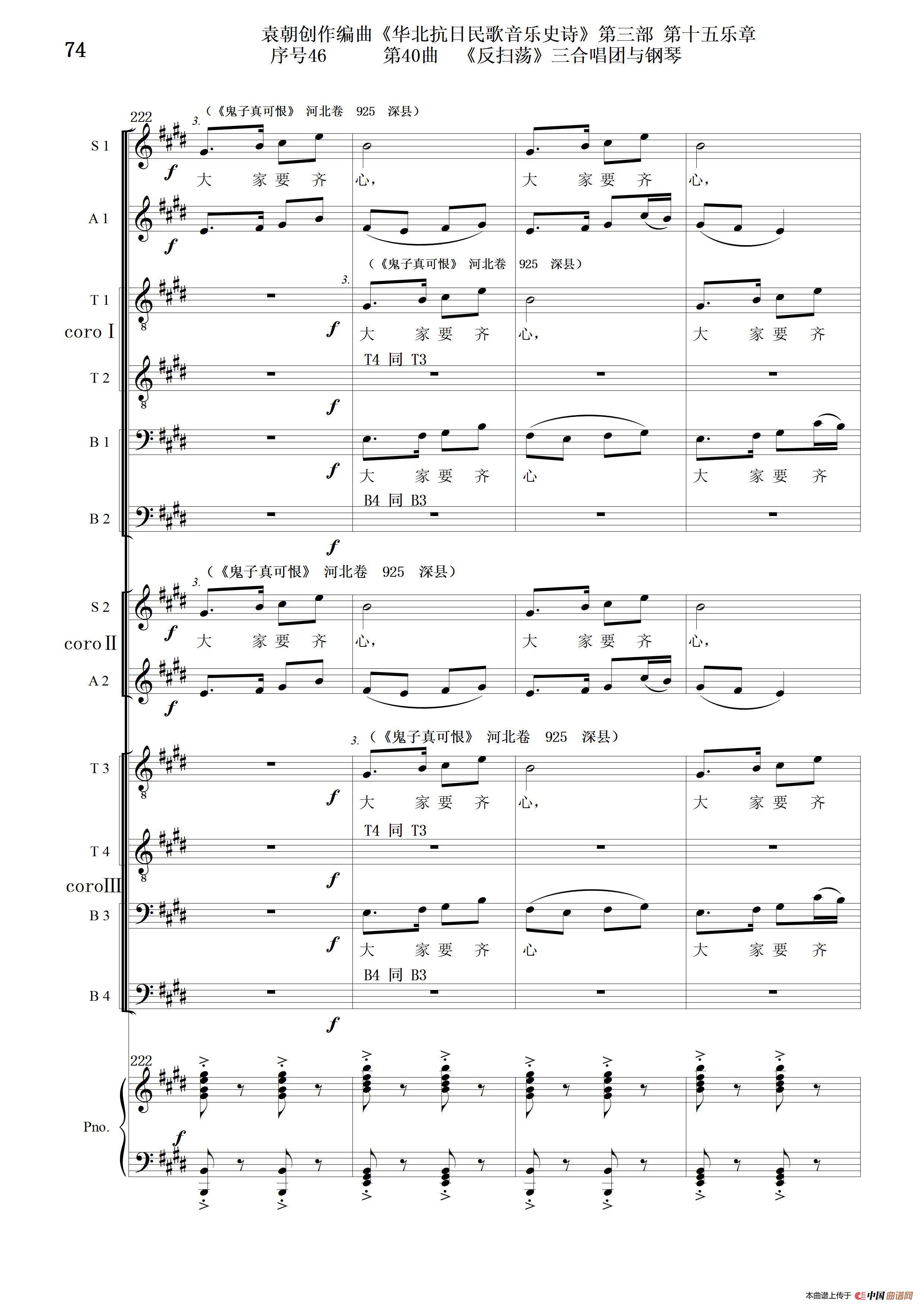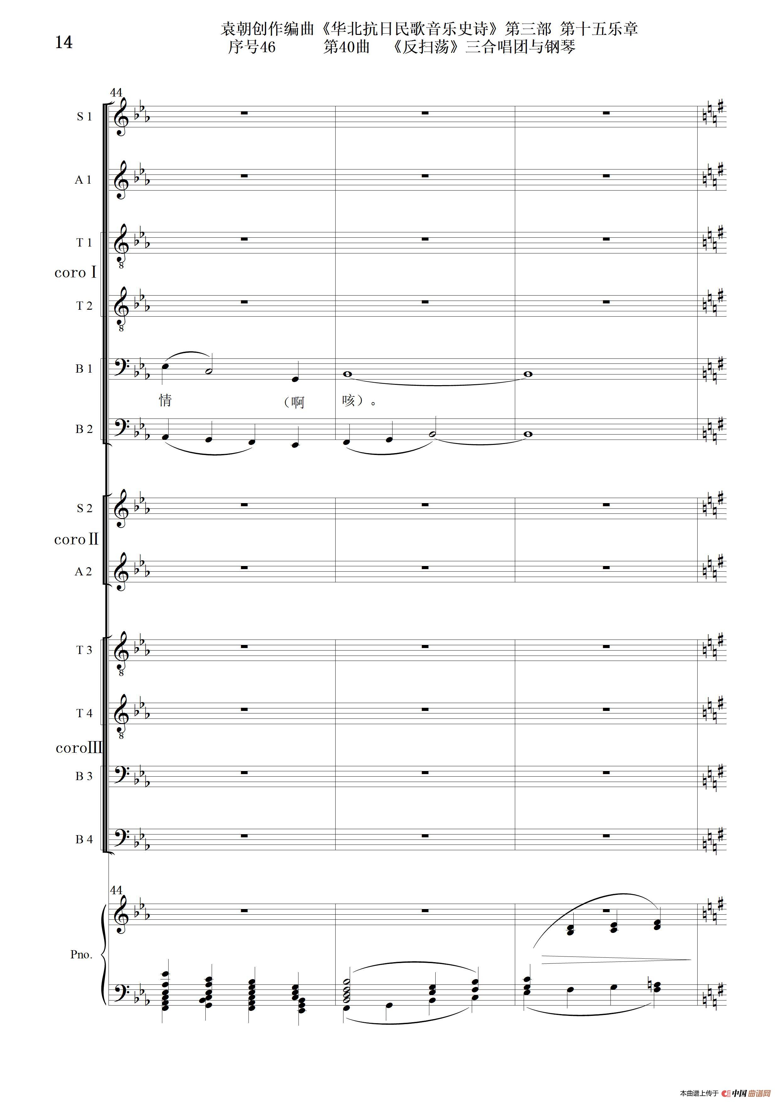 序号46第40曲《反扫荡》三合唱团与钢琴