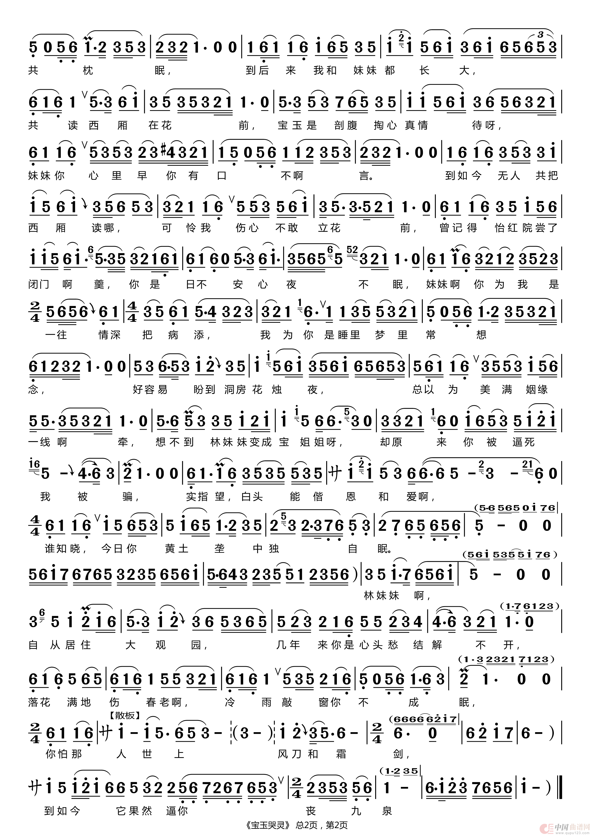 宝玉哭灵 曲谱( 刘和平制谱)