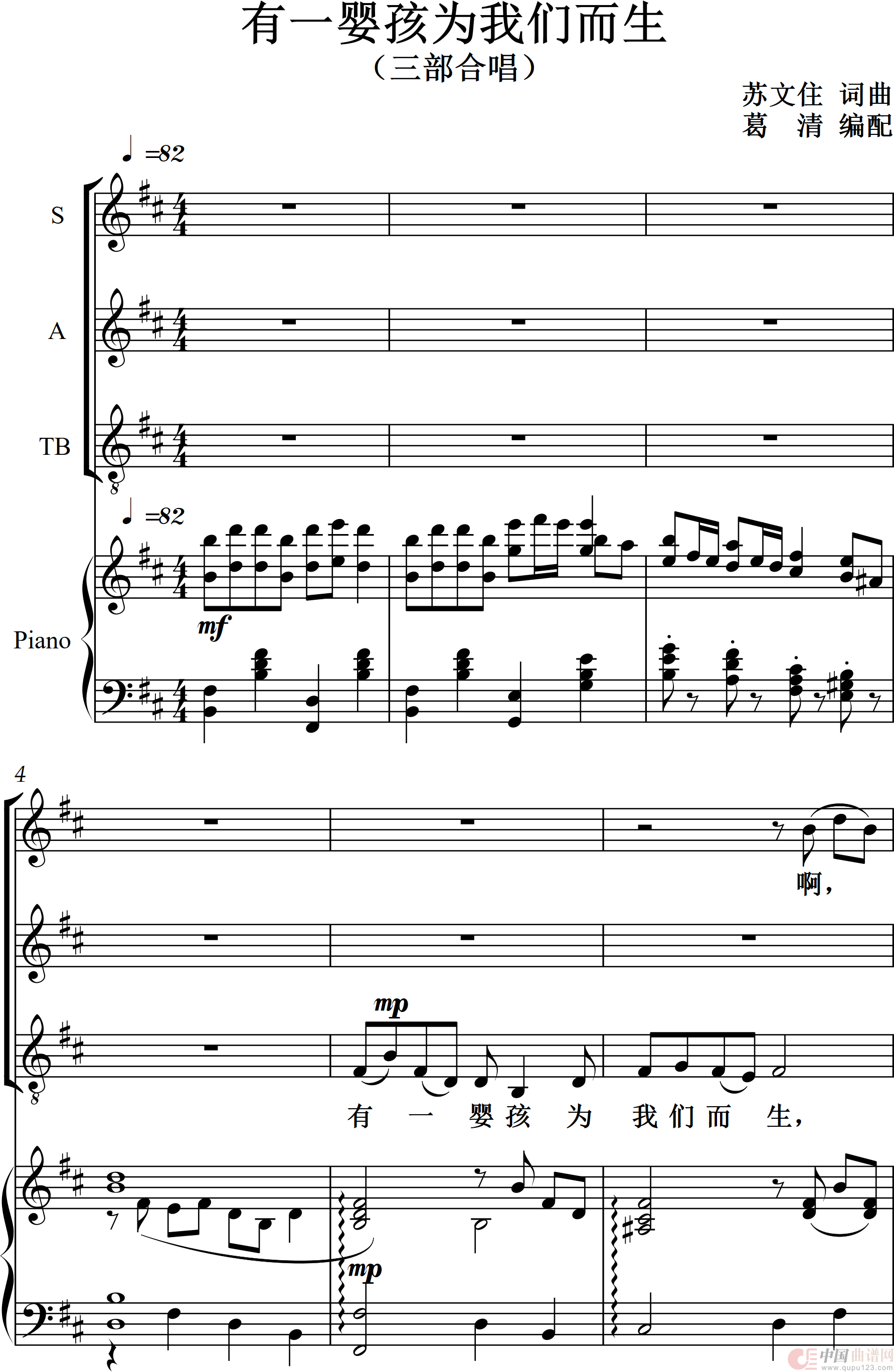 有一个婴孩为我们而生(圣乐圣诞节合唱作品)