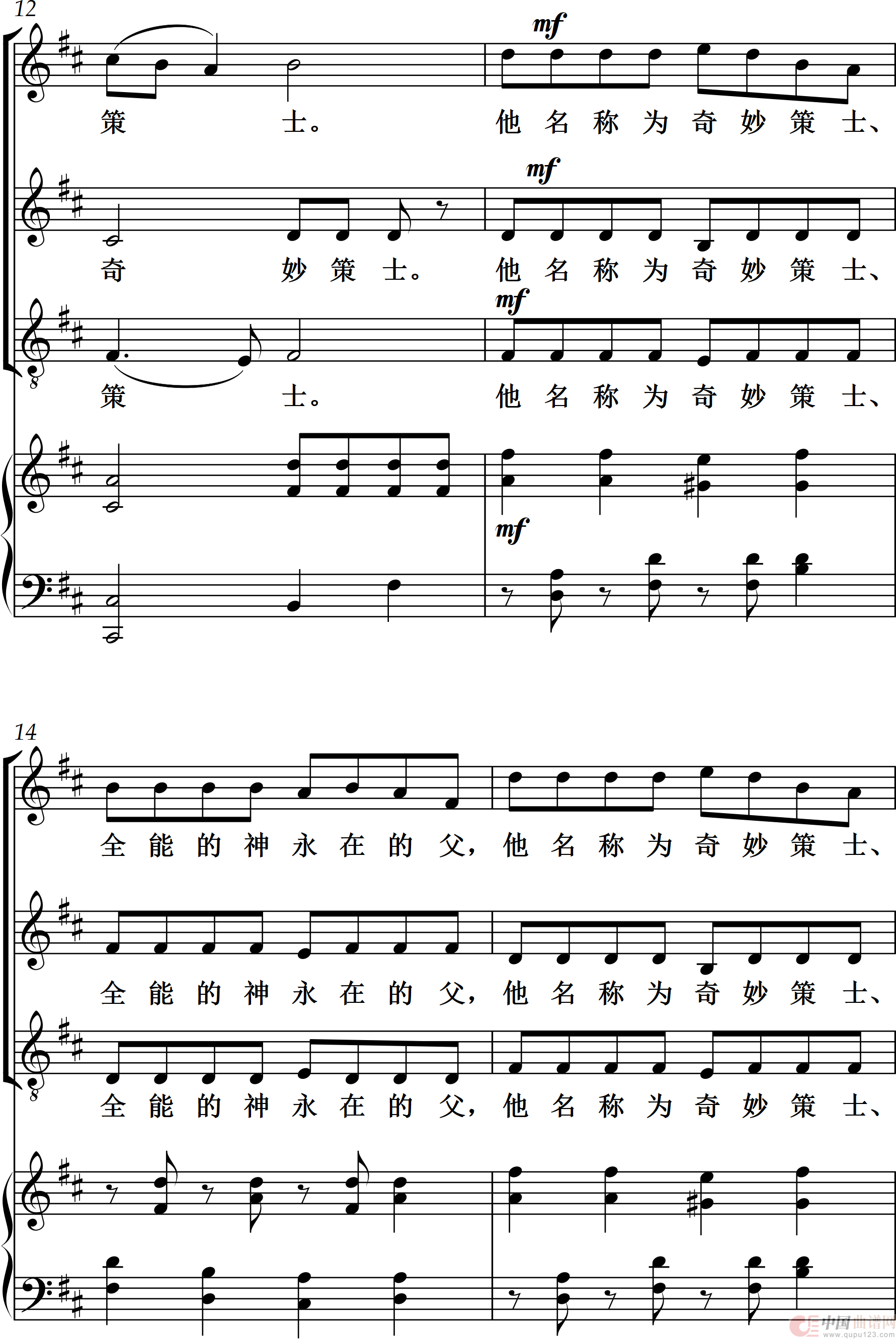 关于《有一个婴孩为我们而生》曲谱的评论