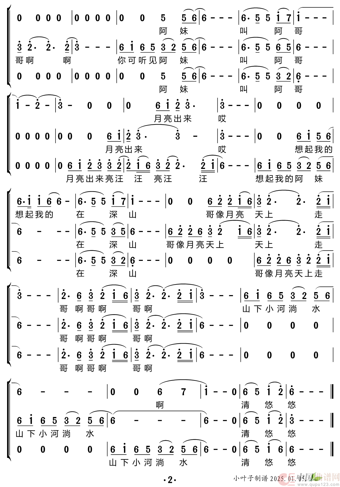 小河淌水(合唱谱)