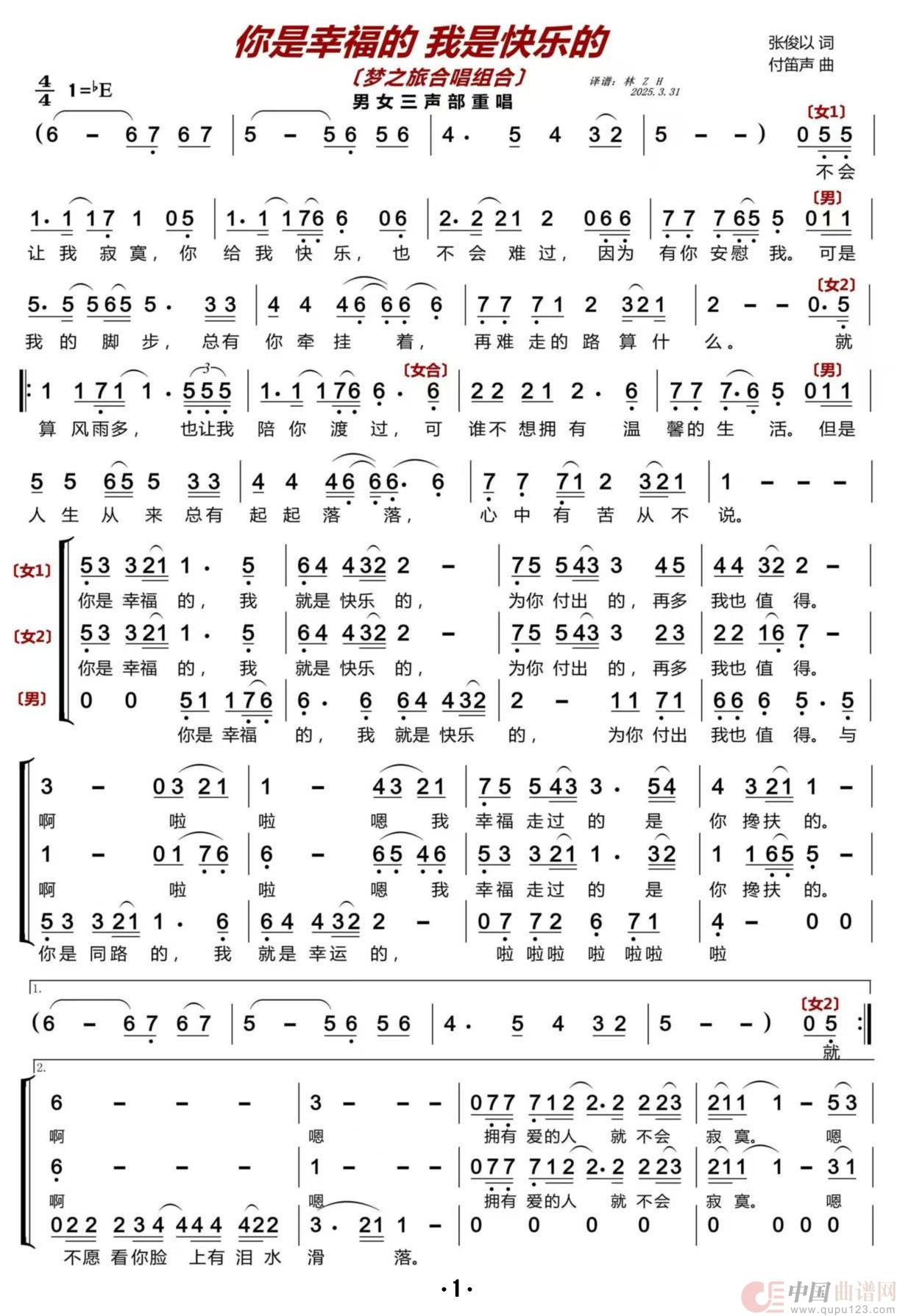 关于《 你是幸福的 我是快乐的》曲谱的评论