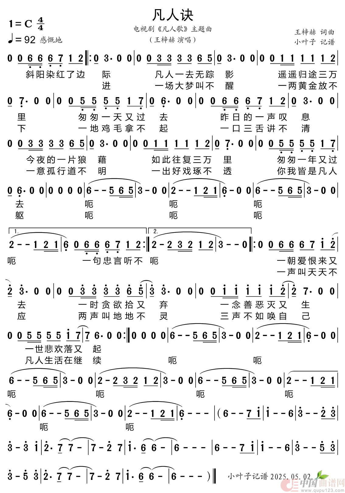 作词:王梓赫 作曲:王梓赫 演唱(奏):王梓赫 来源:简谱网 上传:小花儿357