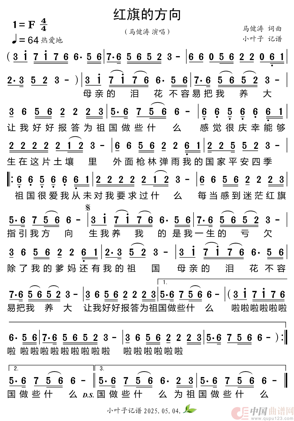关于《红旗的方向》曲谱的评论