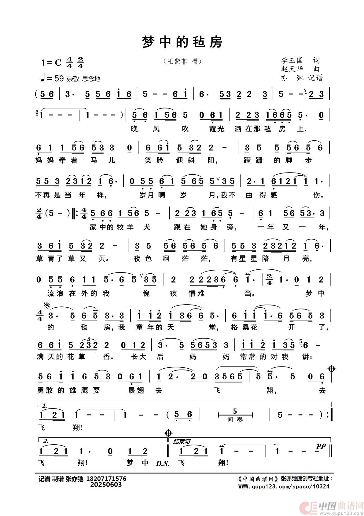 梦中的毡房(亦弛记谱)