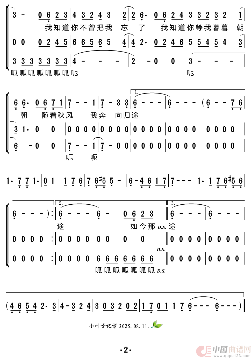 我找不到清楚的音频,没法记谱。你提供音频我听听才知道能不能记谱。