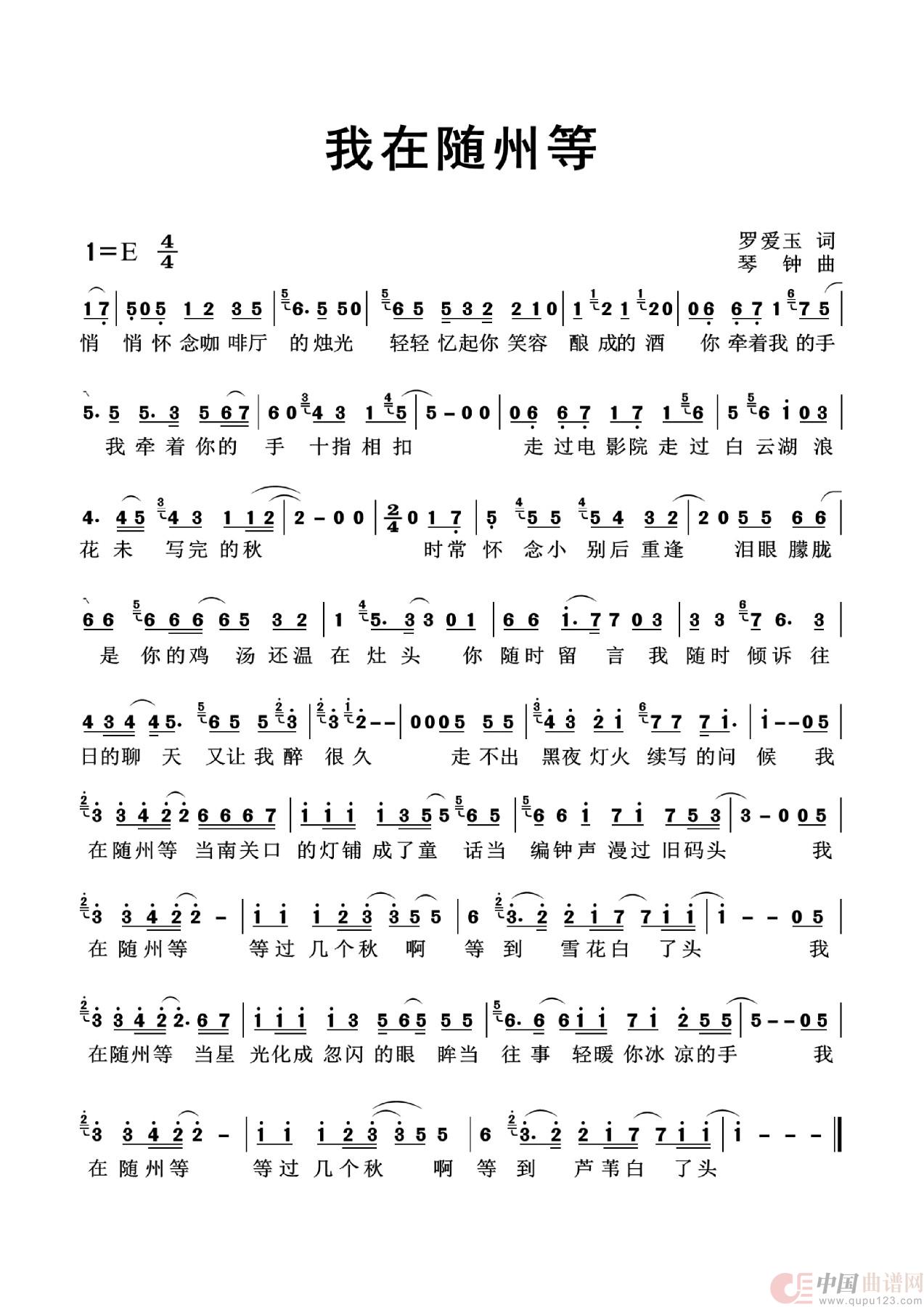 关于《我在随州等》曲谱的评论