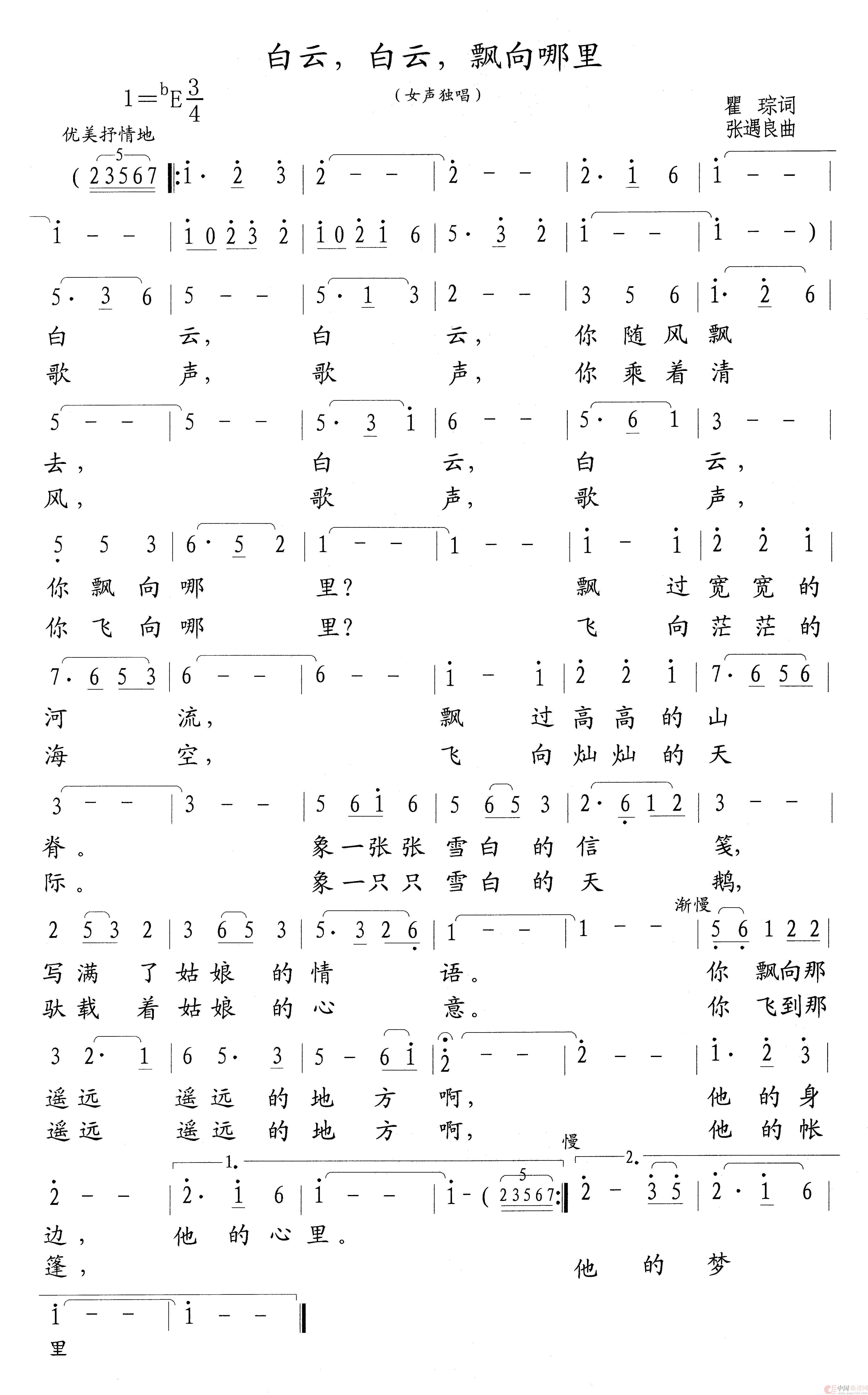 关于《白云,白云,你飘向哪里》曲谱的评论