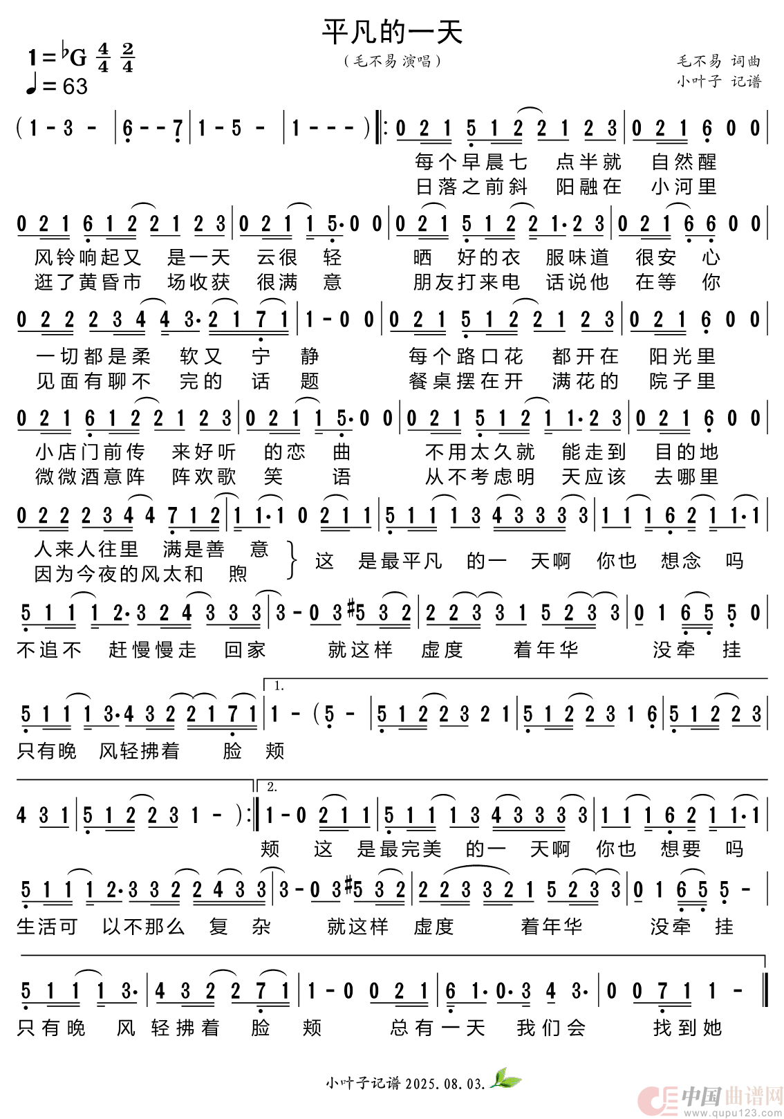 关于《平凡的一天》曲谱的评论