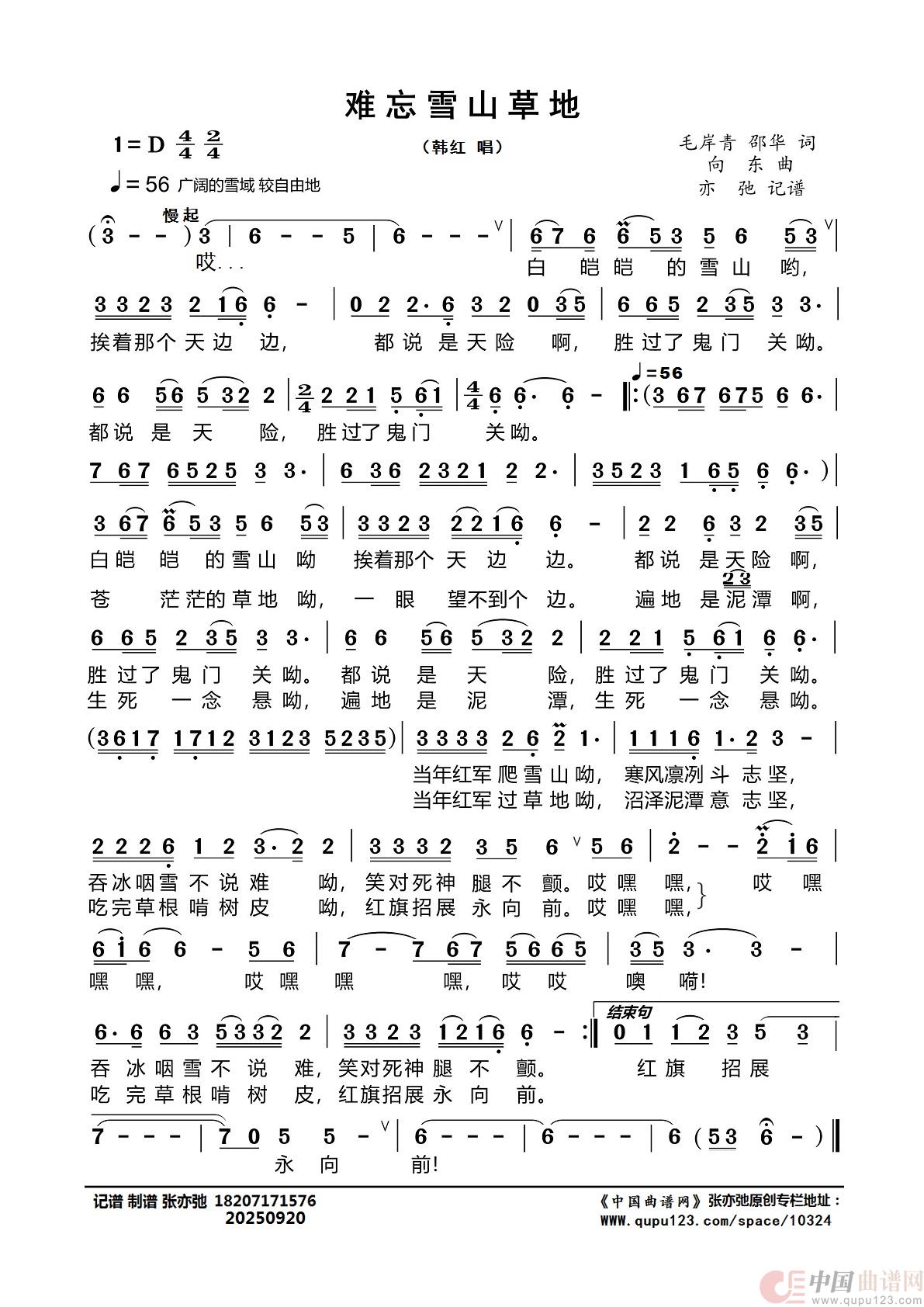 作词:毛岸青 邵华   作曲:向东   演唱(奏):韩红   来源:张亦弛 记谱 制谱   上传:咪迷米张亦弛   日期:2025-09-20   浏览次数: