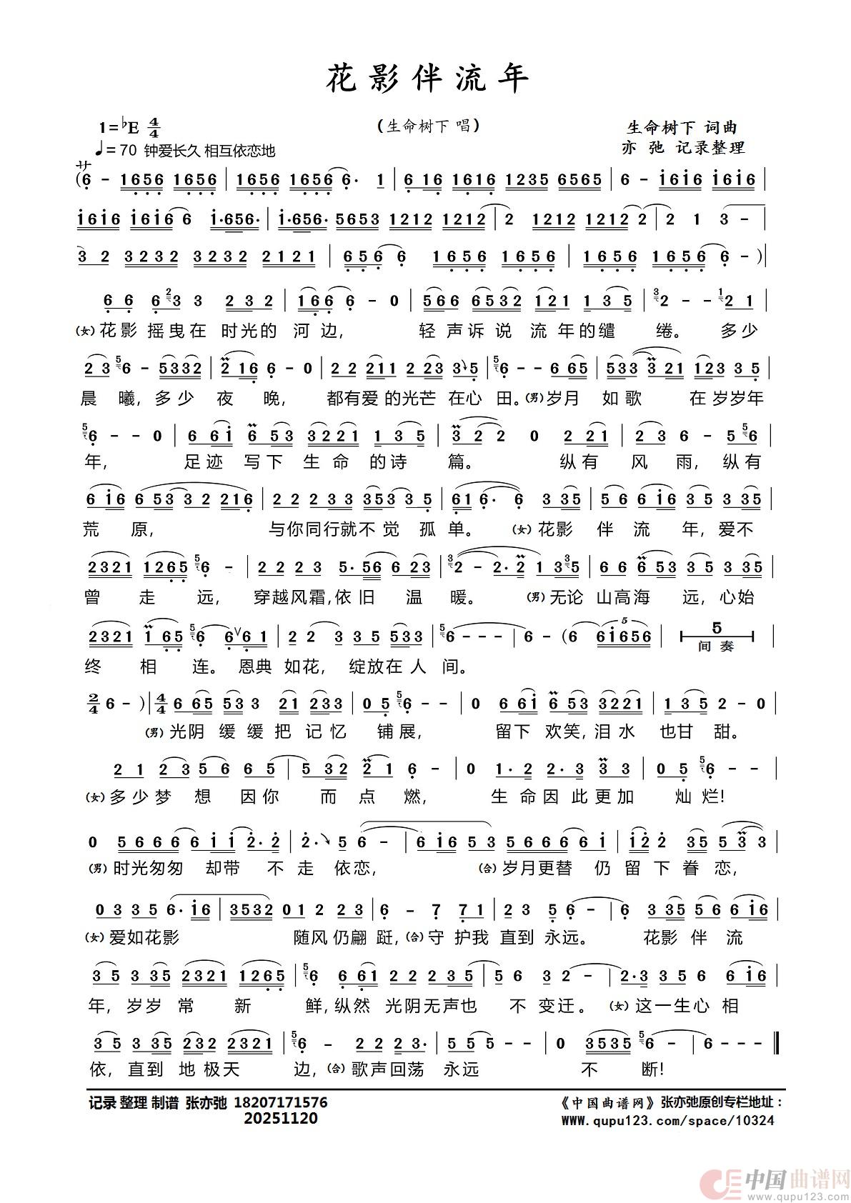 作词:生命树下 作曲:生命树下 演唱(奏):生命树下 来源:张亦弛 记录整理 制谱 上传:咪迷米张亦弛